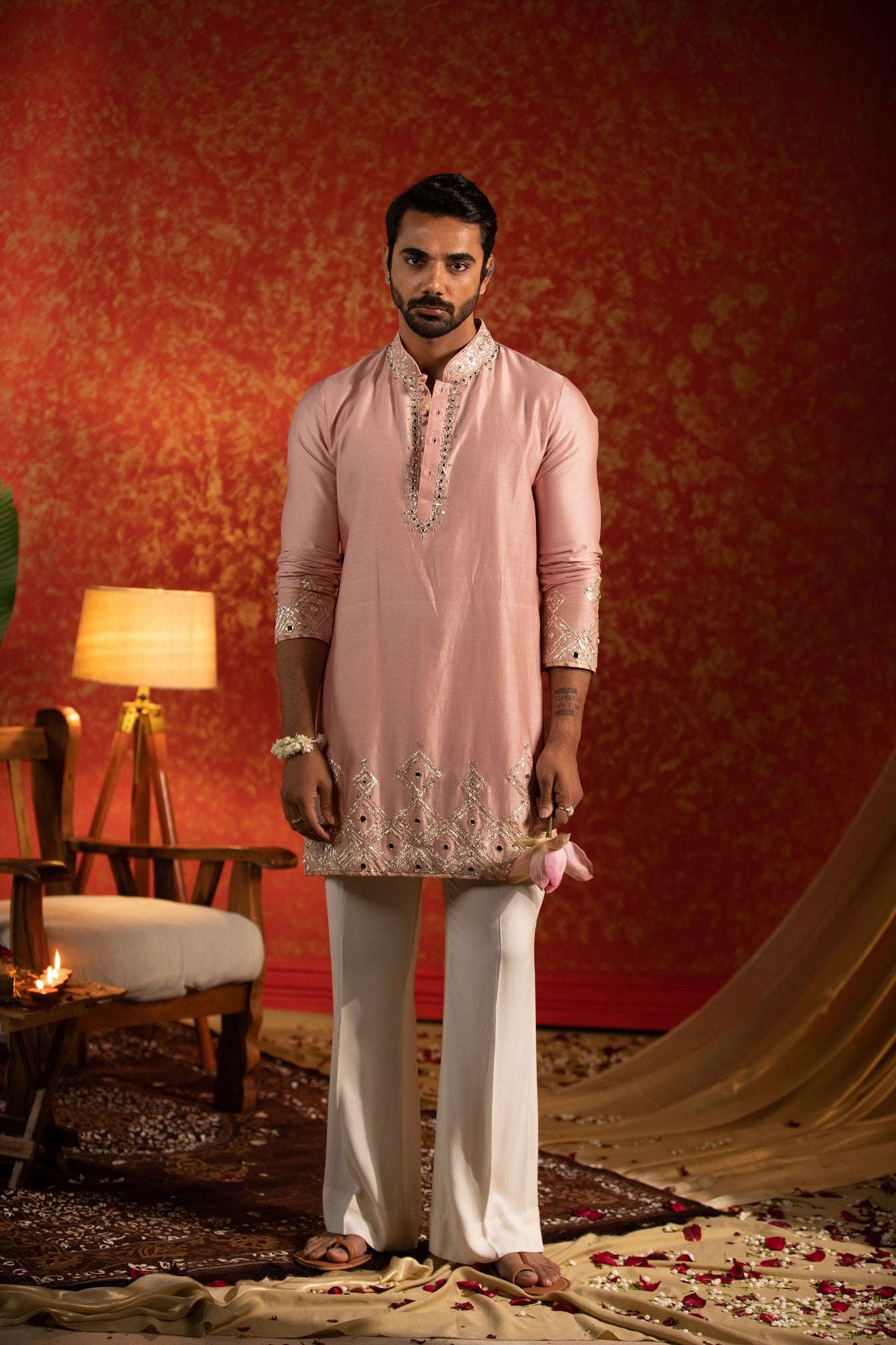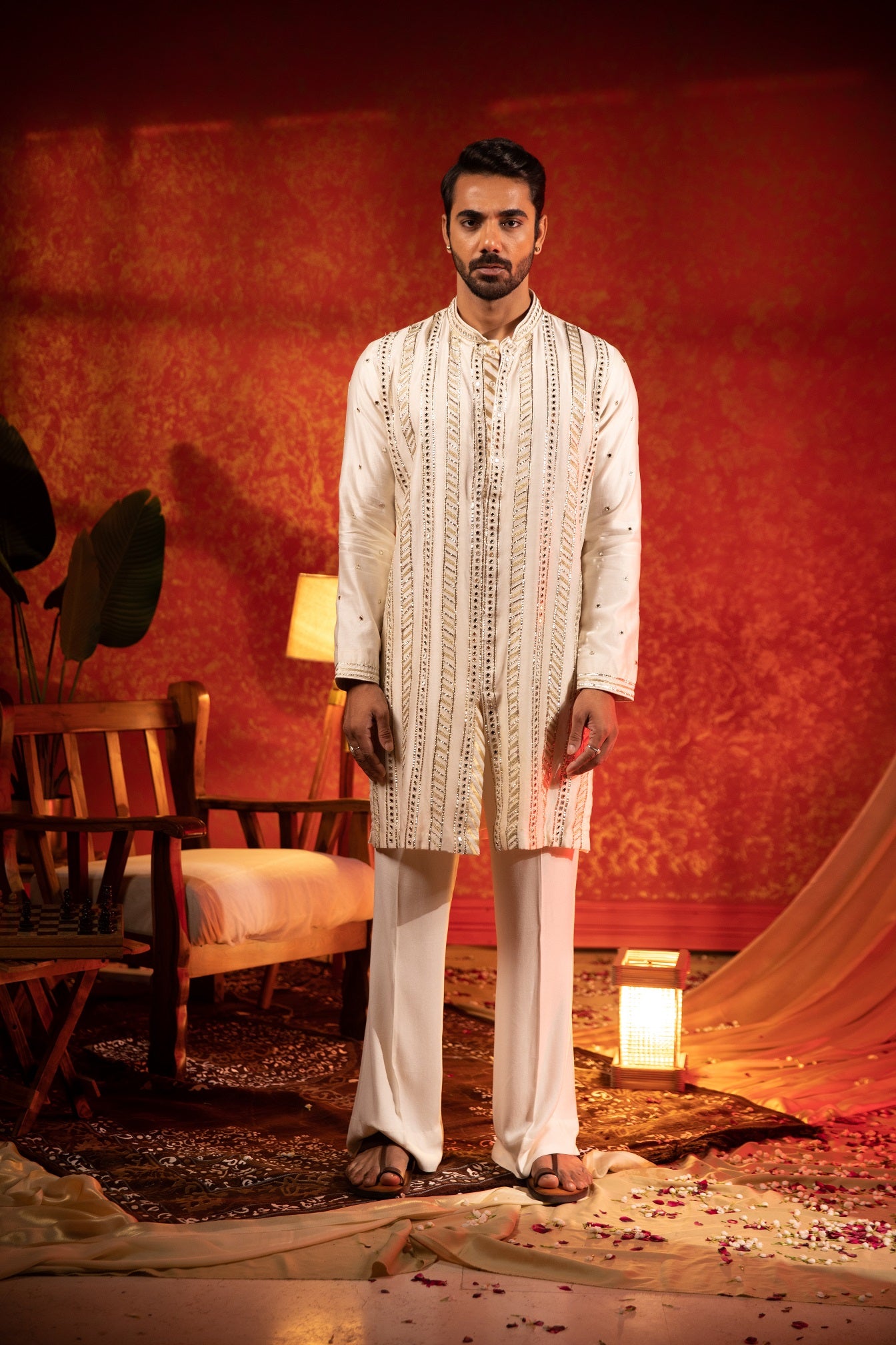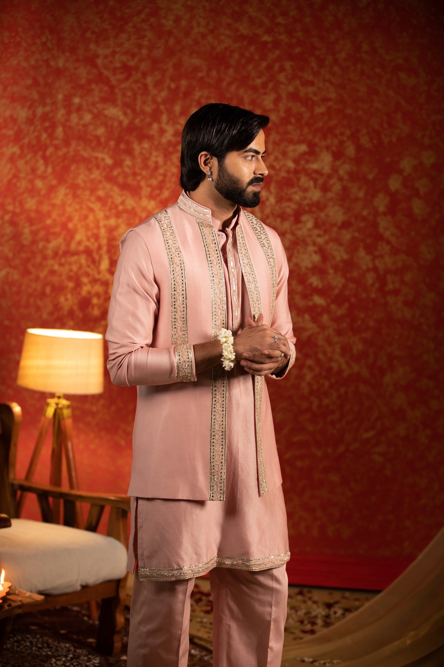 Mirror lapel kurta bandi set