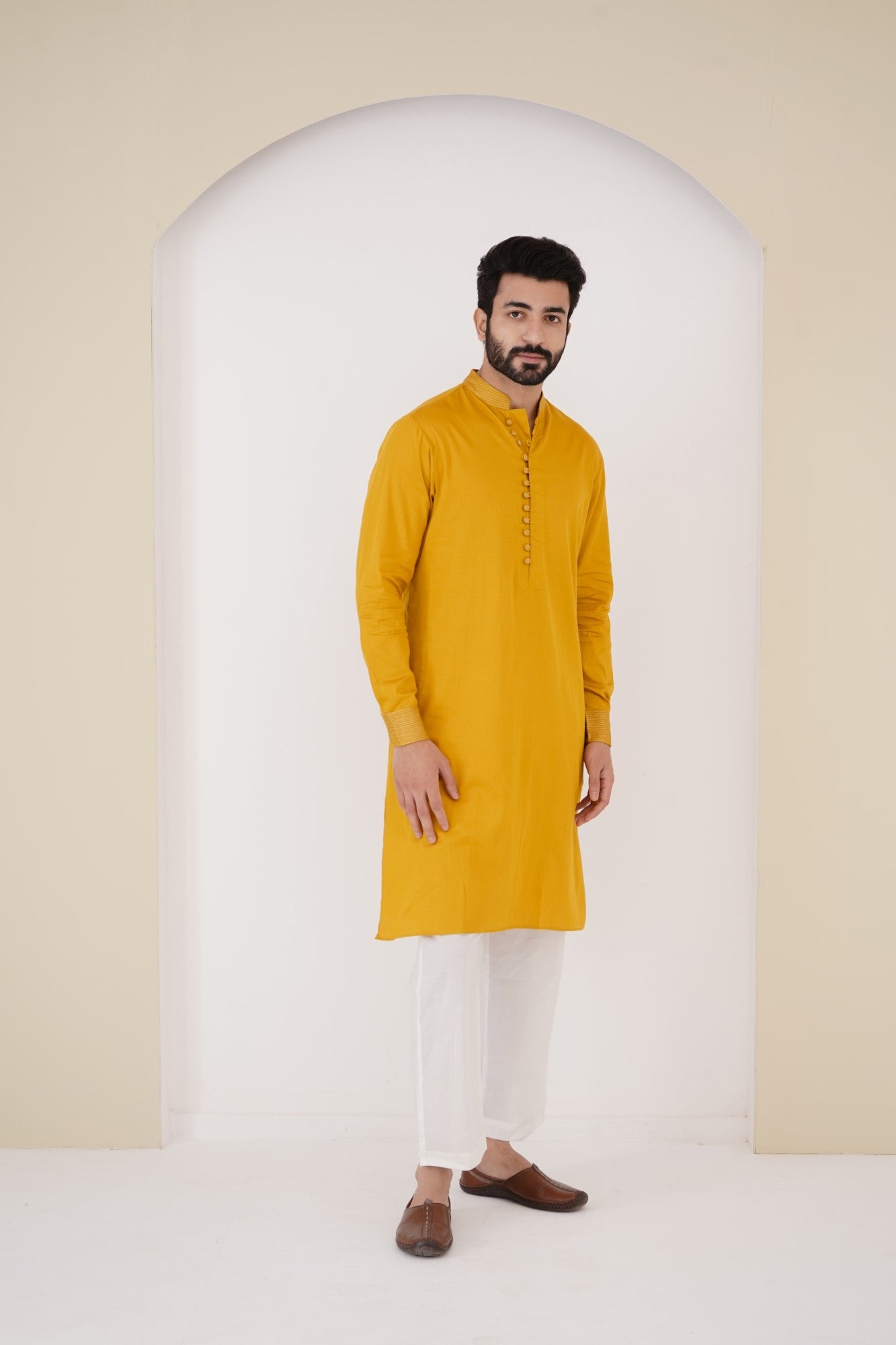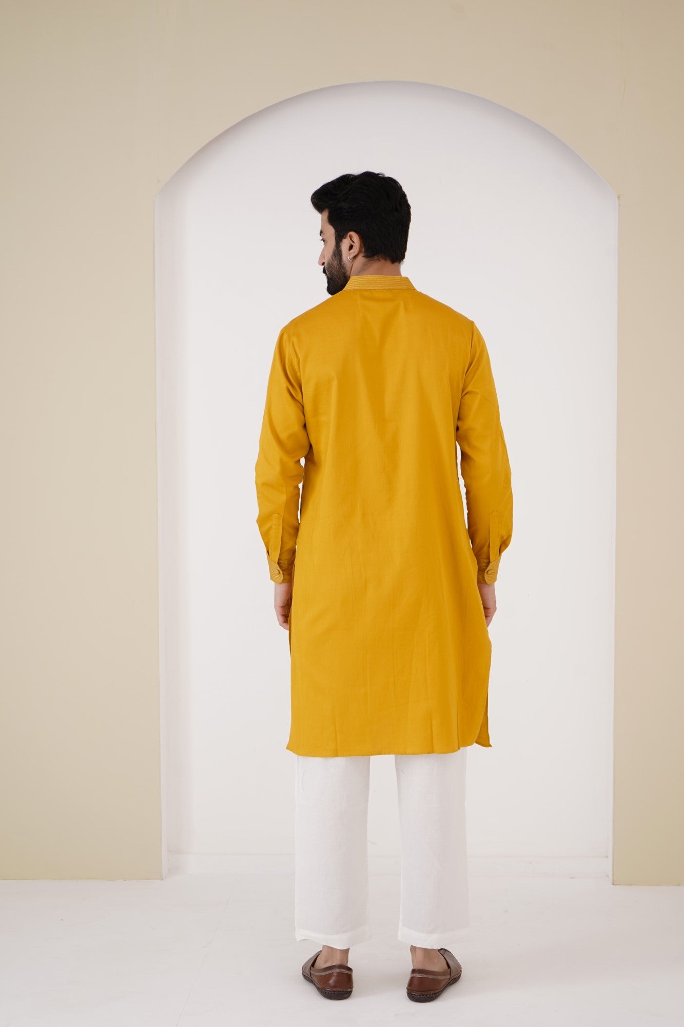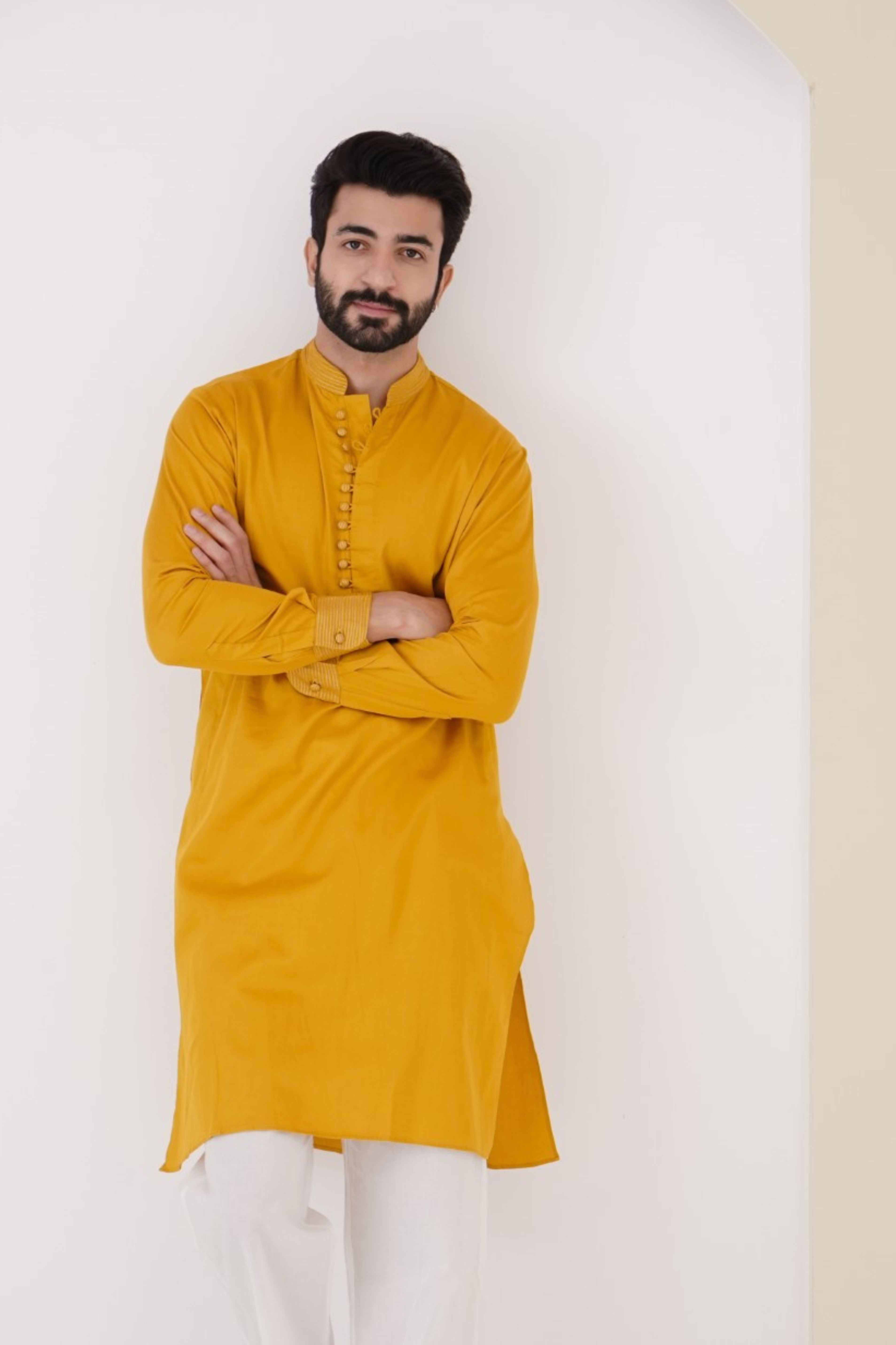 Mustard cotton satin kurta