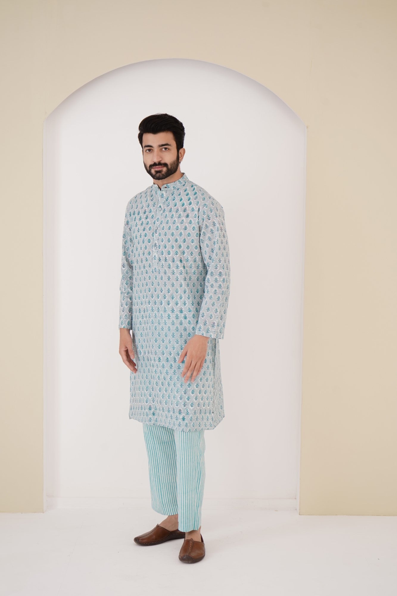 Aqua blue pure cotton kurta