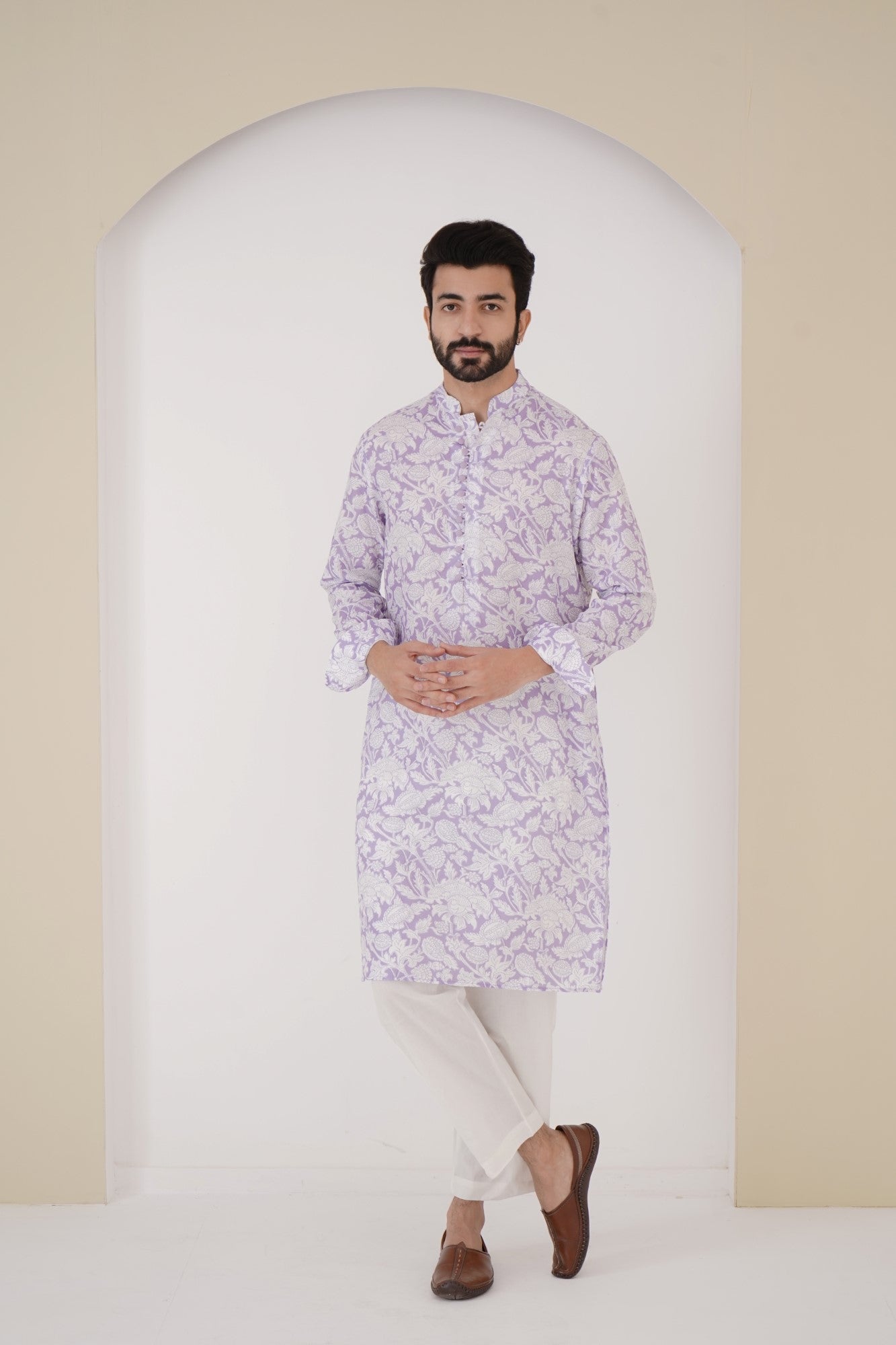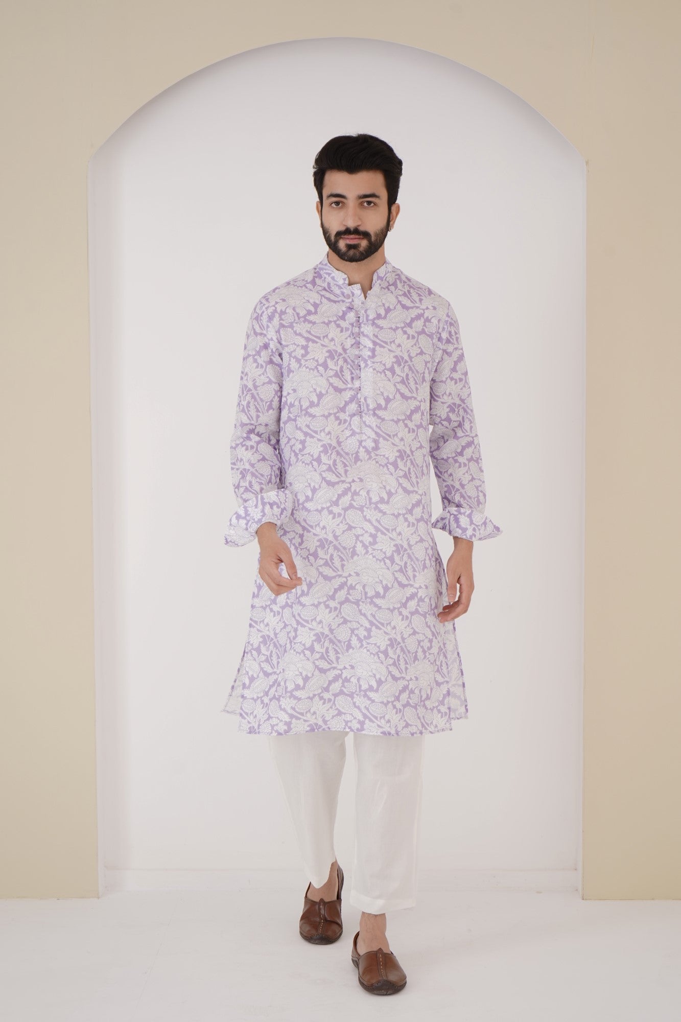 Lilac cotton satin kurta