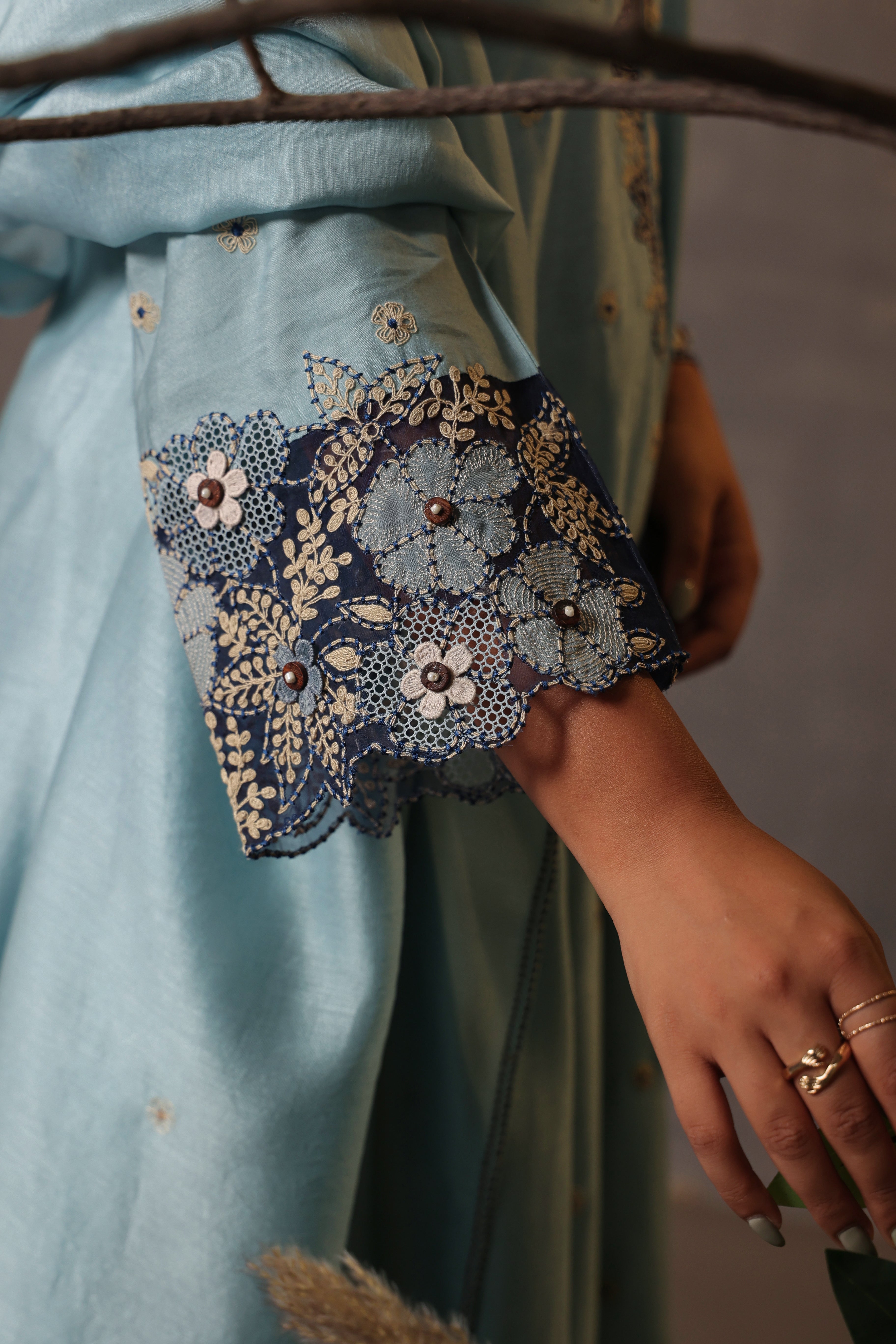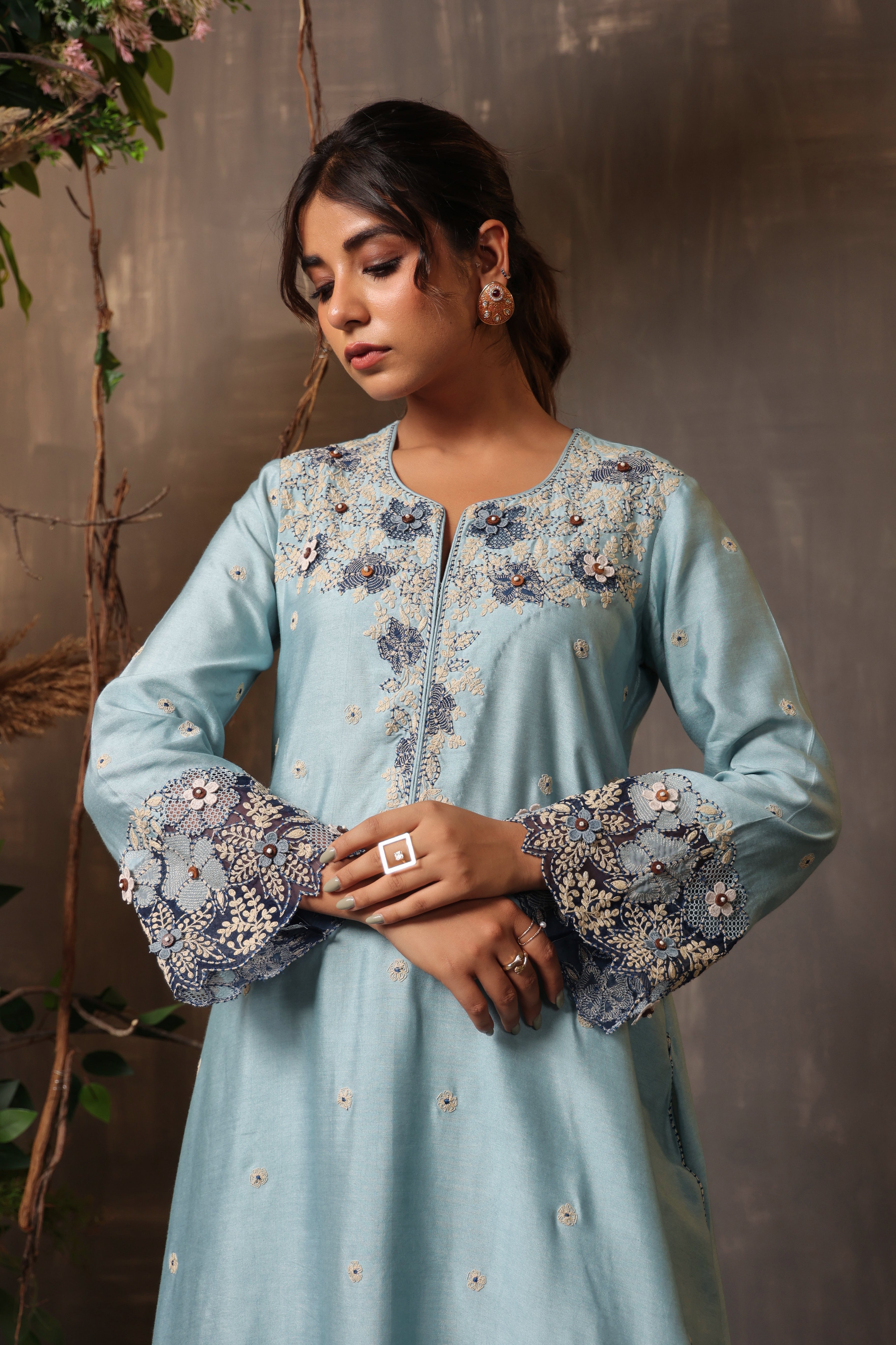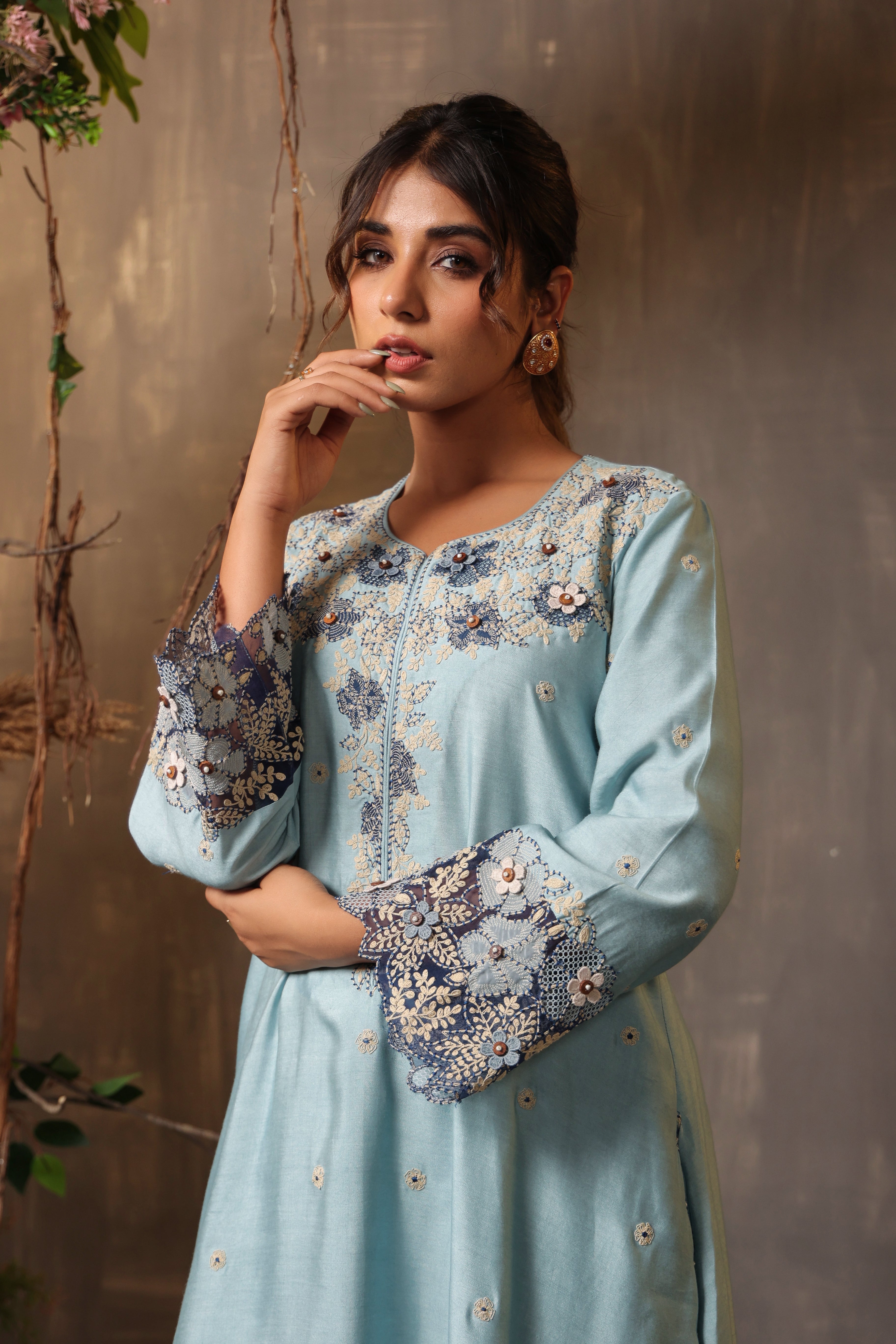 Blue gulshan applique kurta set