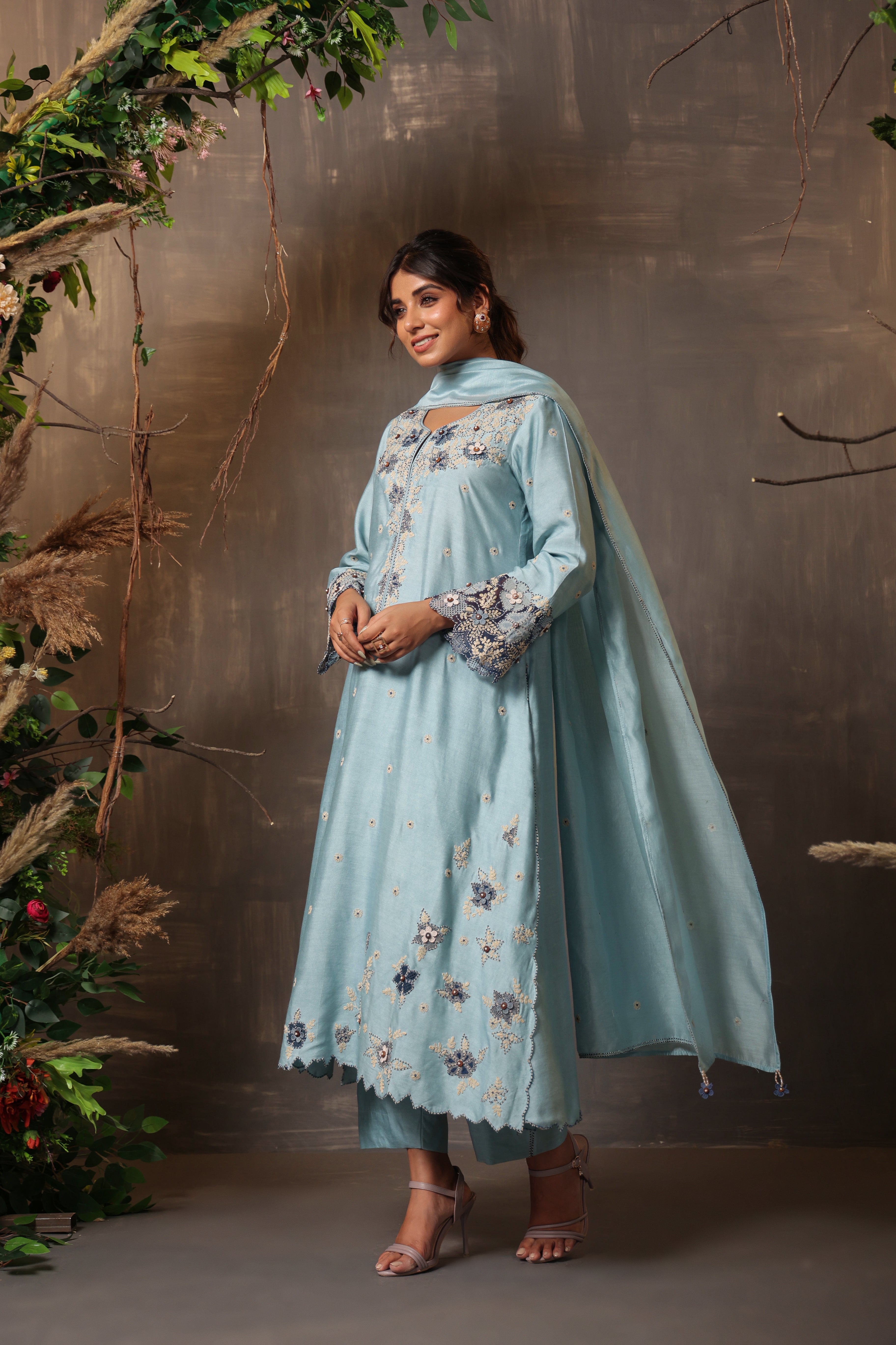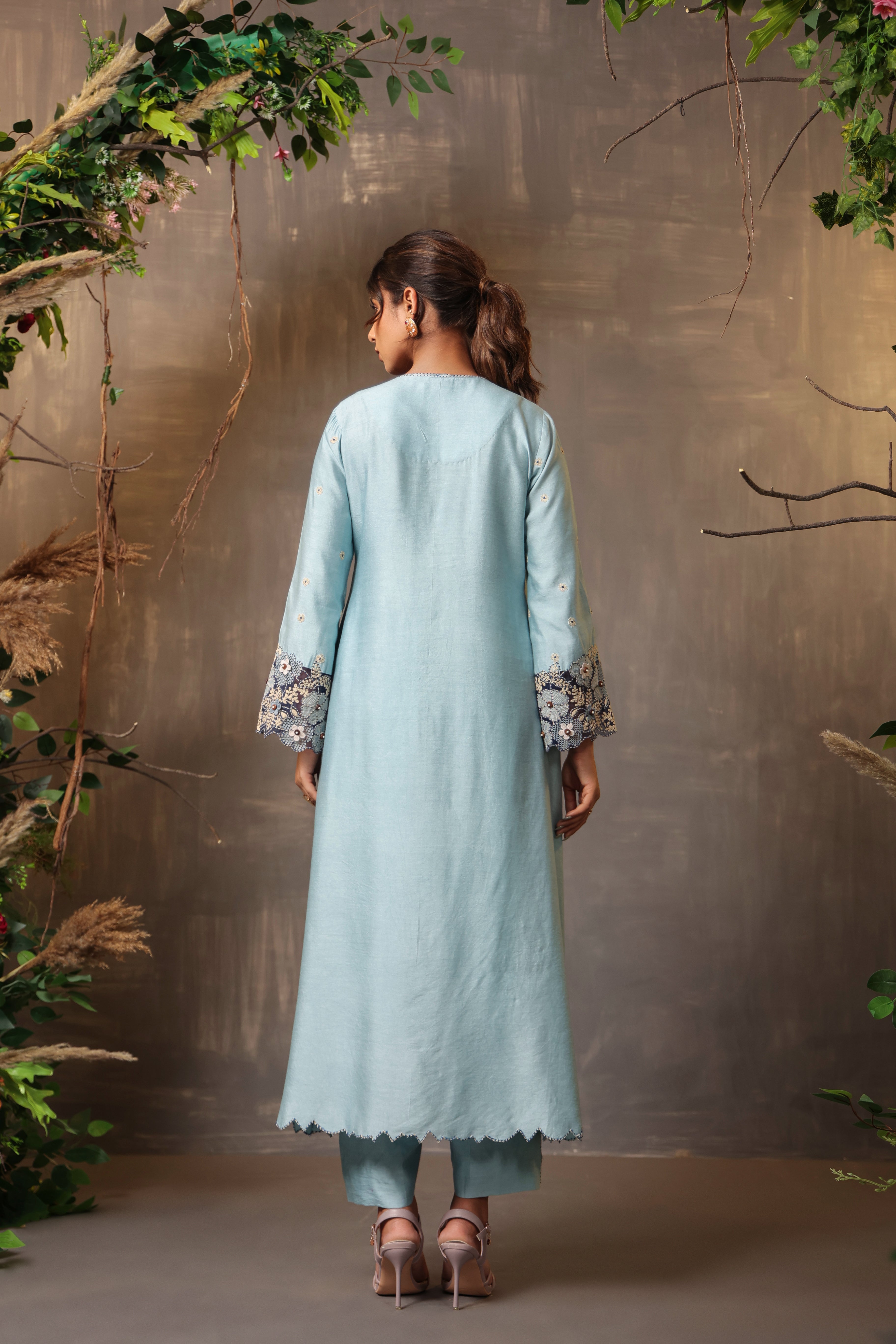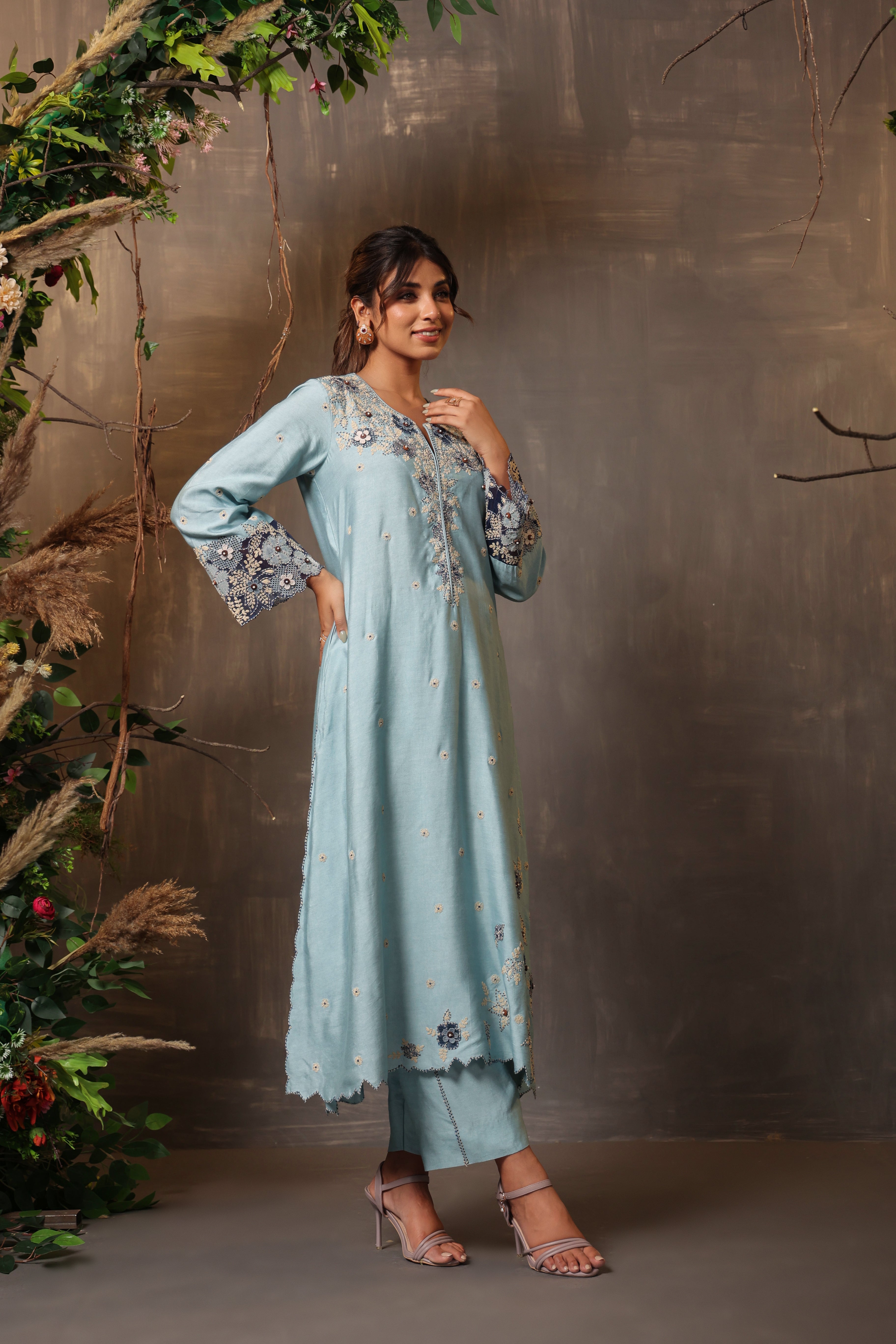 Blue gulshan applique kurta set