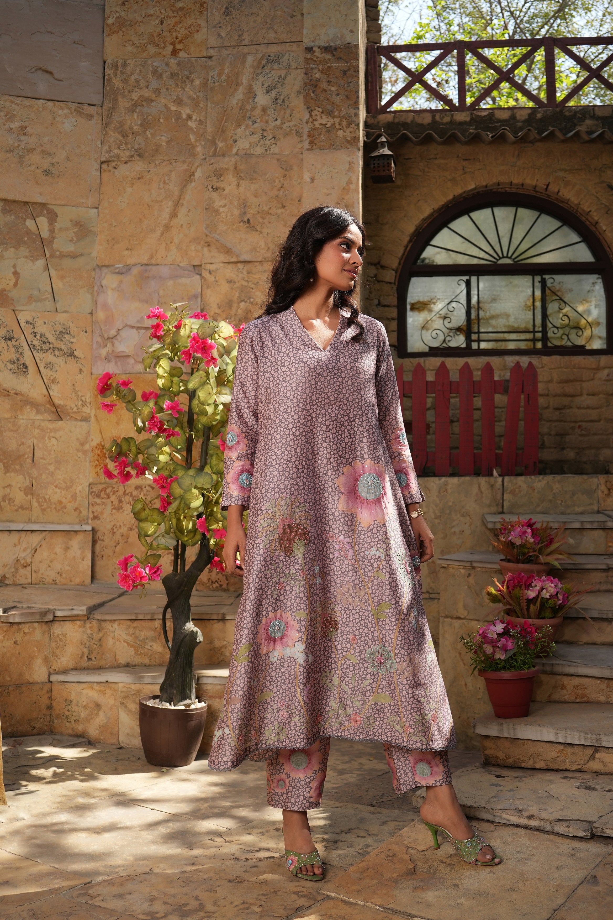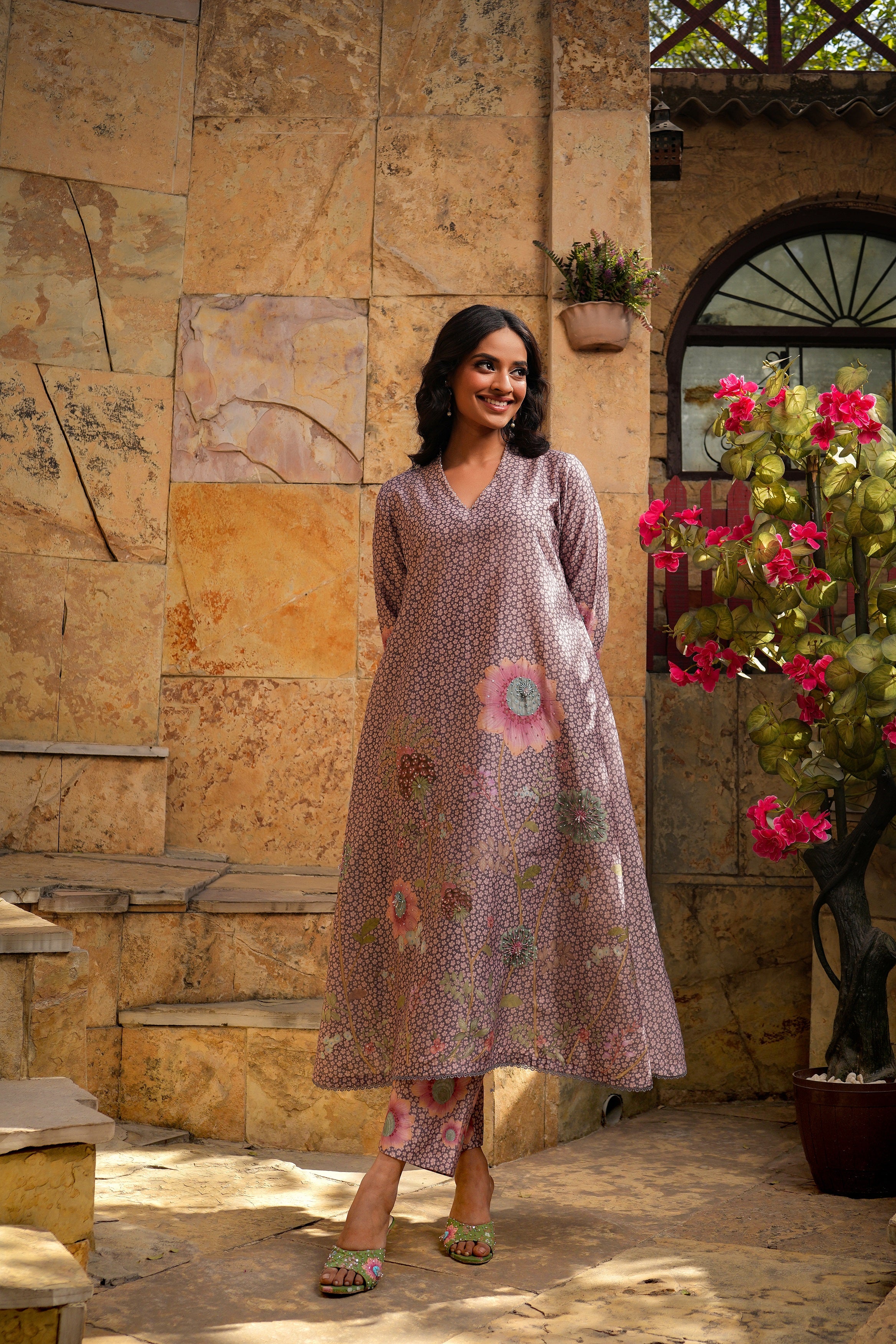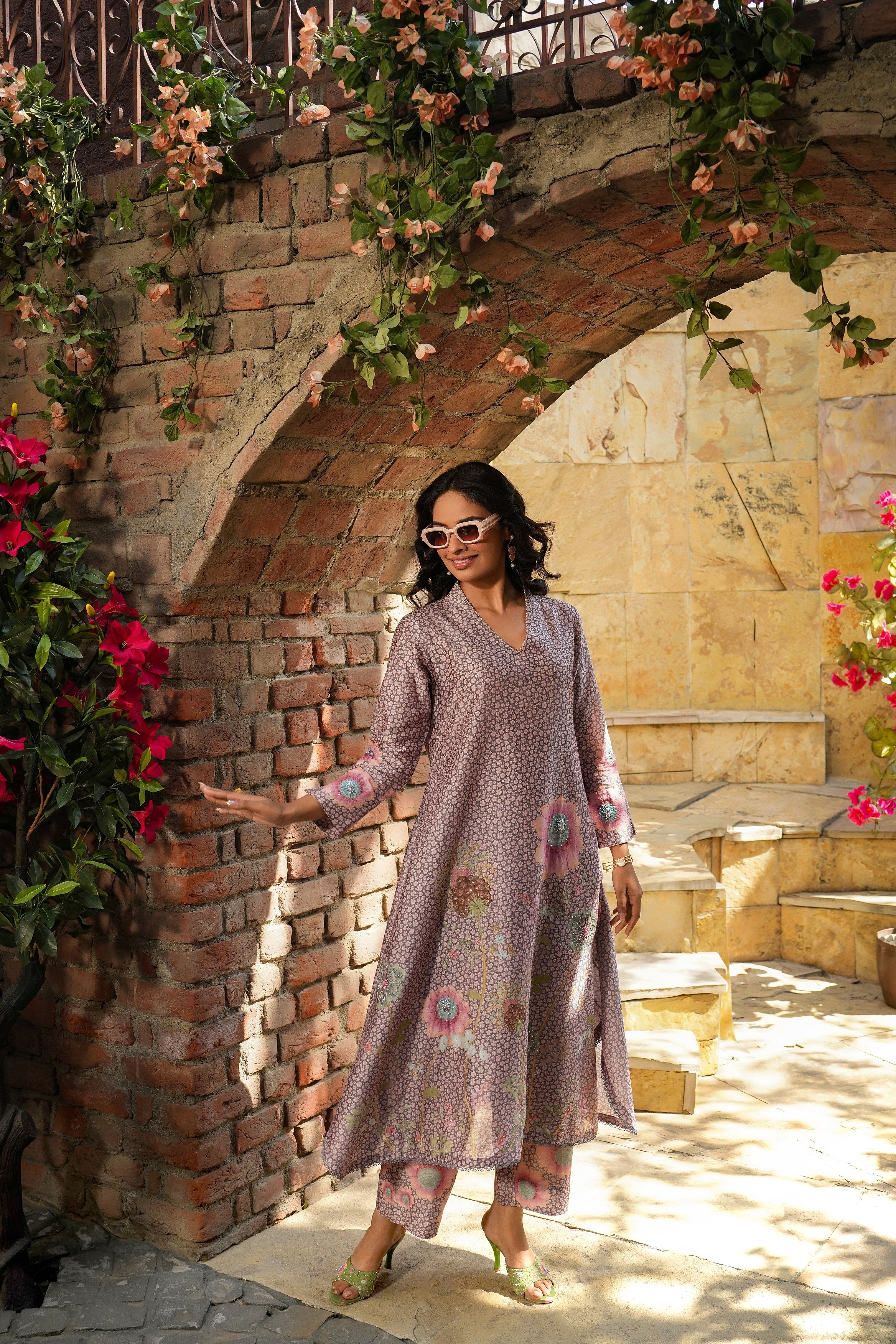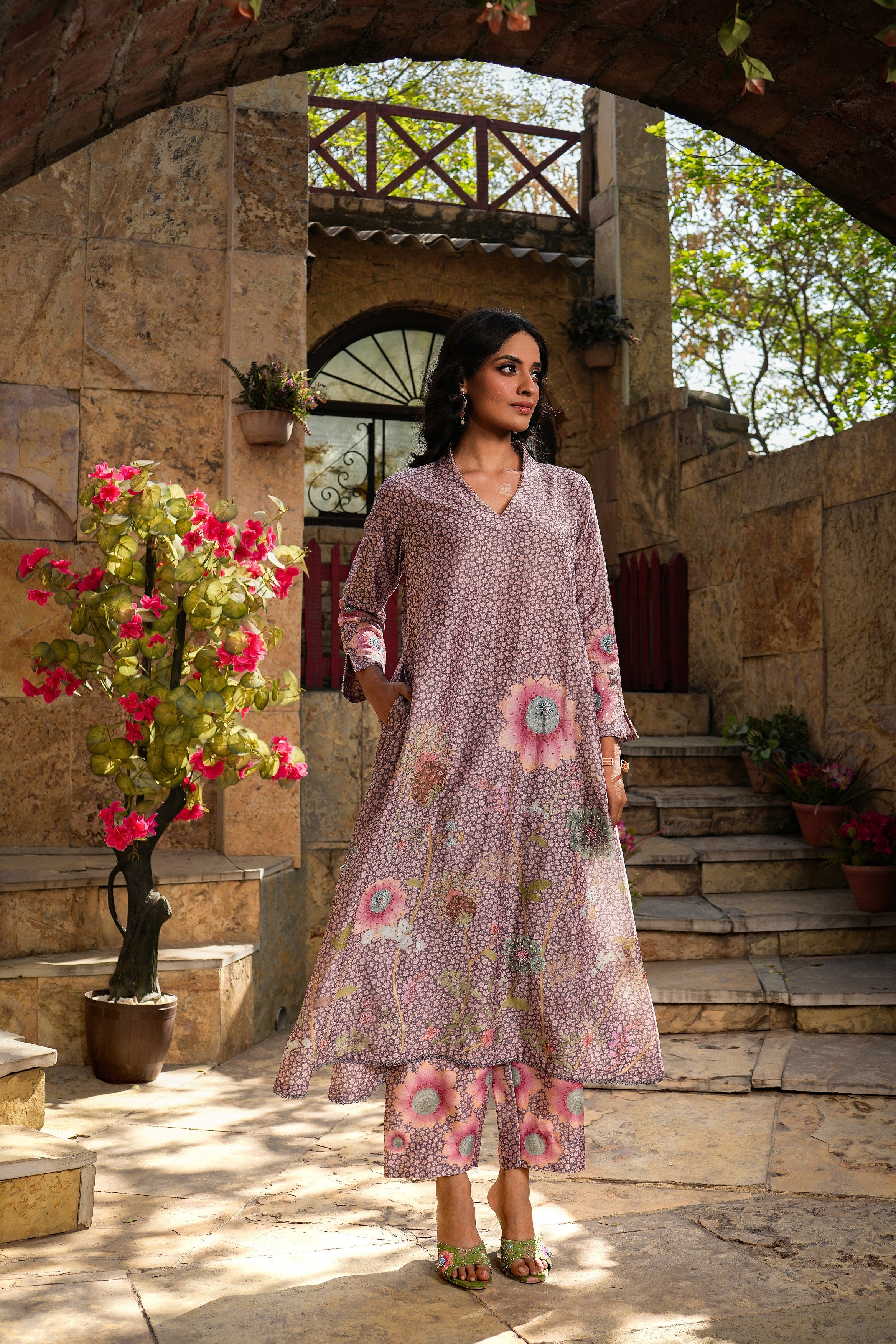 | This 2pc kurta set is enhanced with delicated embroidery all over kurta and it also has lacey hemline . |