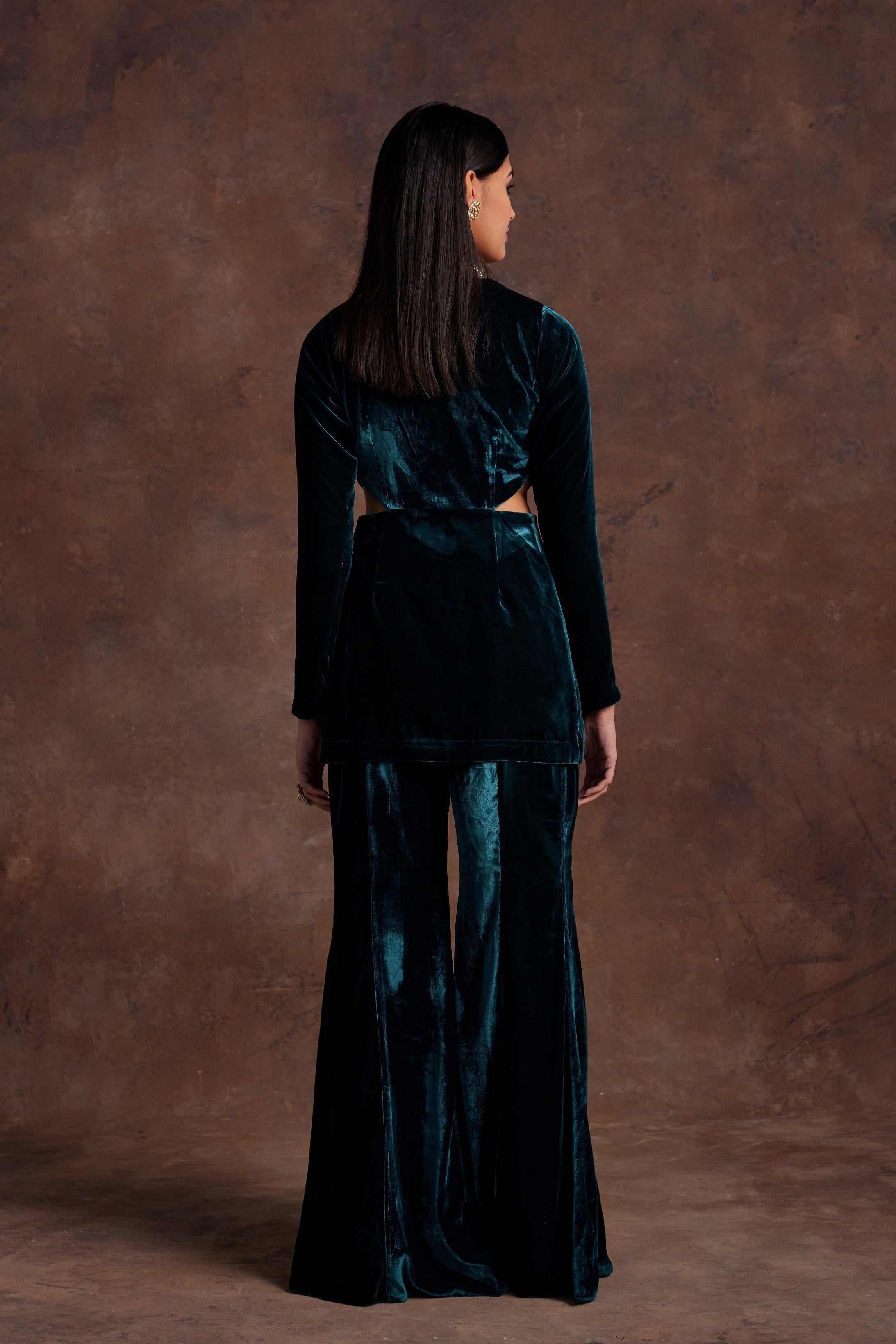 Green velvet pantsuit with cut-out detailing set