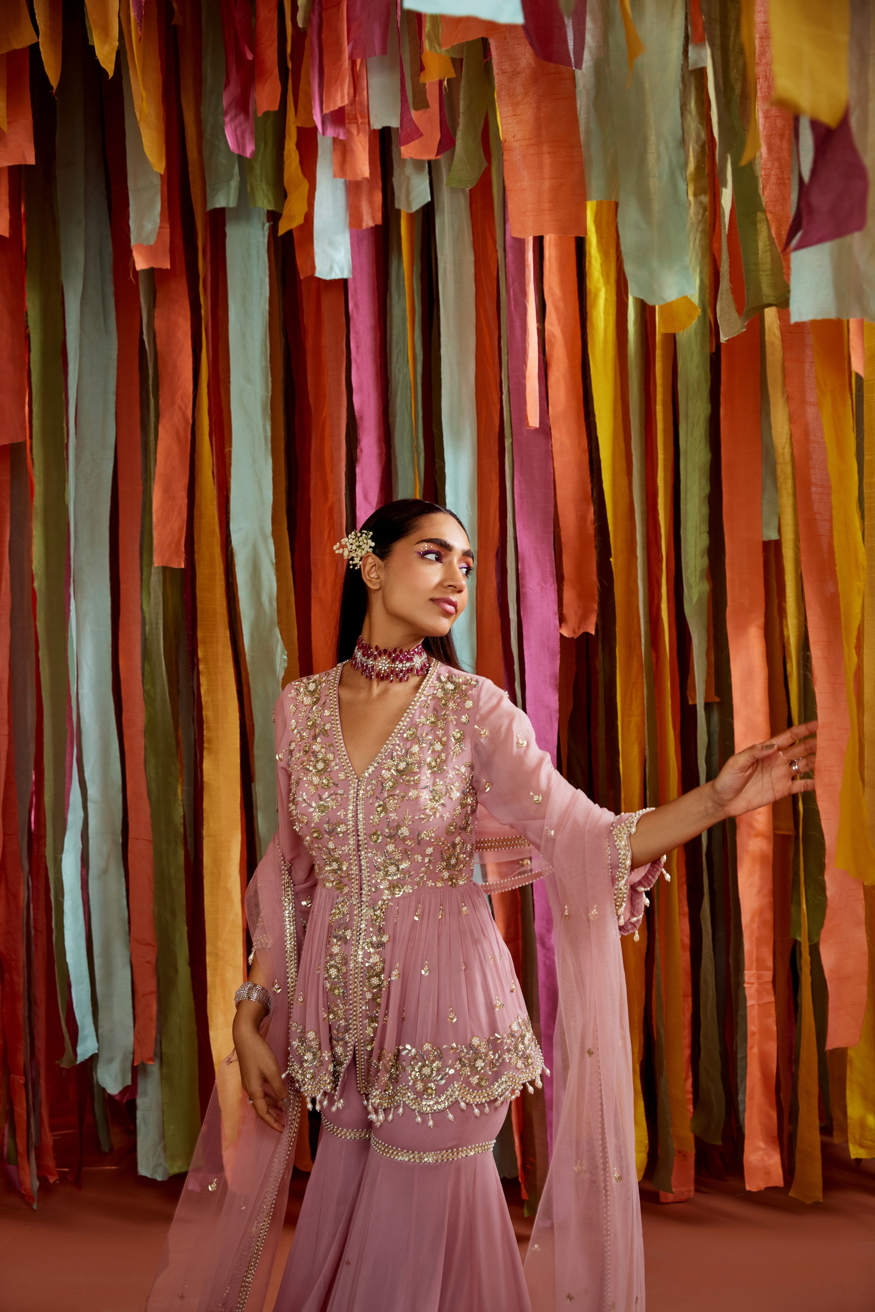 Mauve peplum and sharara set