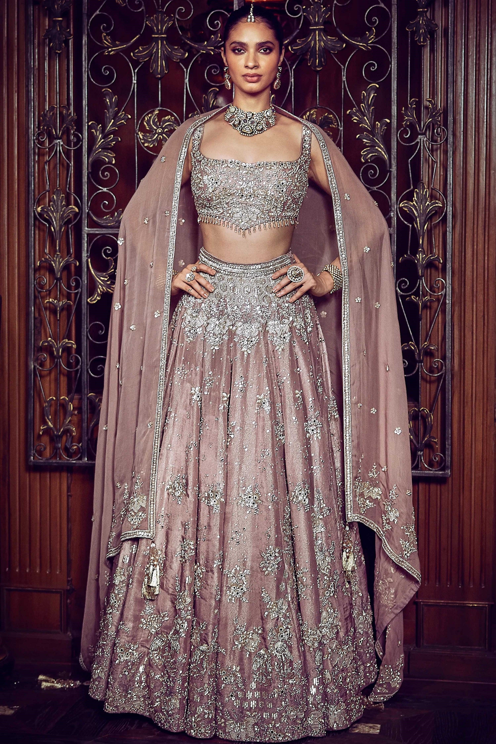 The French Rose Aurum Tissue Lehenga Is A Radiant Tribute To The Delicate Beauty Of Roses Cast In Golden Light. Hand Embroidery And Patchwork Come Together To Create A Lehenga That Feels As If It's Been Touched By Sunlight, Glowing From Within. Perfect For A Bride Who Dreams Of A Look That Is As Ethereal As It Is Timeless, This Lehenga Is An Exquisite Expression Of Nature's Elegance.