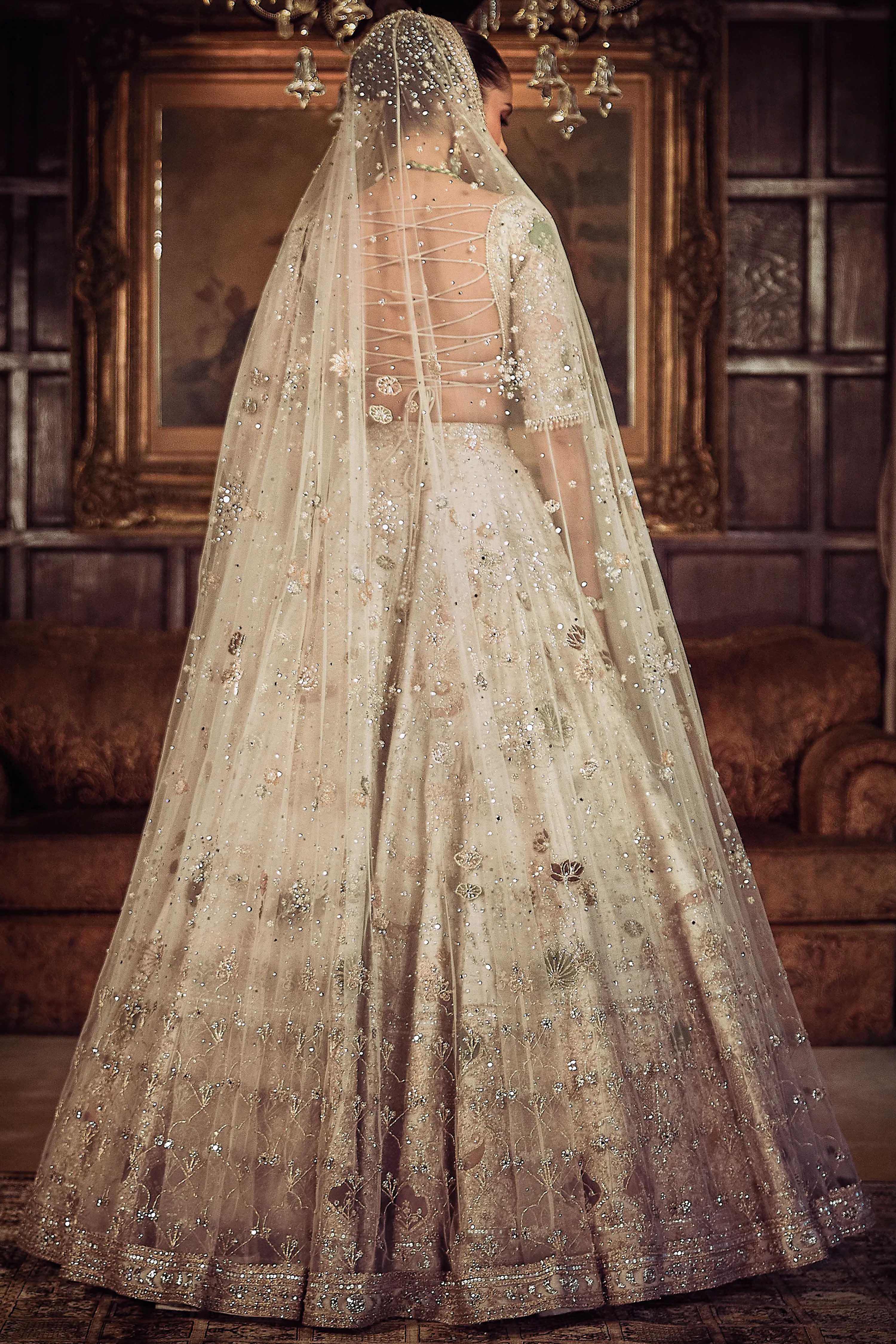 The Kamalbagh Aurum Ekru Lehenga Is A Testament To The Timeless Beauty Of Handcrafted Artistry. Patchwork, Anmol Dori Work, And Hand Embroidery Come Together To Create A Lehenga That Exudes Quiet Luxury. Its Subtle Hues And Intricate Details Offer A Refined Aesthetic, Perfect For Brides Who Seek Something That Blends Tradition With Understated Elegance.