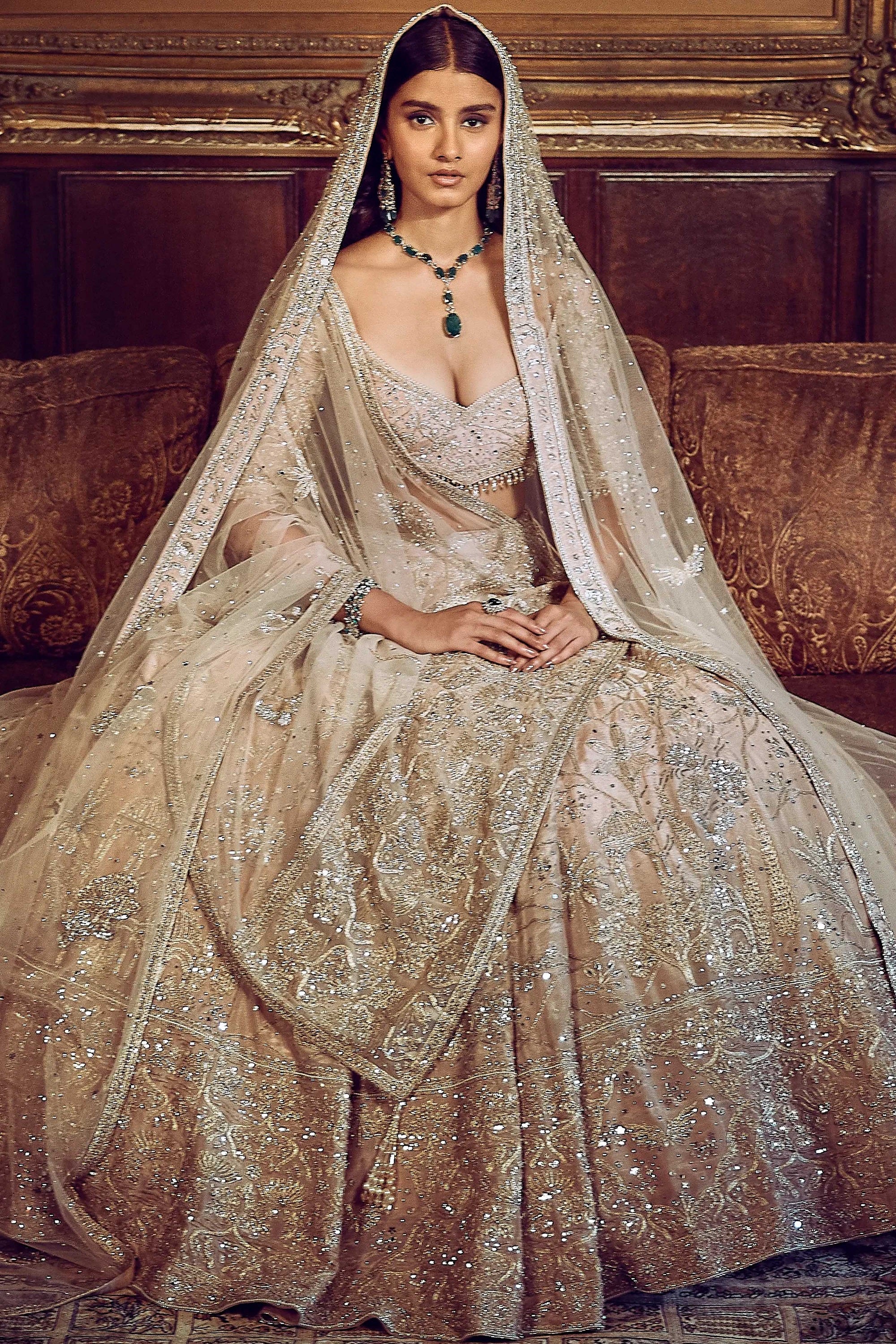 Drawing Inspiration From The Lush Gardens Of Udaipur, The Moroccan Pink Udaibagh Lehenga Is A Celebration Of Vibrant Hues And Detailed Craftsmanship. Adorned With Anmol Dori Work, Hand Embroidery, And Fine Highlighting, This Lehenga Brings The Spirit Of A Royal Garden To Life. Perfect For The Bride Who Is Not Afraid To Embrace Color And Heritage, This Lehenga Offers A Truly Regal Aesthetic.