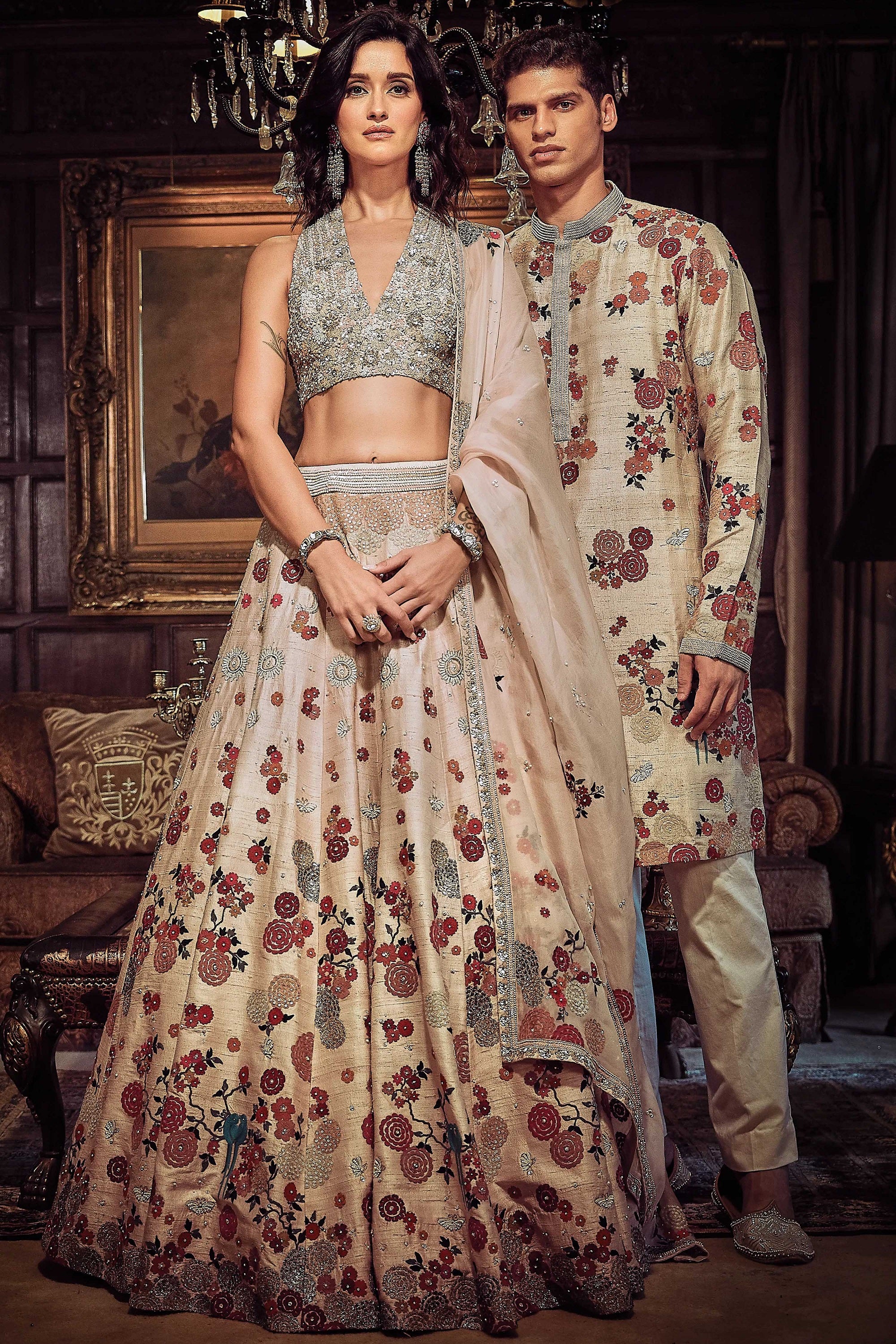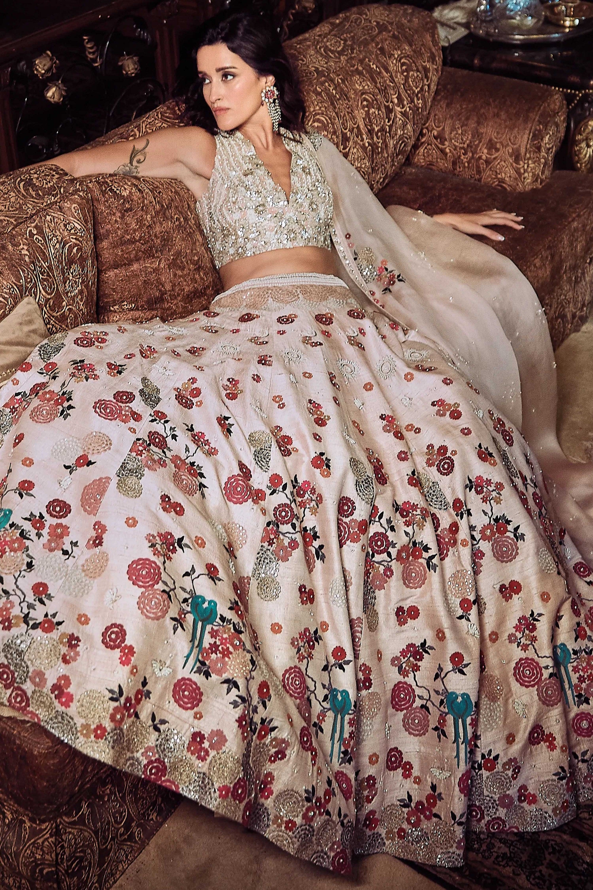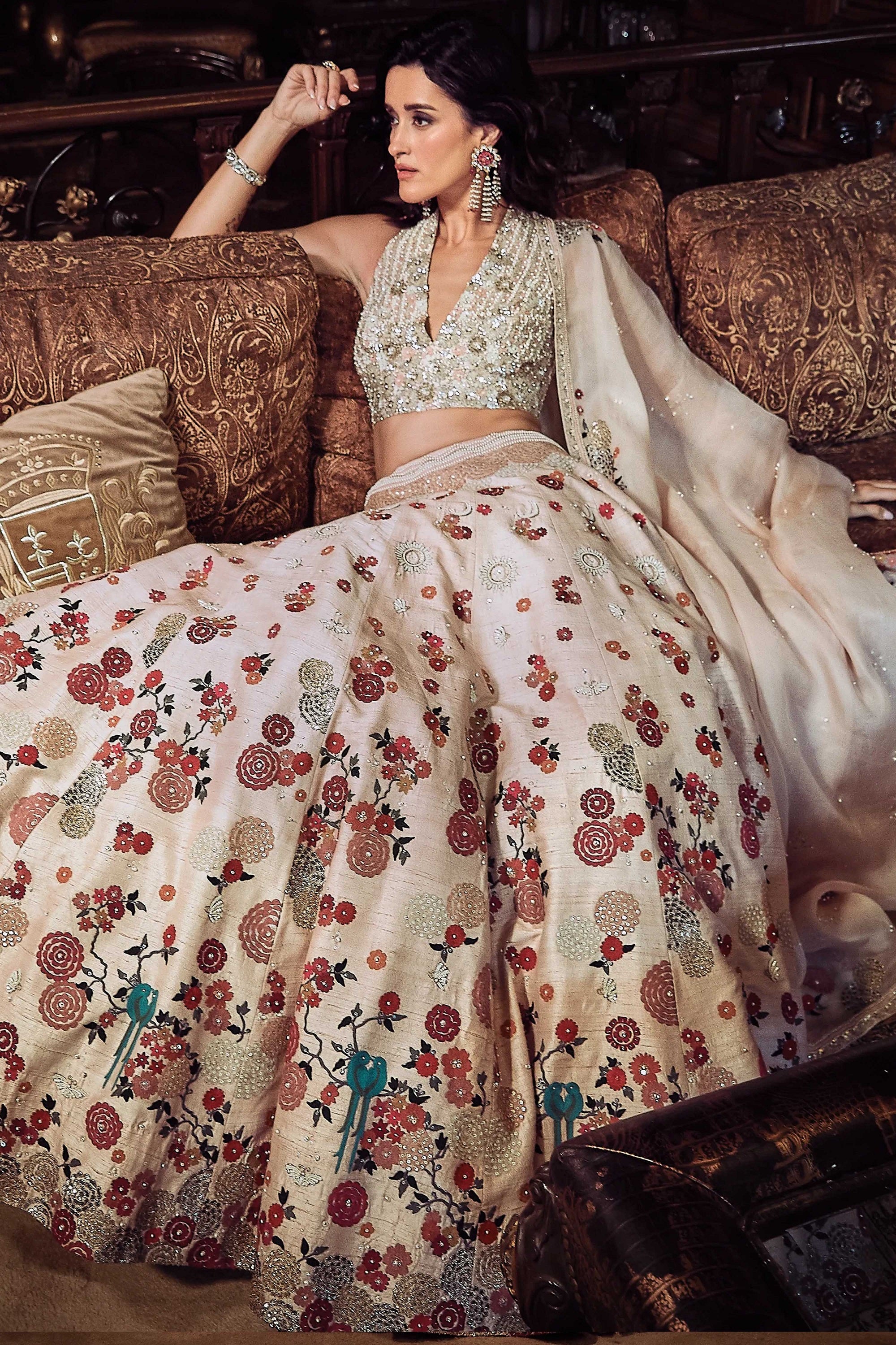 Delicate As The First Blush Of Dawn, The Satire Japanese Pink Lehenga Draws Its Inspiration From The Graceful Elegance Of Cherry Blossoms. The Intricate Aari Embroidery, Thoughtfully Rendered By Hand, Mirrors The Ethereal Beauty Of Nature's Fleeting Moments. This Lehenga Offers A Serene And Elegant Presence, Making It An Exquisite Choice For A Bride With A Refined Sense Of Beauty.