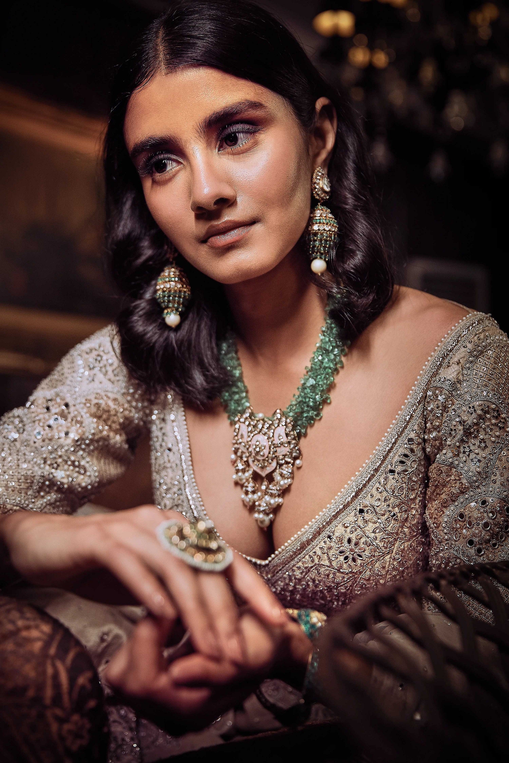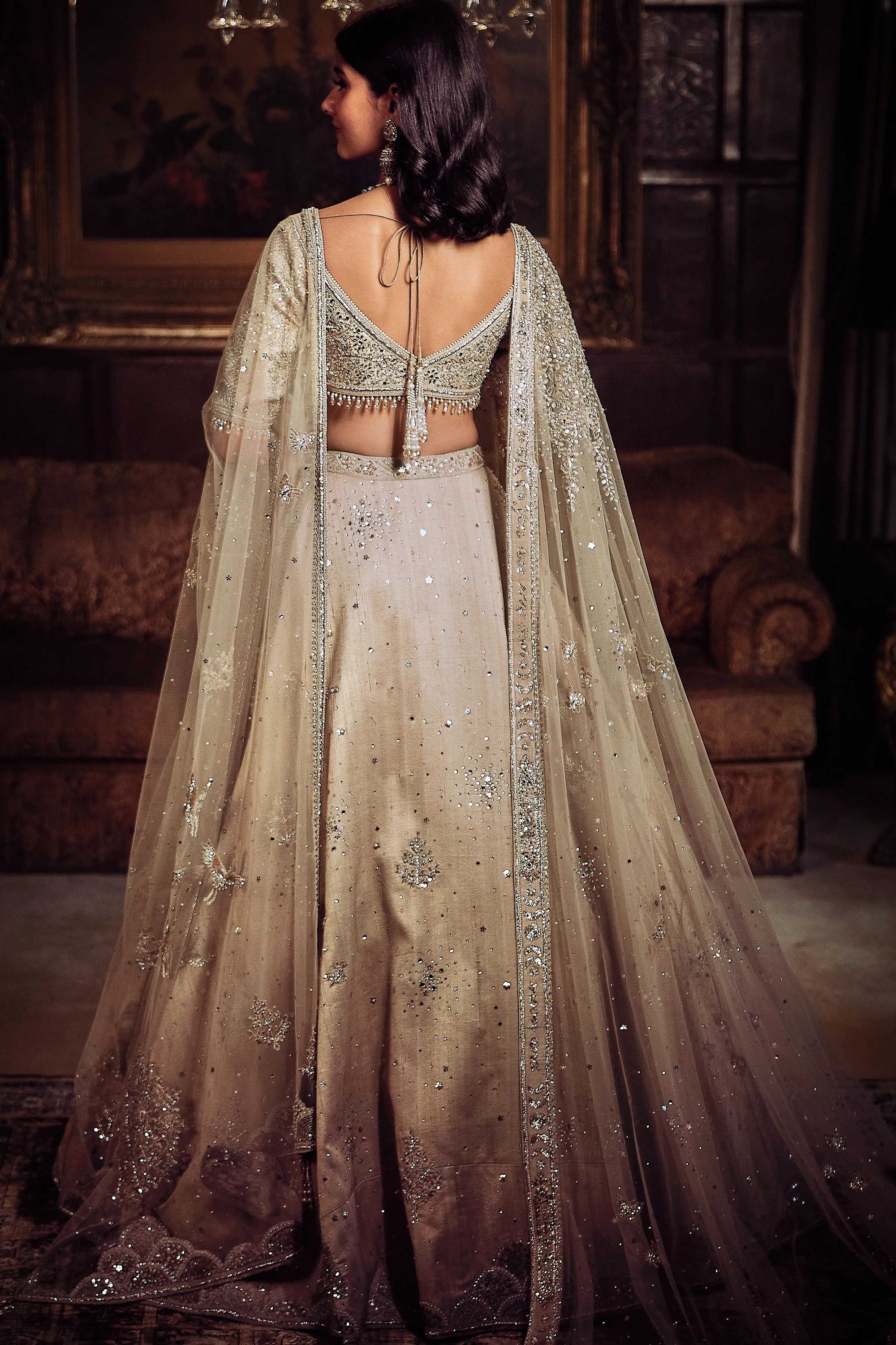 A Masterpiece In Symbolism And Craftsmanship, The Silver Needle Tree Of Life Lehenga Weaves The Story Of Life's Growth And Interconnected Beauty. Gold Dori Work, Zardozi, And Hand Embroidery Bring The Tree's Intricate Branches To Life, Adorning This Lehenga With A Sense Of Majesty And Meaning. More Than Just Beauty, This Lehenga Stands As A Symbol Of Heritage, Love, And Continuity.