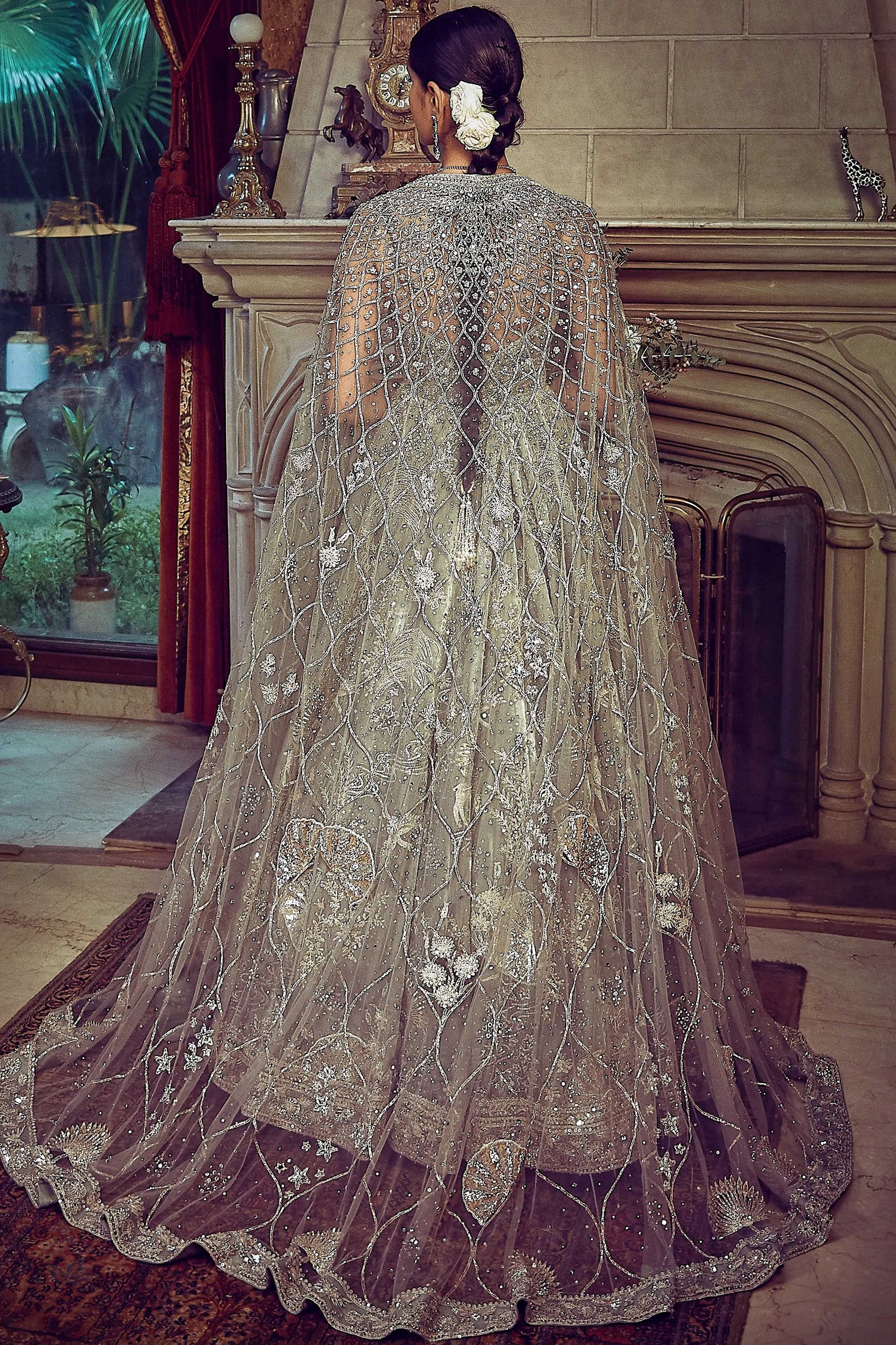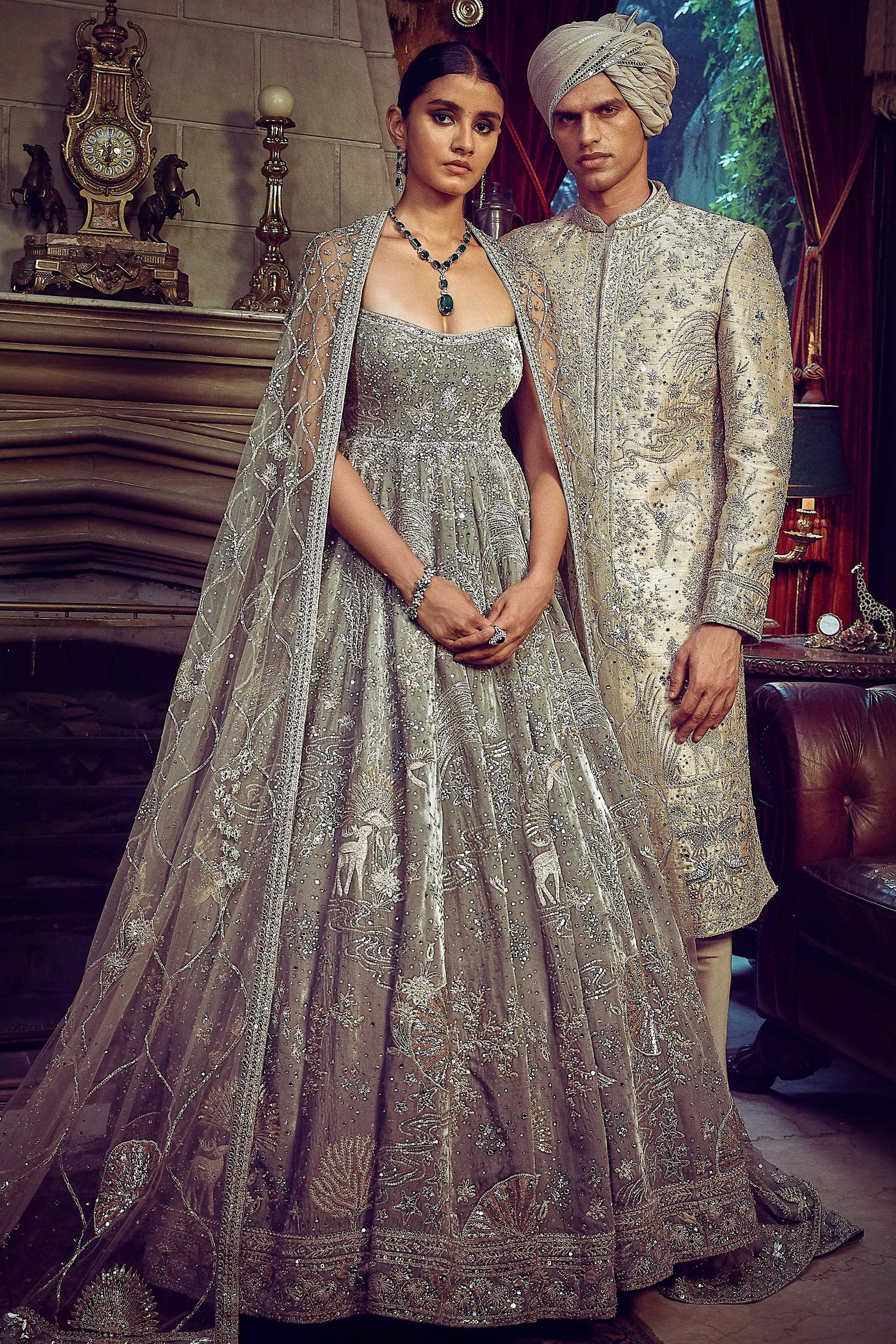 The Wild Masai Gown Embodies The Elegance Of Untamed Beauty, A Symphony Of Bold Silver Dori Work And Intricate Zardozi That Creates A Fluid, Dynamic Silhouette. Ideal For Evening Soirees And Special Occasions, This Gown Stands As A Tribute To The Modern Woman—Bold In Her Choices, Refined In Her Taste. Each Stitch Reflects A Commitment To Artistry And Bespoke Craftsmanship.
