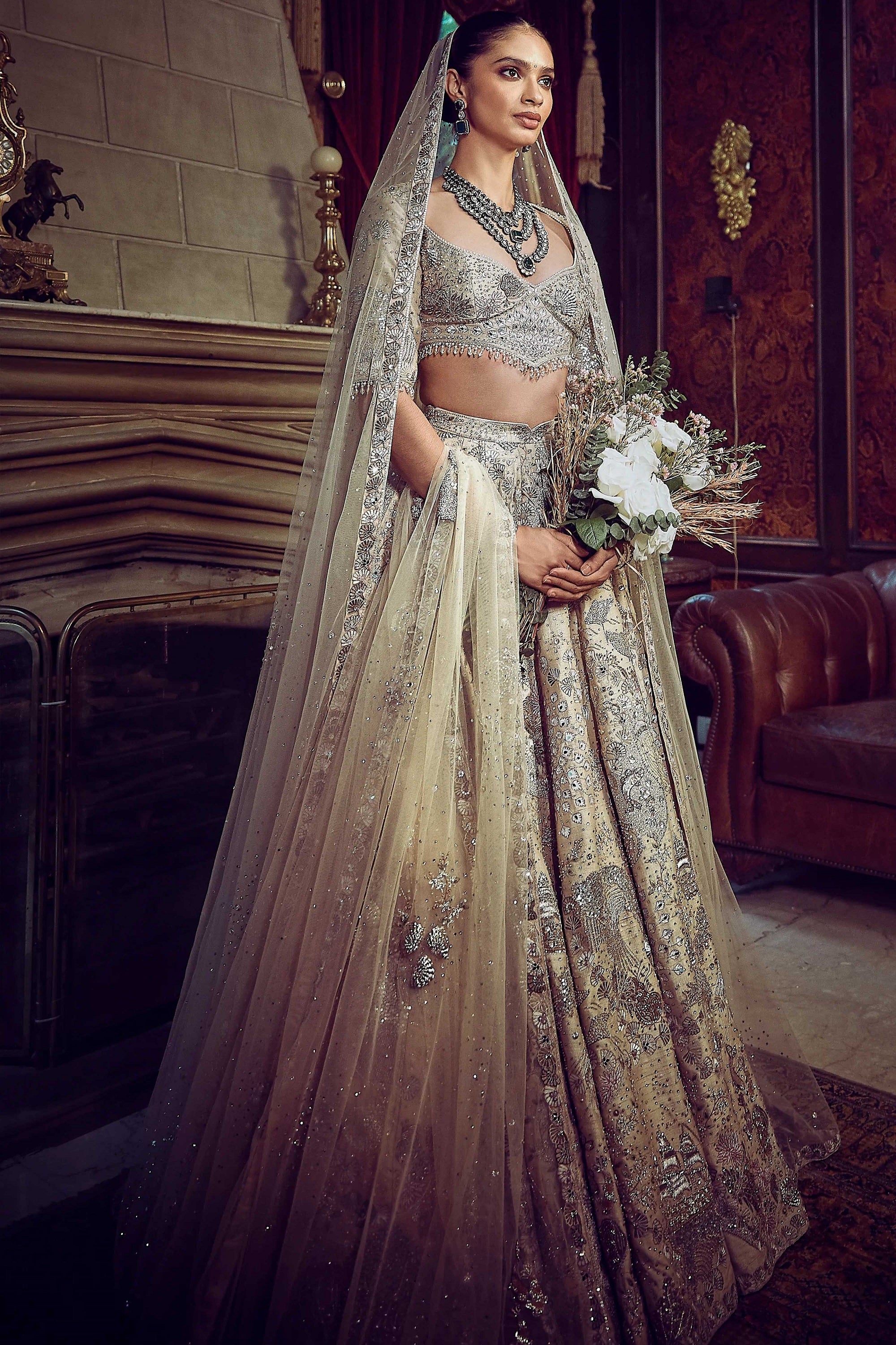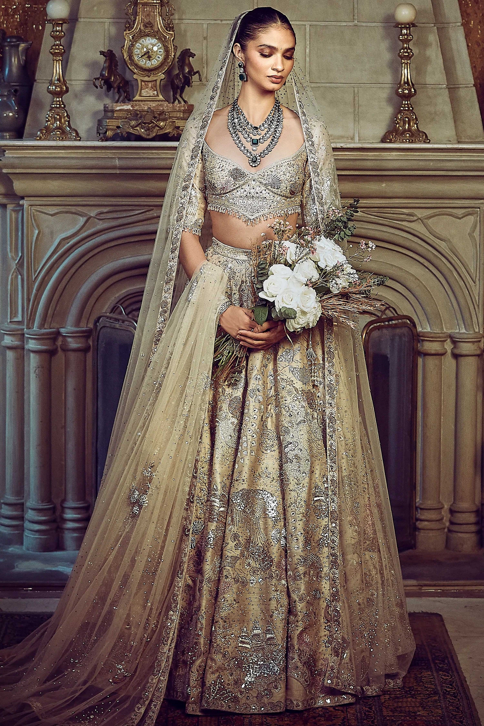 The Wild Ocean Ekru Lehenga Channels The Fluidity And Depth Of The Ocean Through Its Multicolored Hand Work & Embroidery. This Lehenga Offers A Bold Yet Elegant Aesthetic, Perfect For Brides Who Seek A Unique, Nature-Inspired Design. A Marriage Of Dynamic Textures And Serene Colors, This Lehenga Is A Masterclass In Bringing The Beauty Of The Natural World To Life In Fabric.