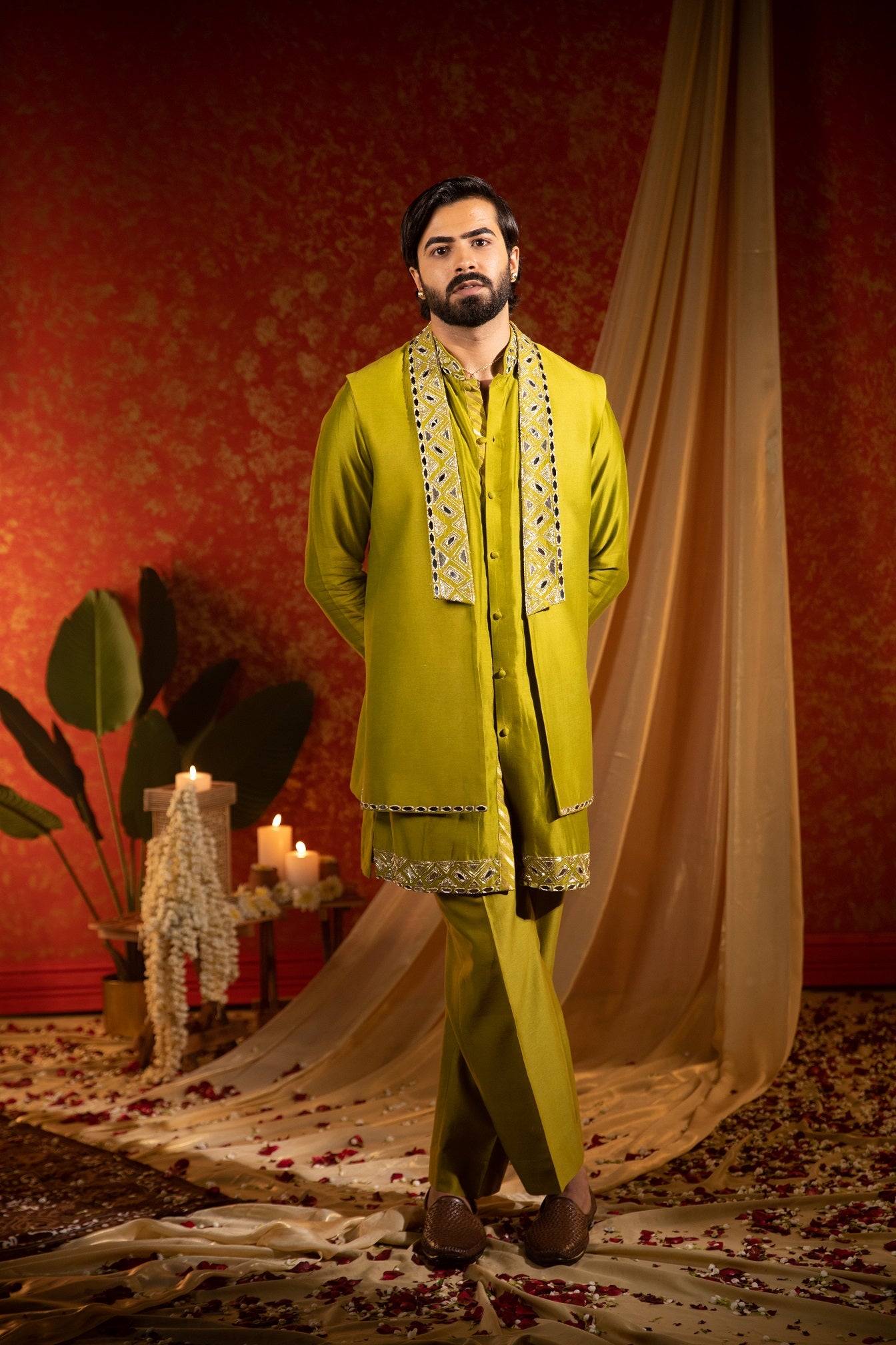 Mirror lapel kurta bandi set