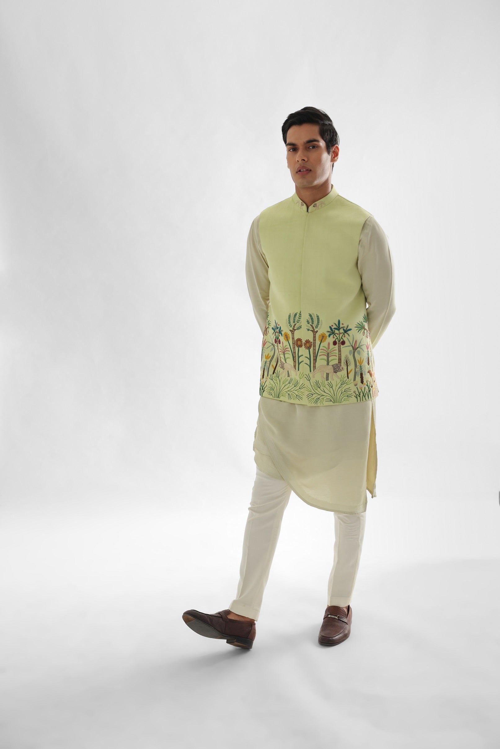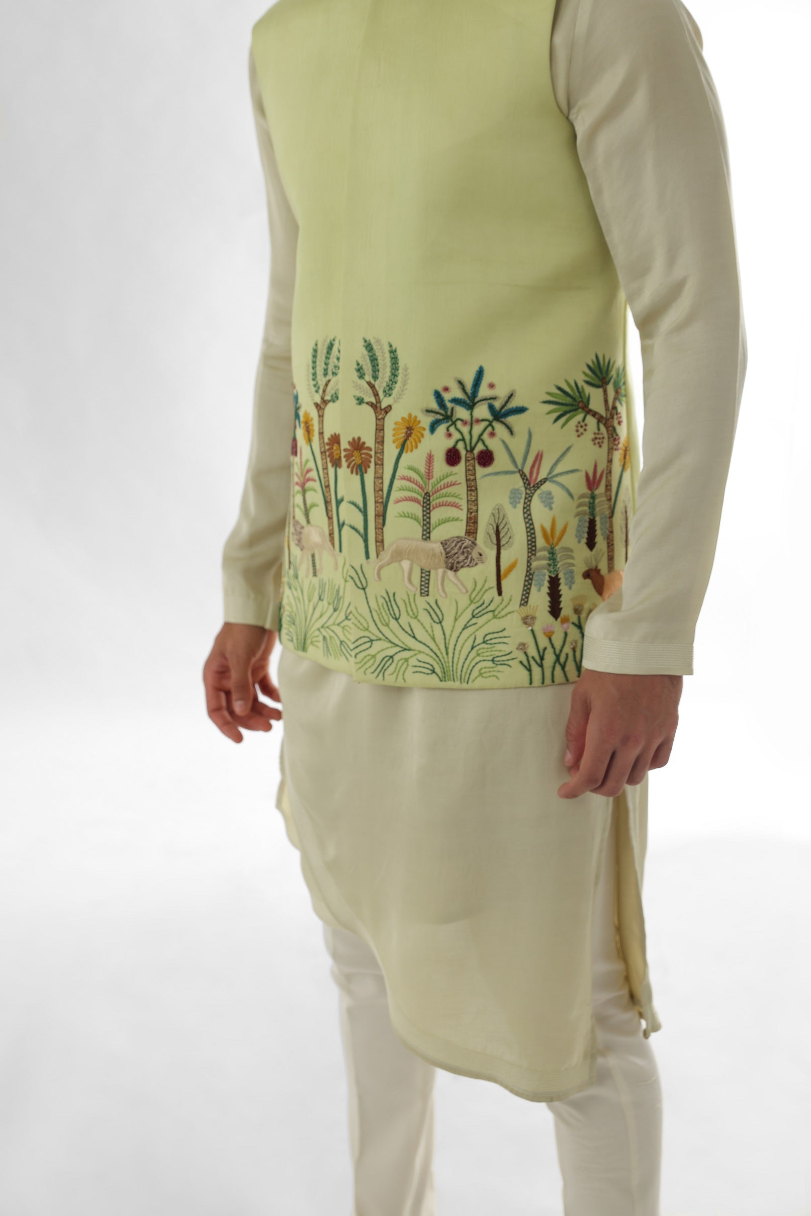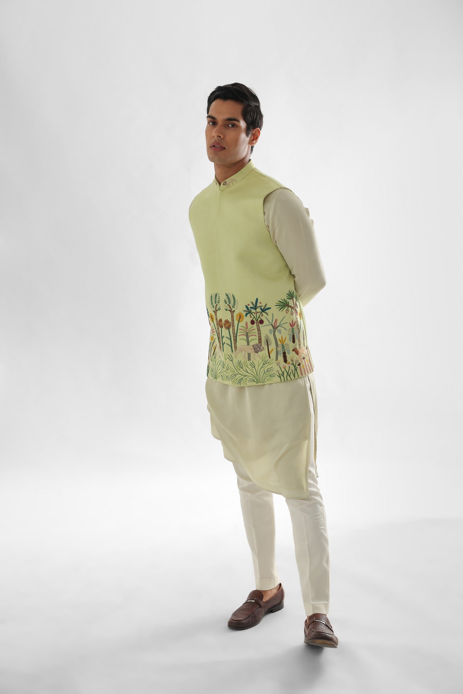 MINT GREEN NEHRU JACKET WITH THE USE OF THREADWORK