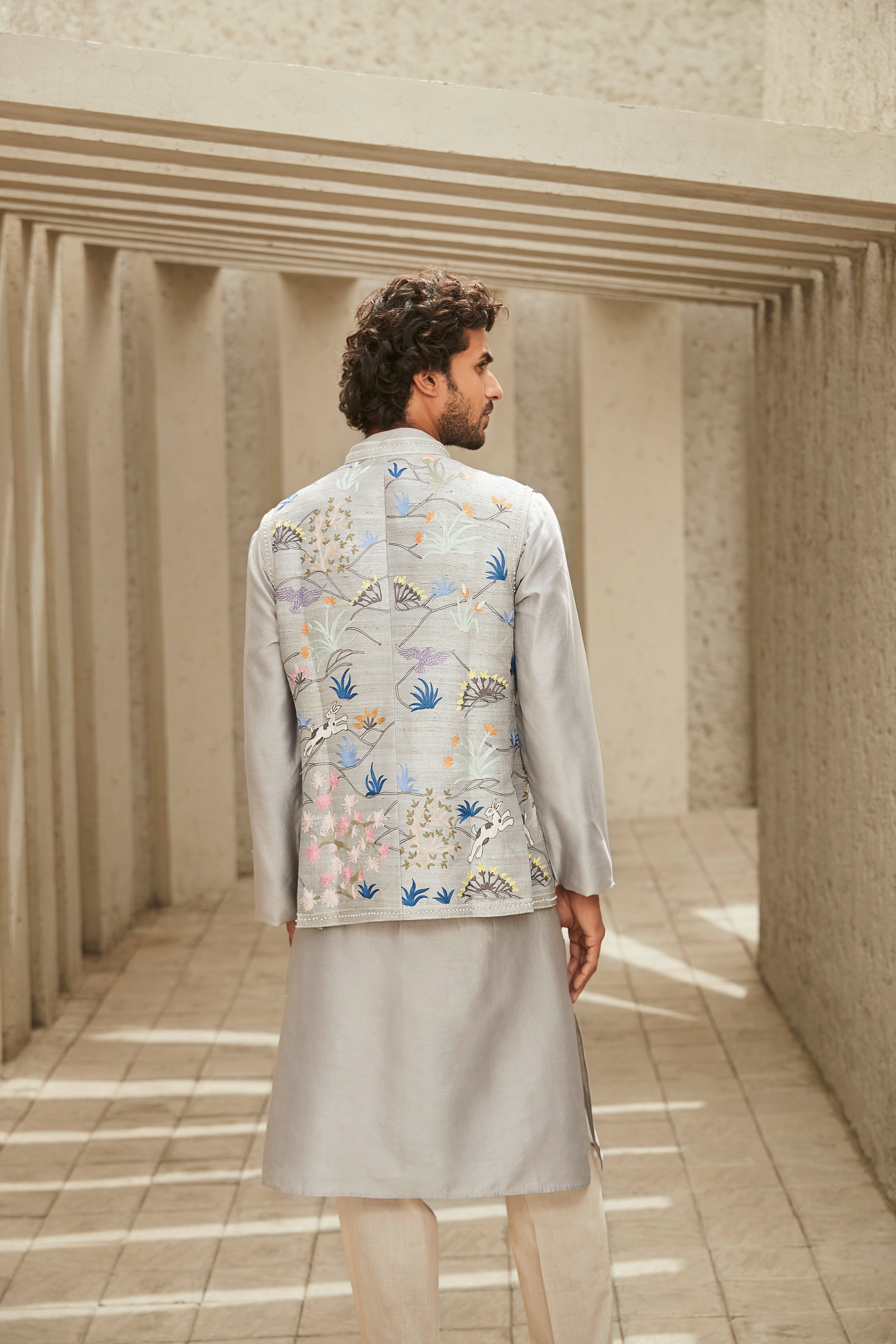 Make a solid statement in this contrast ivory kurta set, crafted in luxurious chanderi. Presenting multiple styling opportunities on several occasions, it is for minimalist mavens and is a part of our Heritage Pret '23 line.