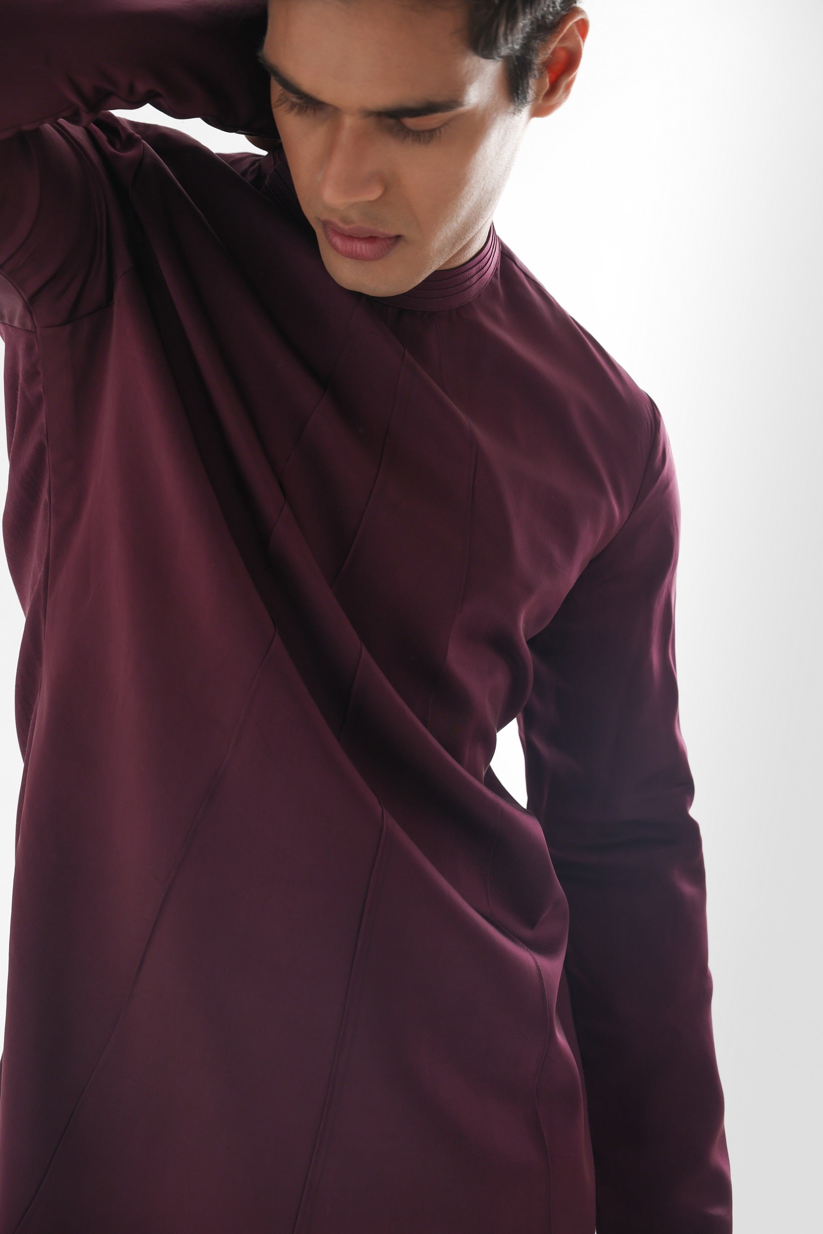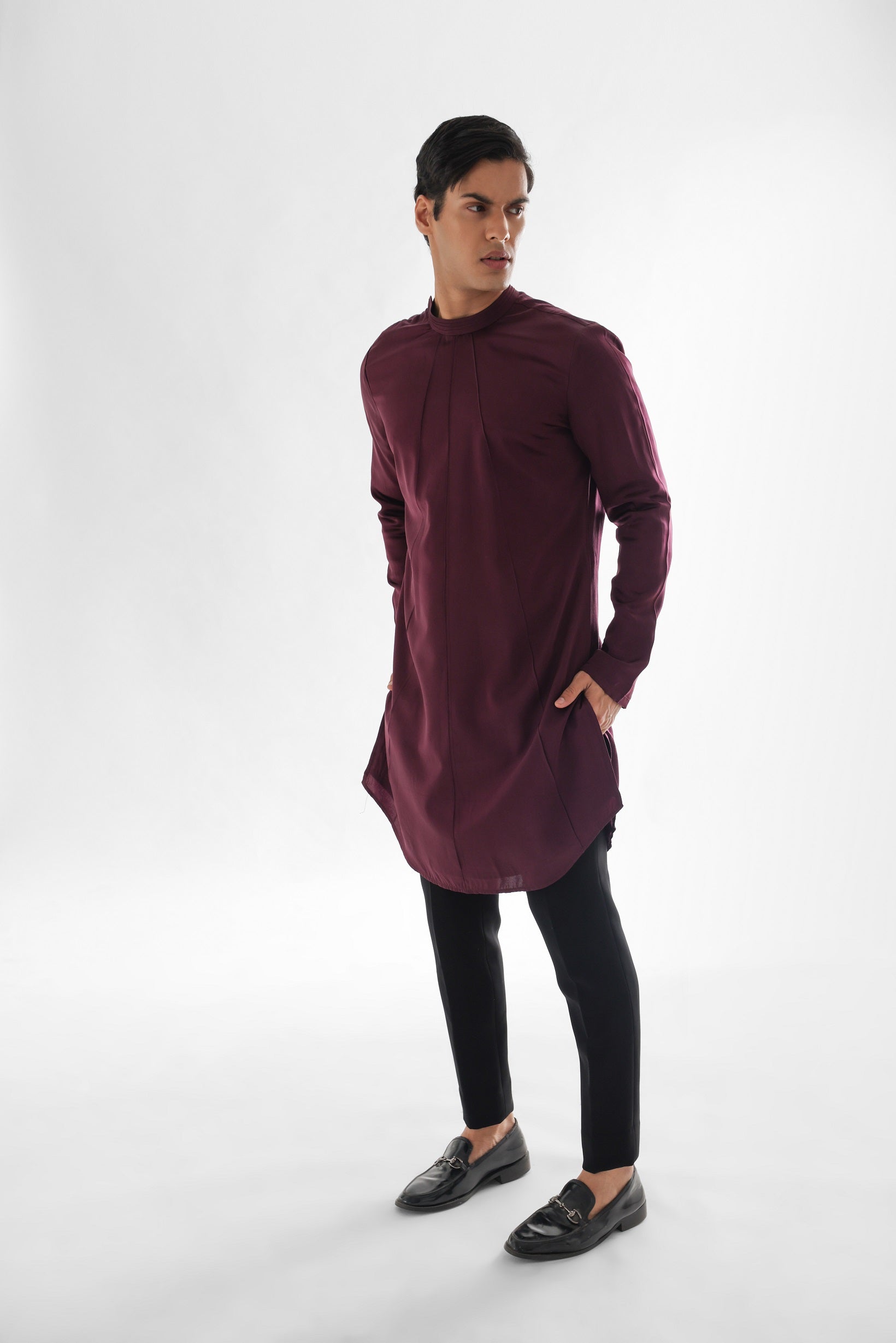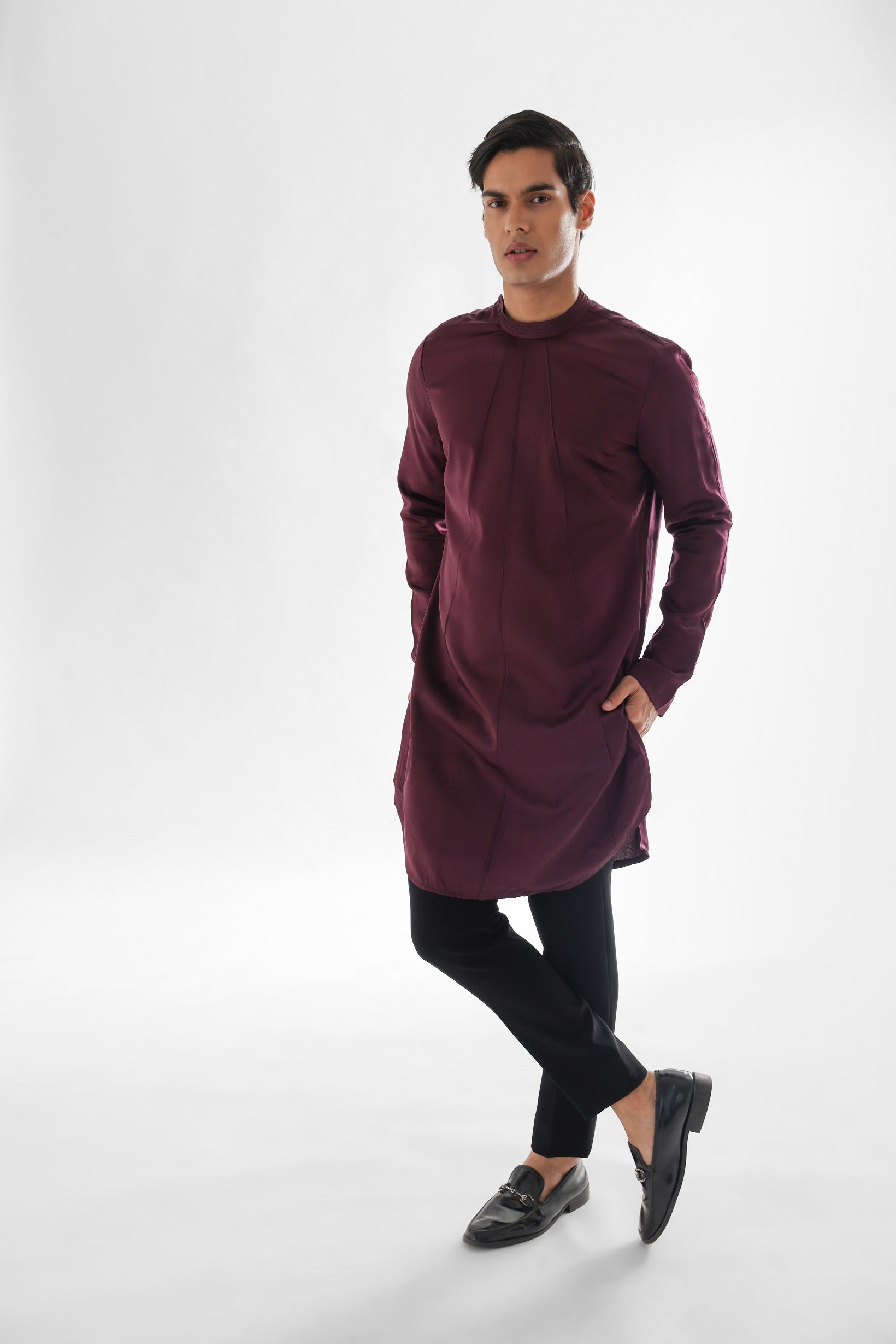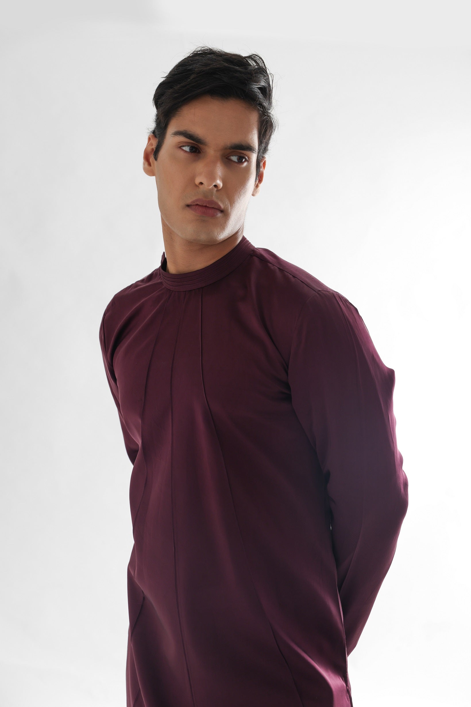 | VIVID MAGENTA COLOURED KURTA IN SATIN WITH PINTUCKS DETAILING PAIRED WITH BLACK PANT PAJAMA |