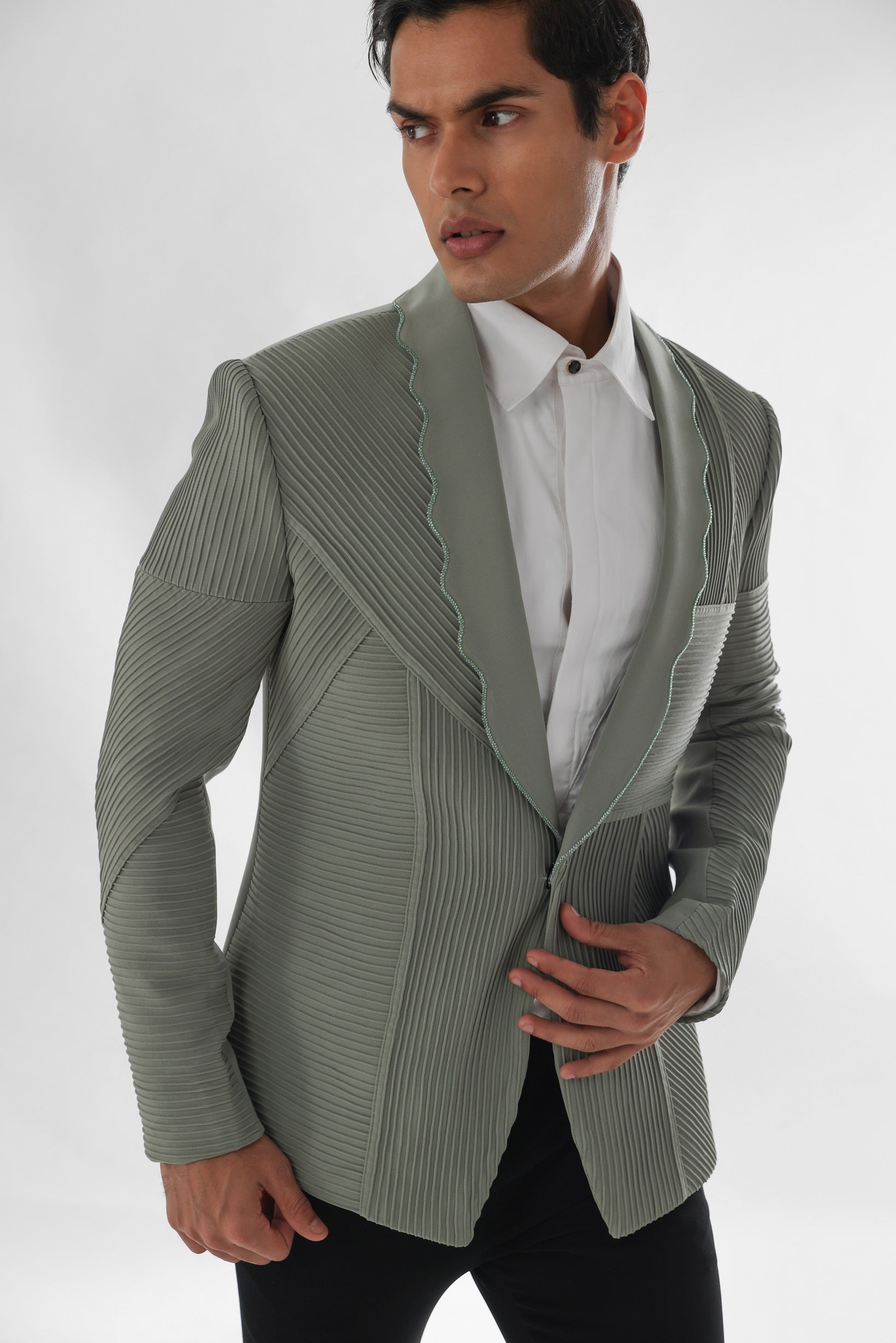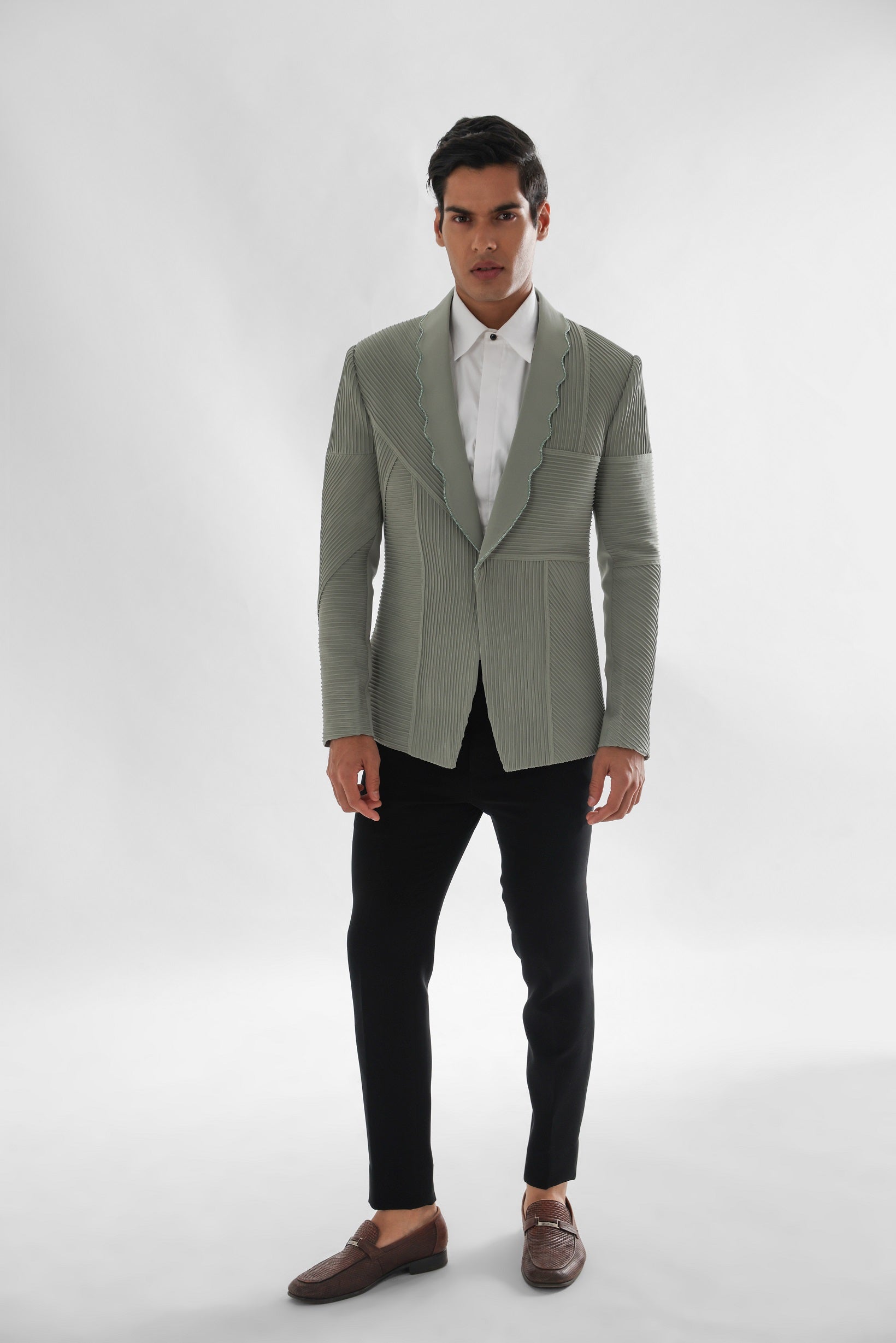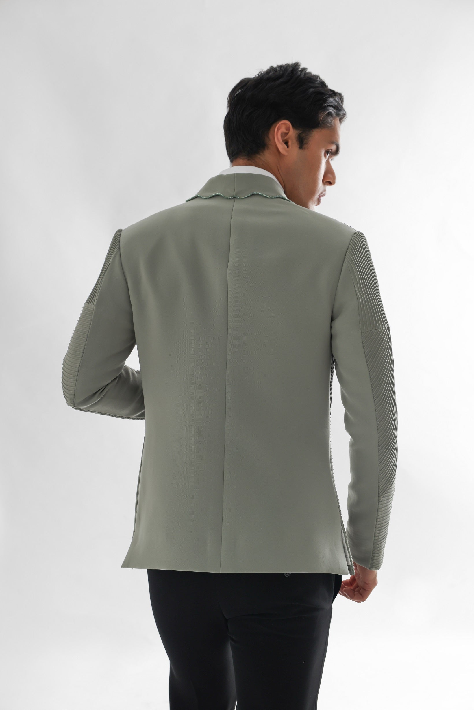 Pista green pintucks tuxedo set