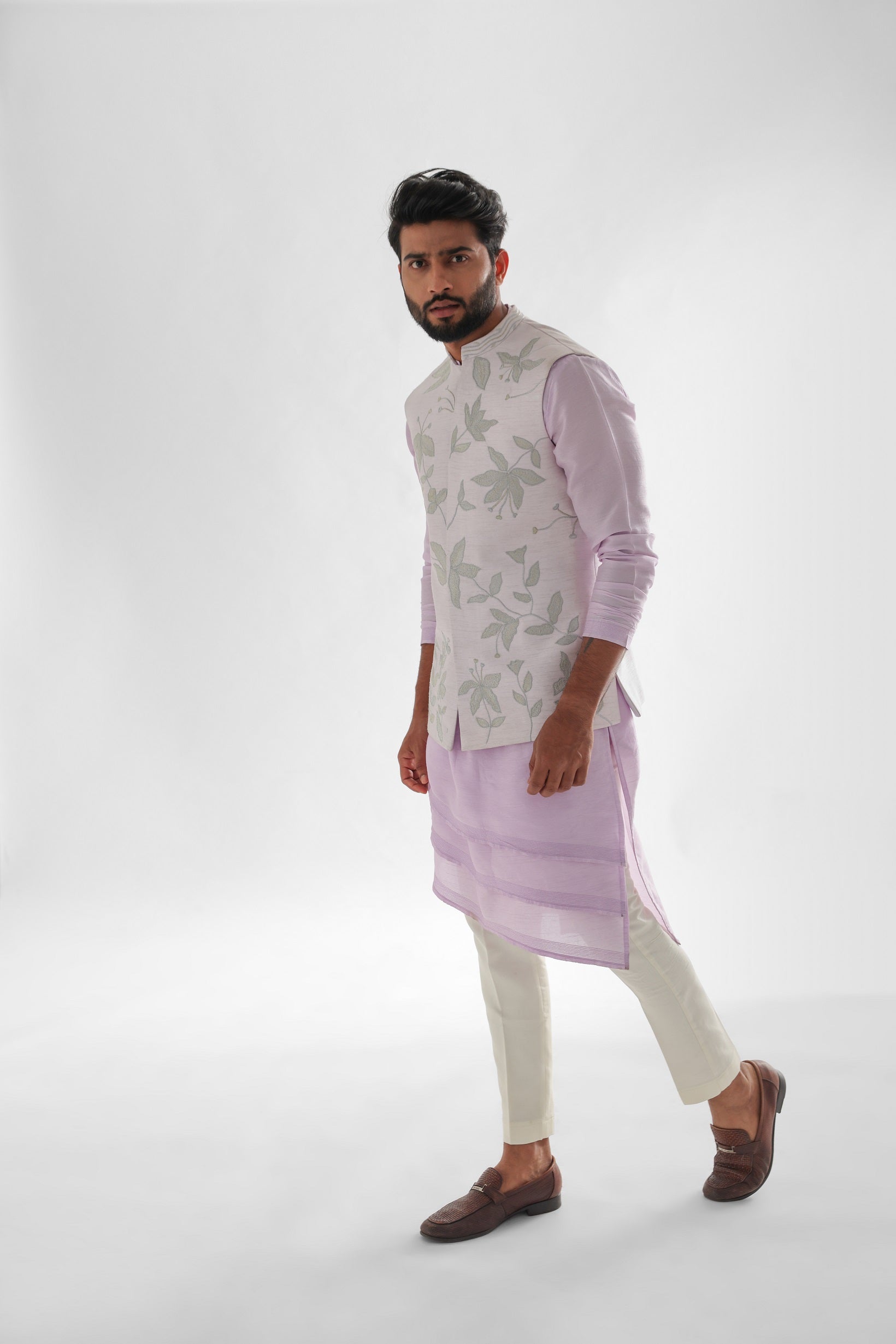 Tissue light lavender nehru jacket