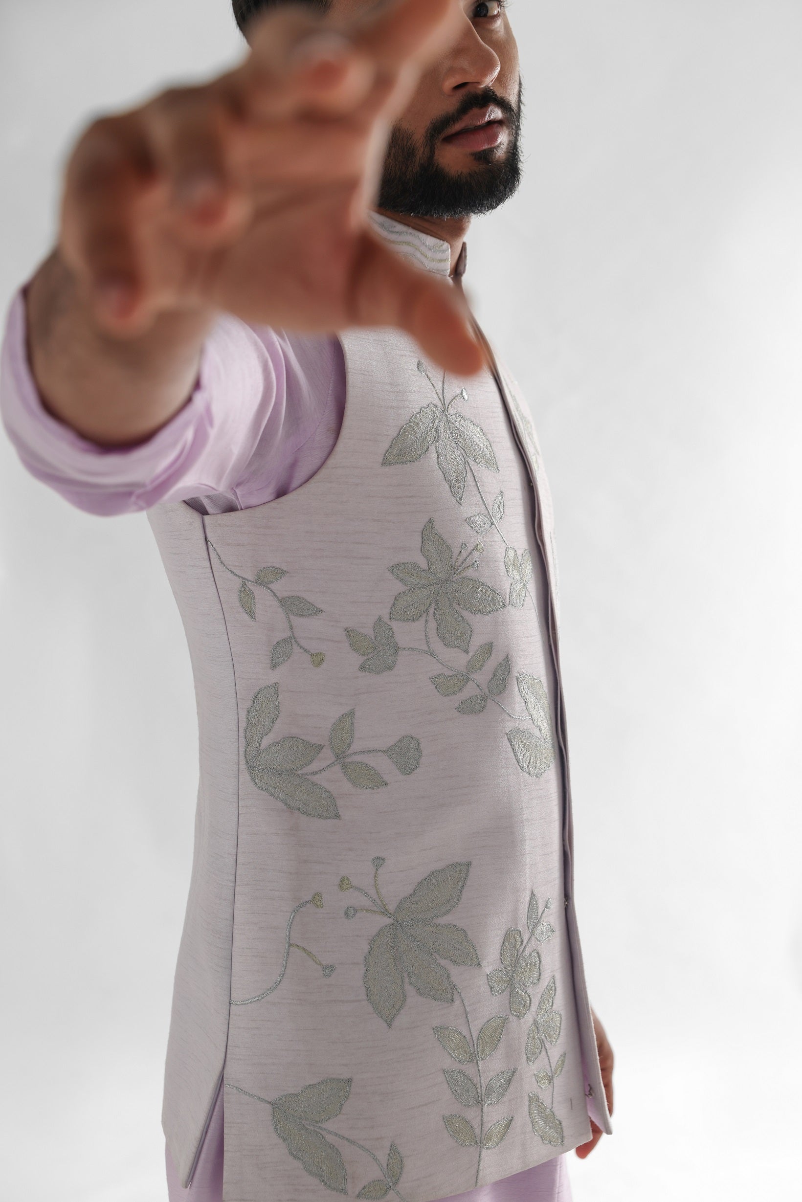 | LIGHT LAVENDER NEHRU JACKET WITH TISSUE APPLIQUE WORK |