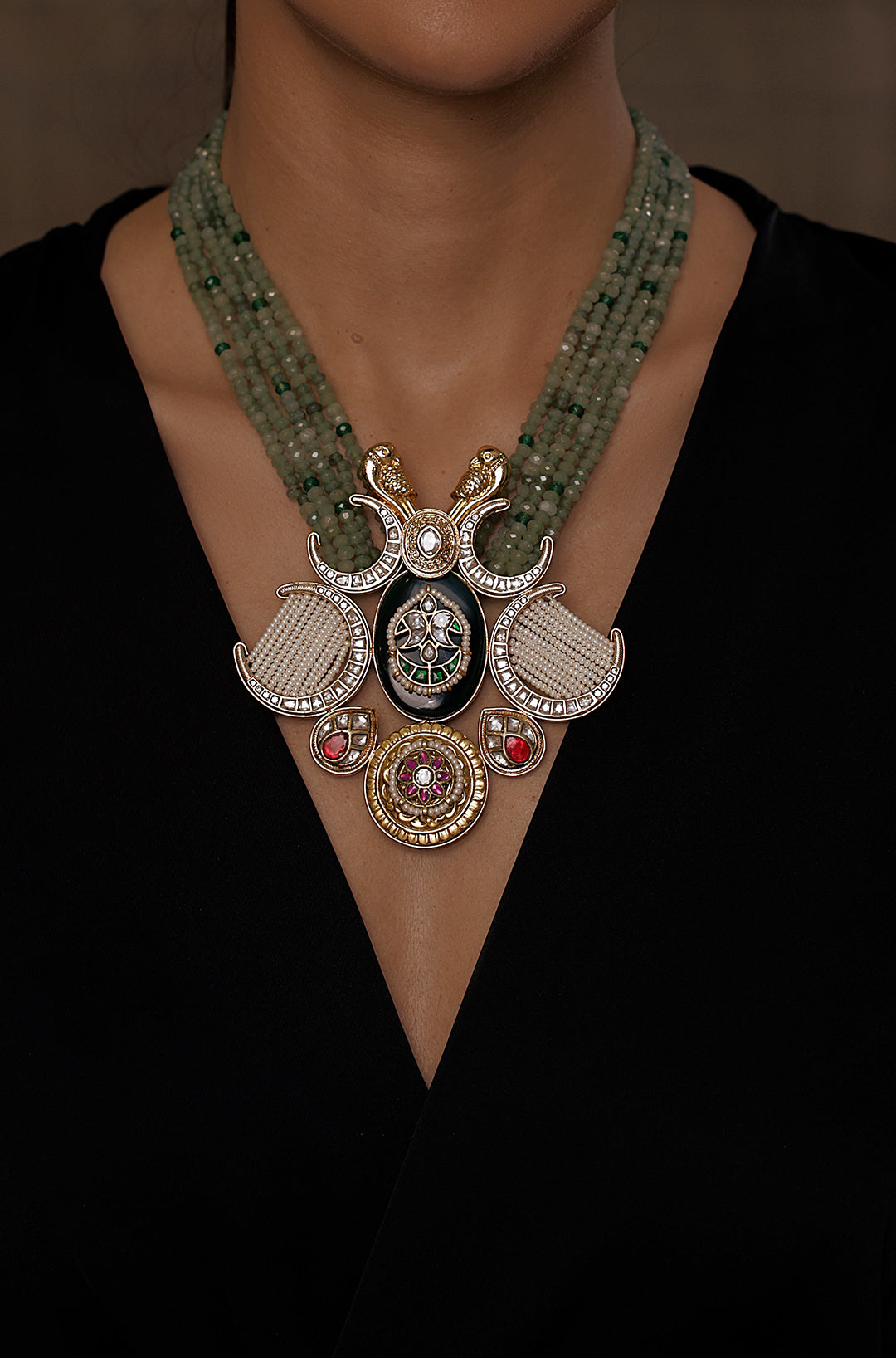 Bespoke Necklace Captures Attention With Its Fusion Of Various Beads, Embellishments, Pearls, And Stones, All Highlighted By A Bold Statement Pendant. Its Design Ensures You'Ll Stand Out With Elegance And Flair.