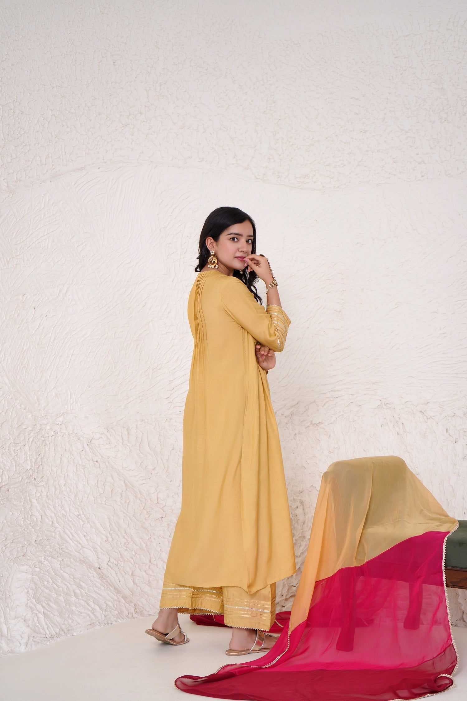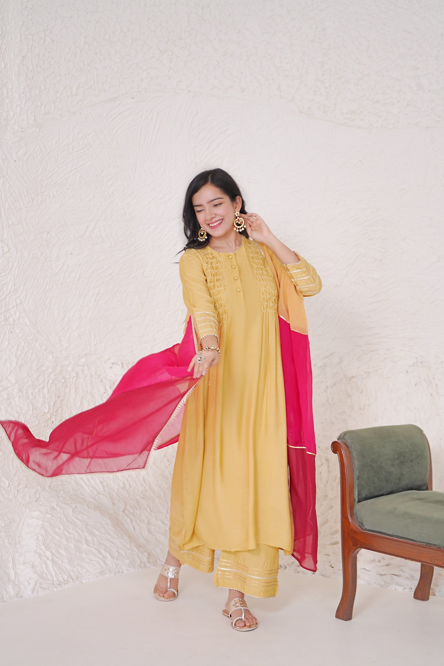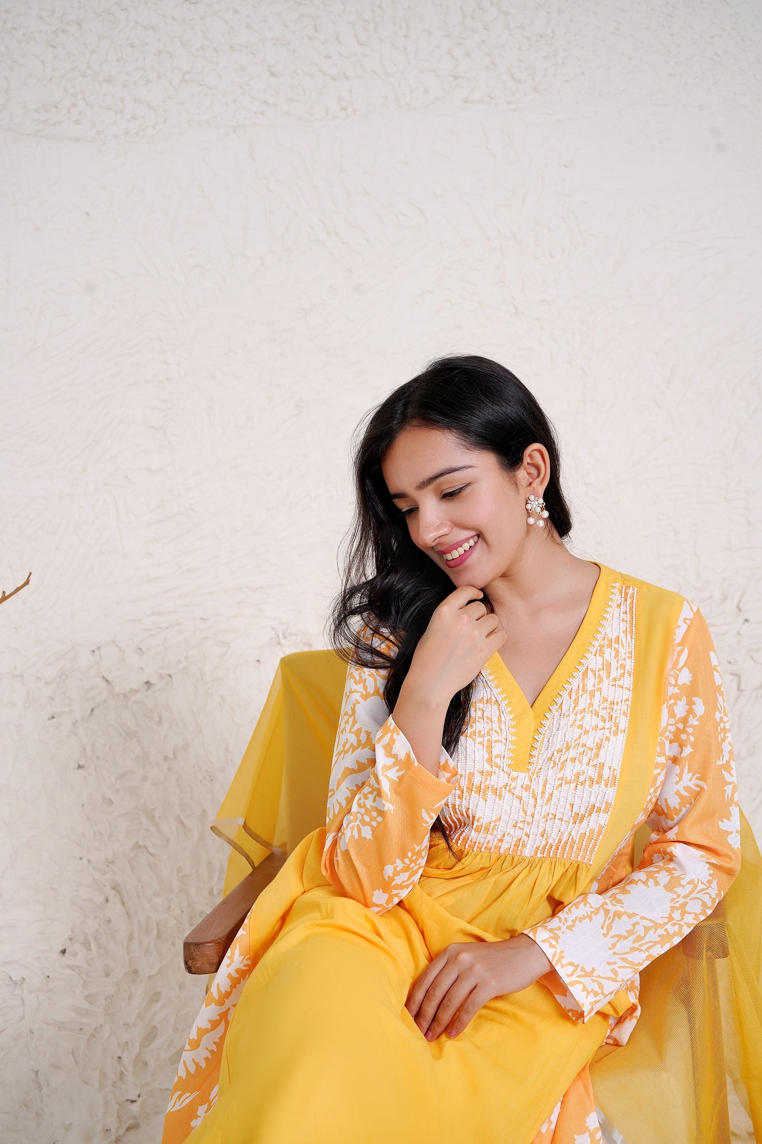 Sunflower yellow pure cotton kurta & pant with dupatta