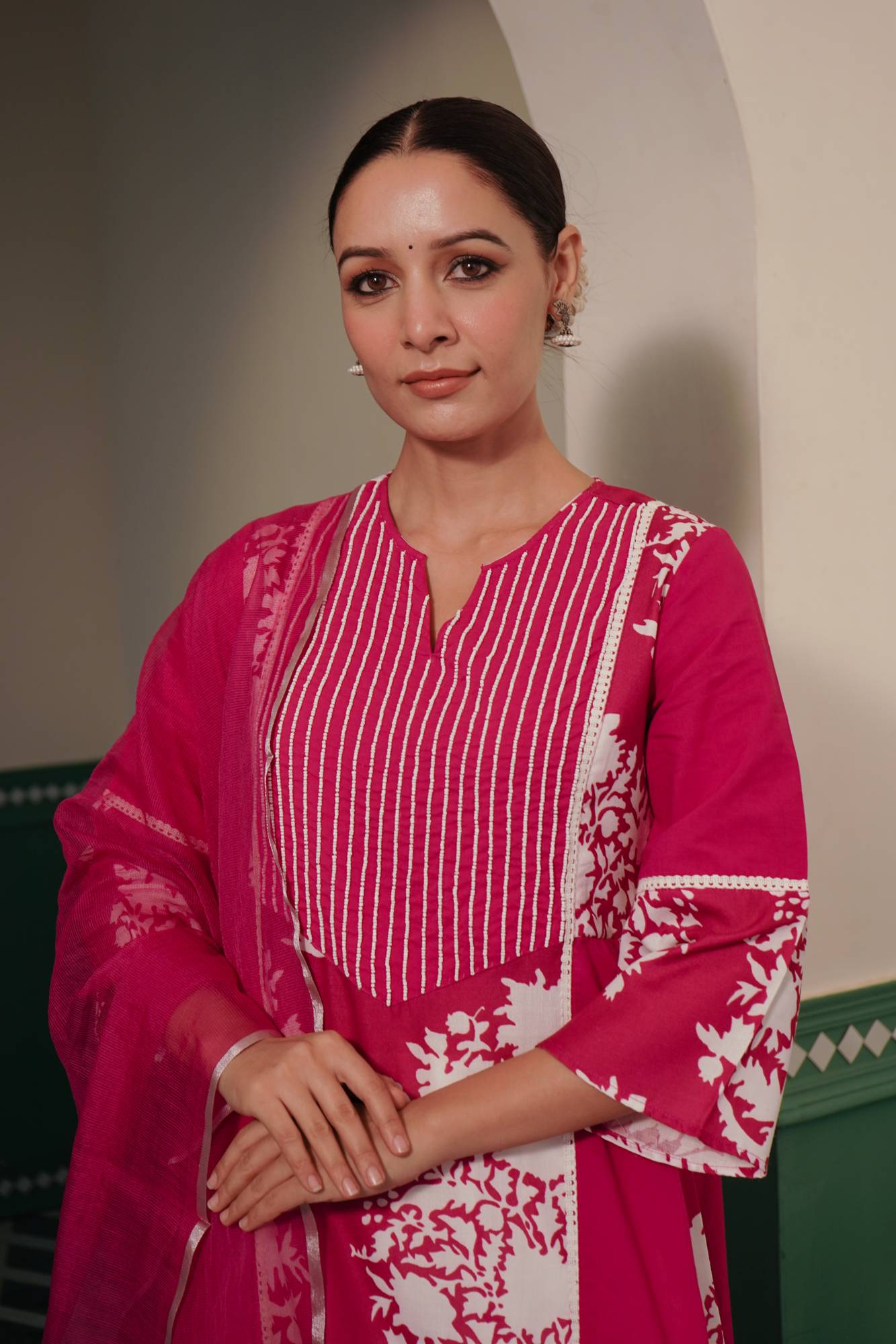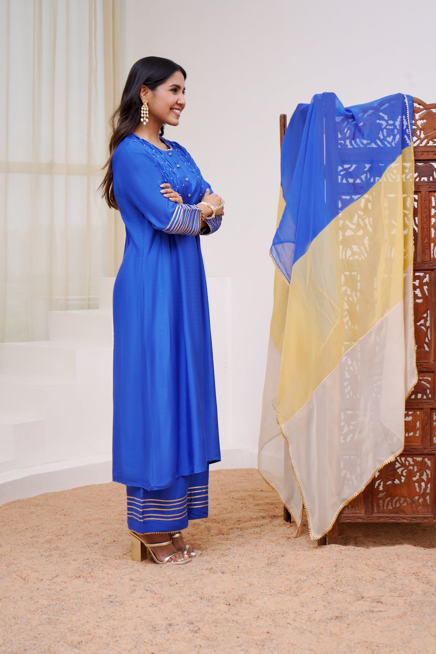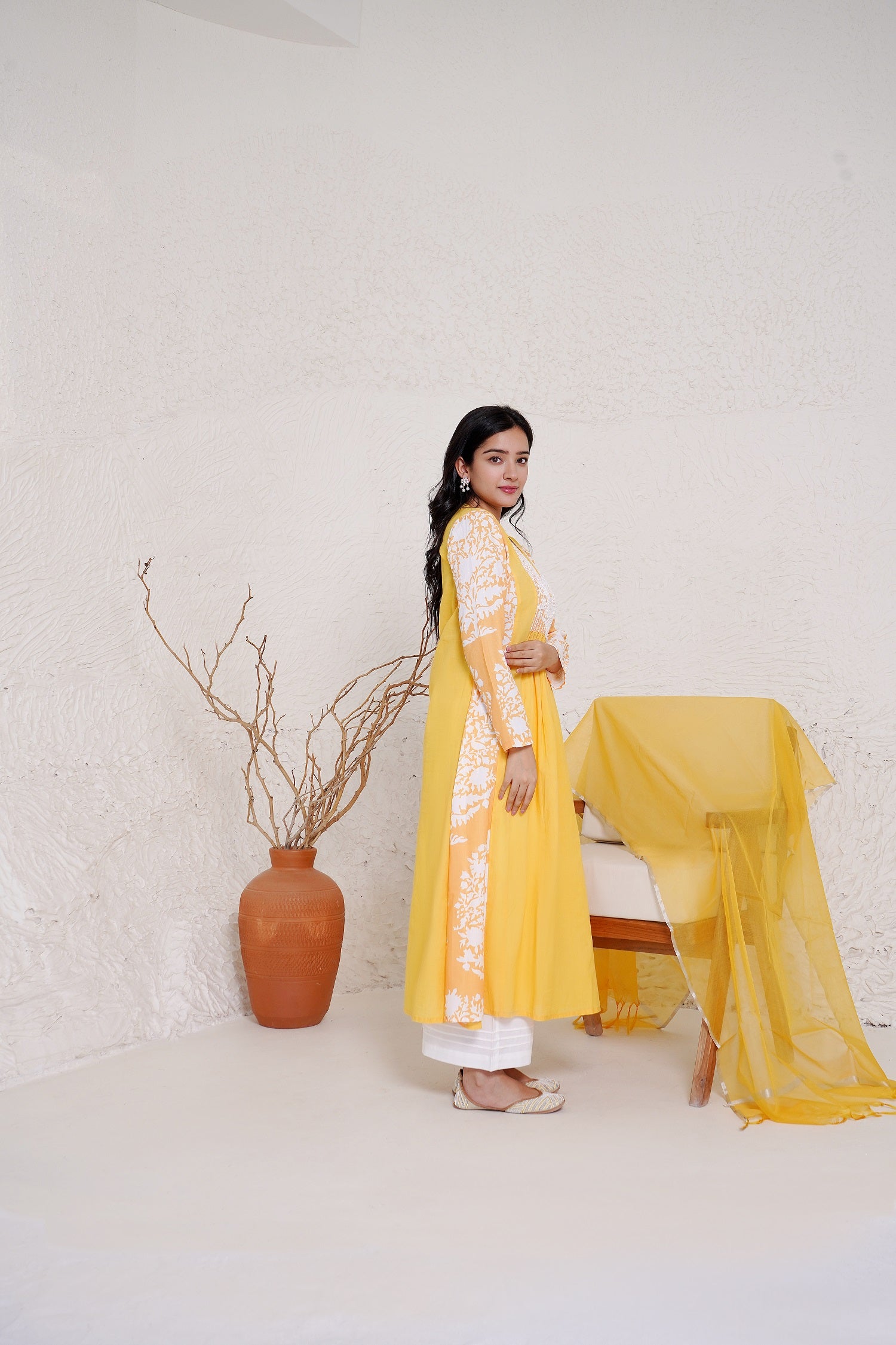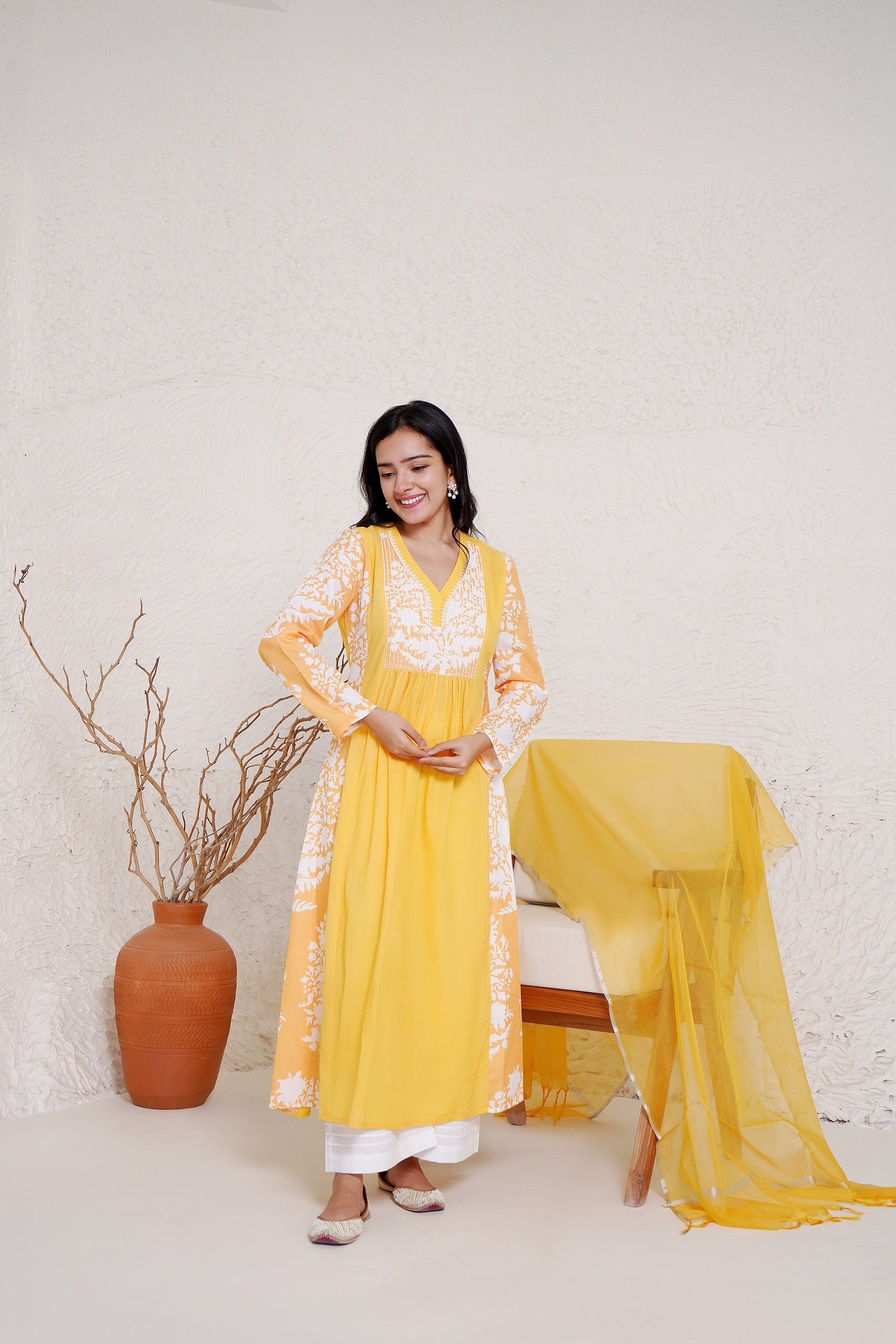 Sunflower yellow pure cotton kurta & pant with dupatta