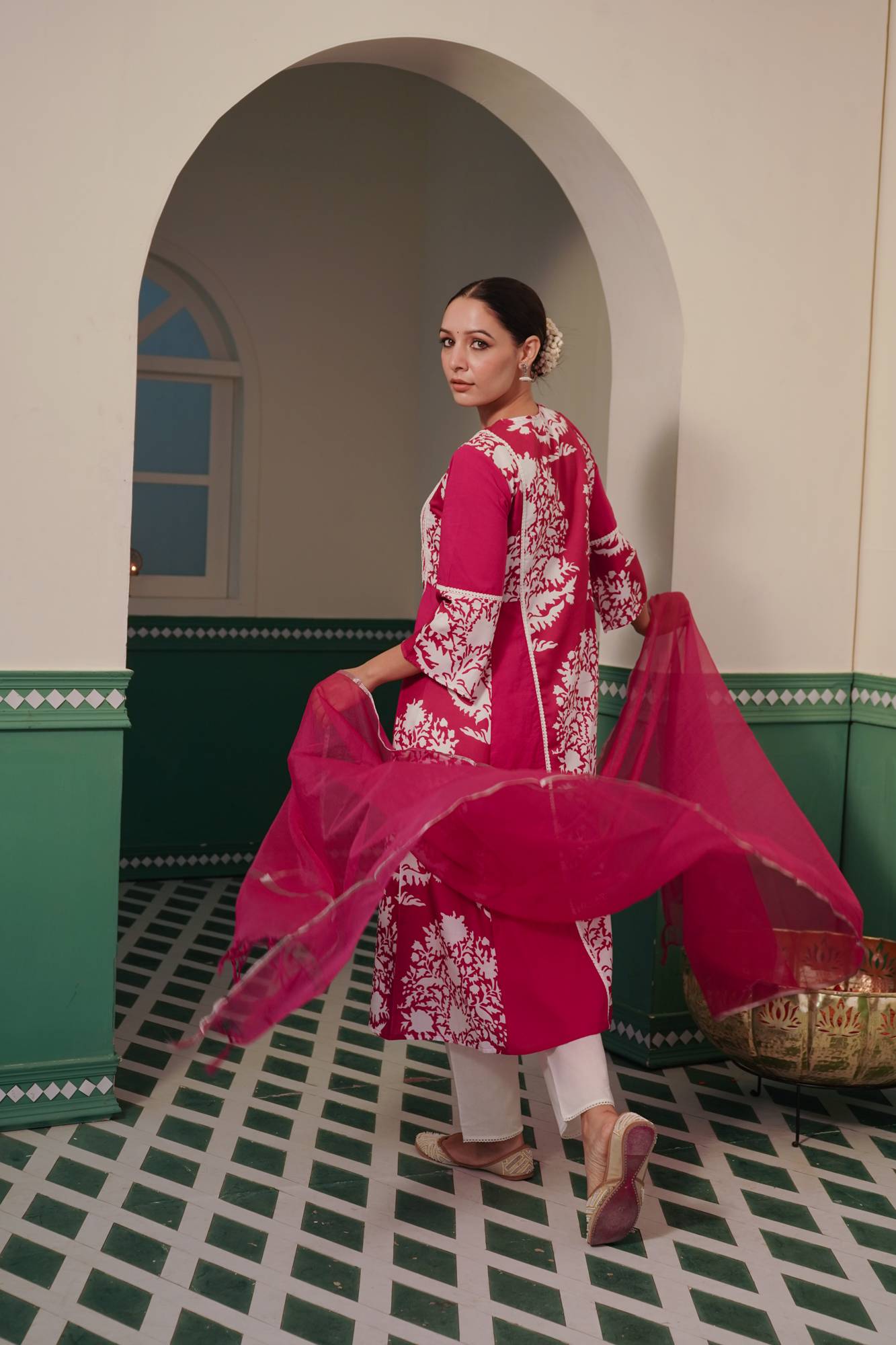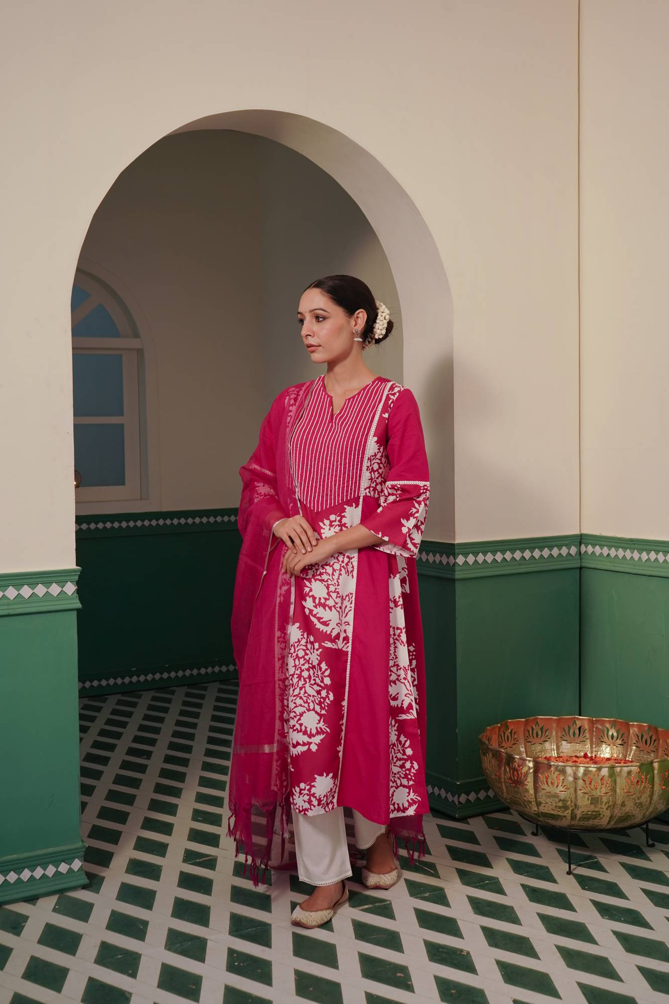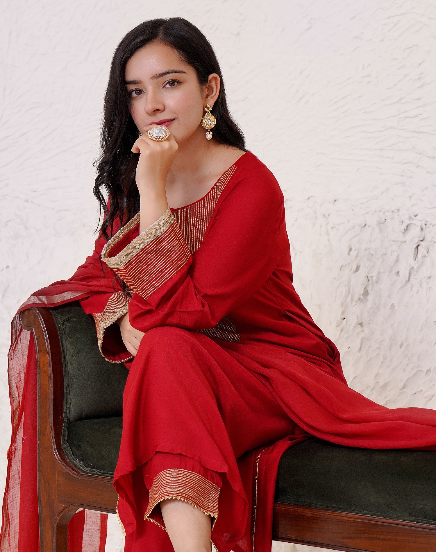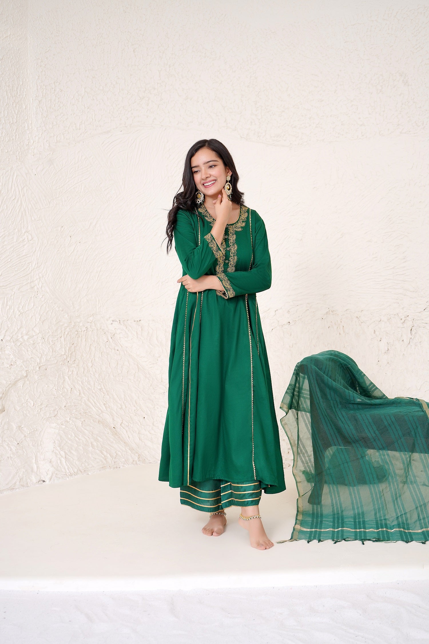 Emerald green cotton satin kurta & chanderi pant with dupatta
