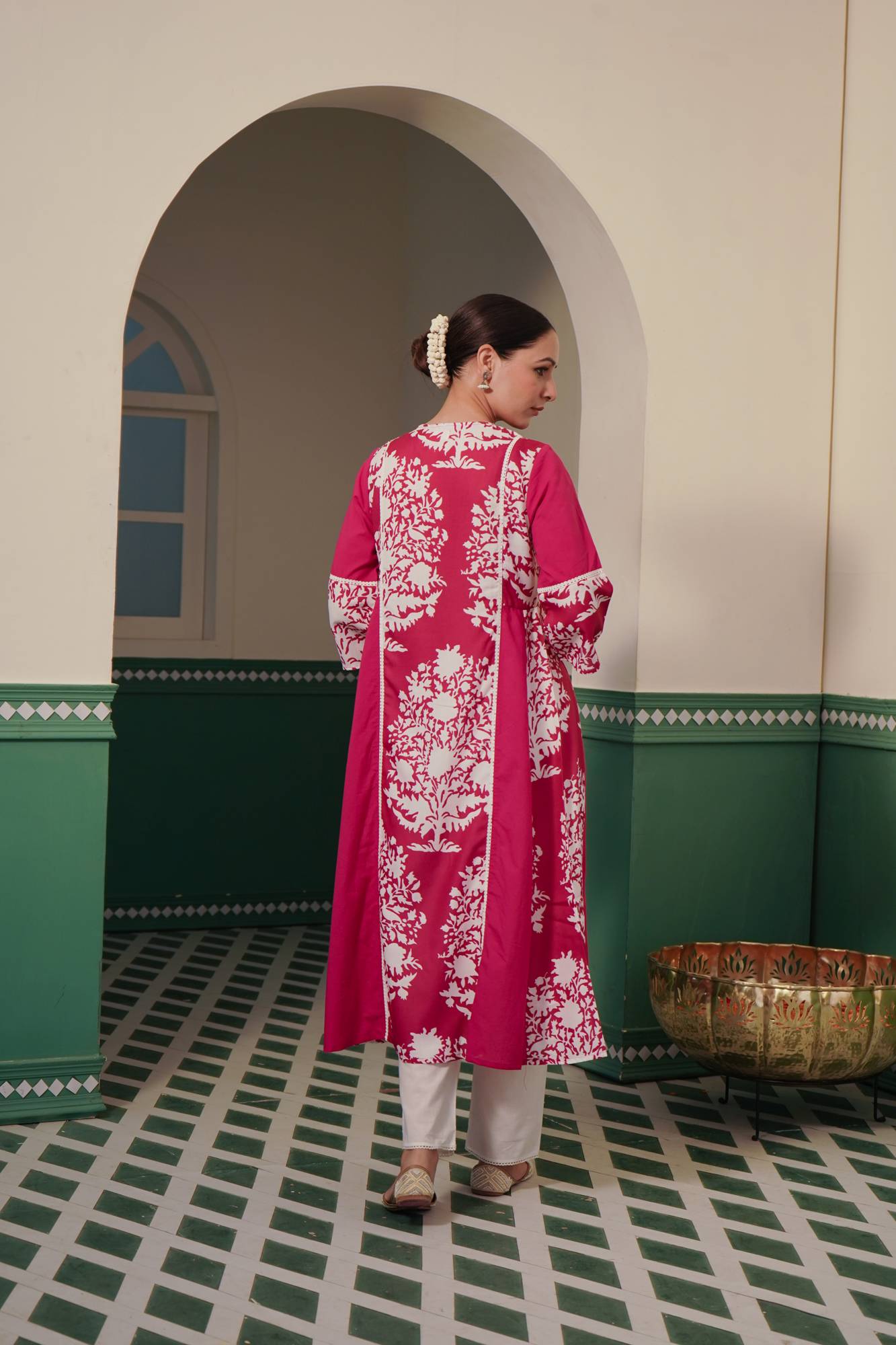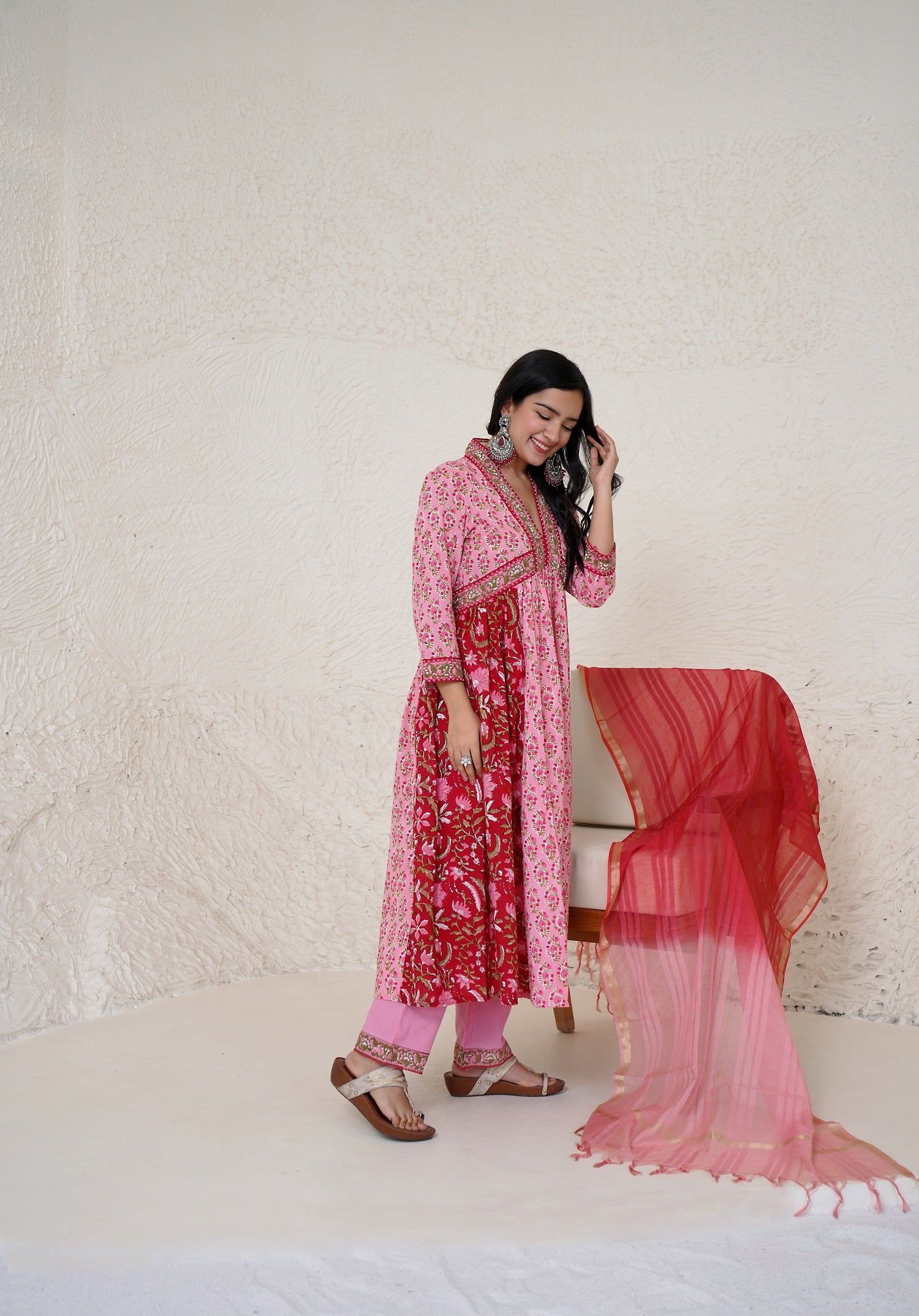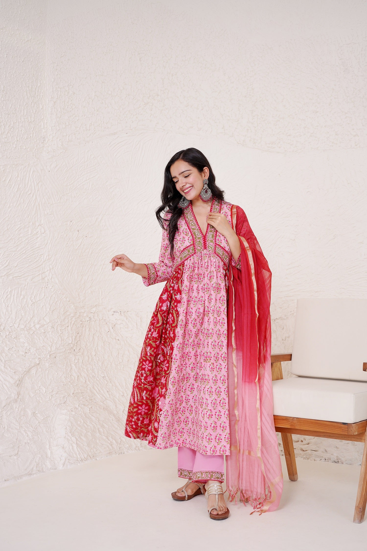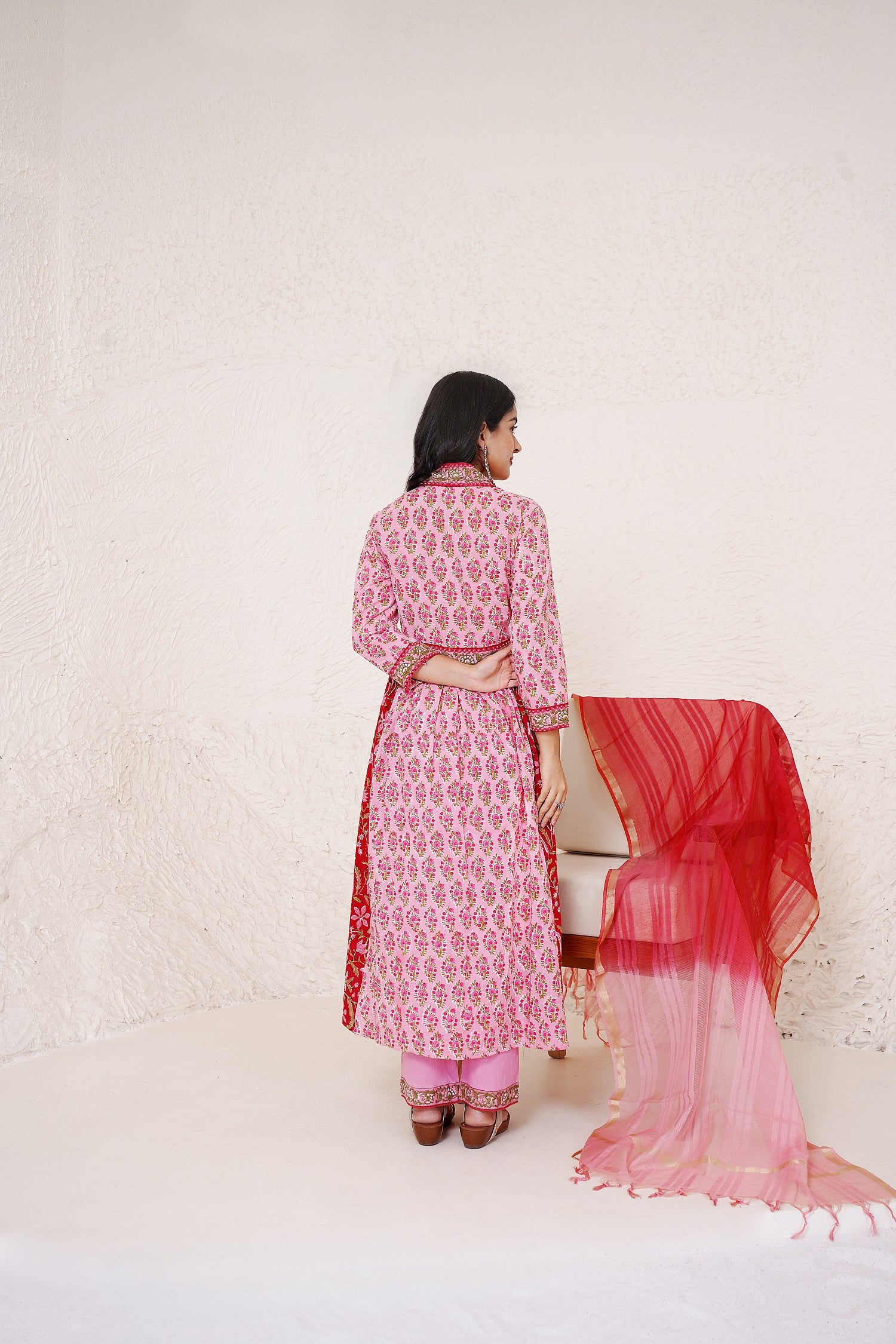 Emerald green cotton satin kurta & chanderi pant with dupatta