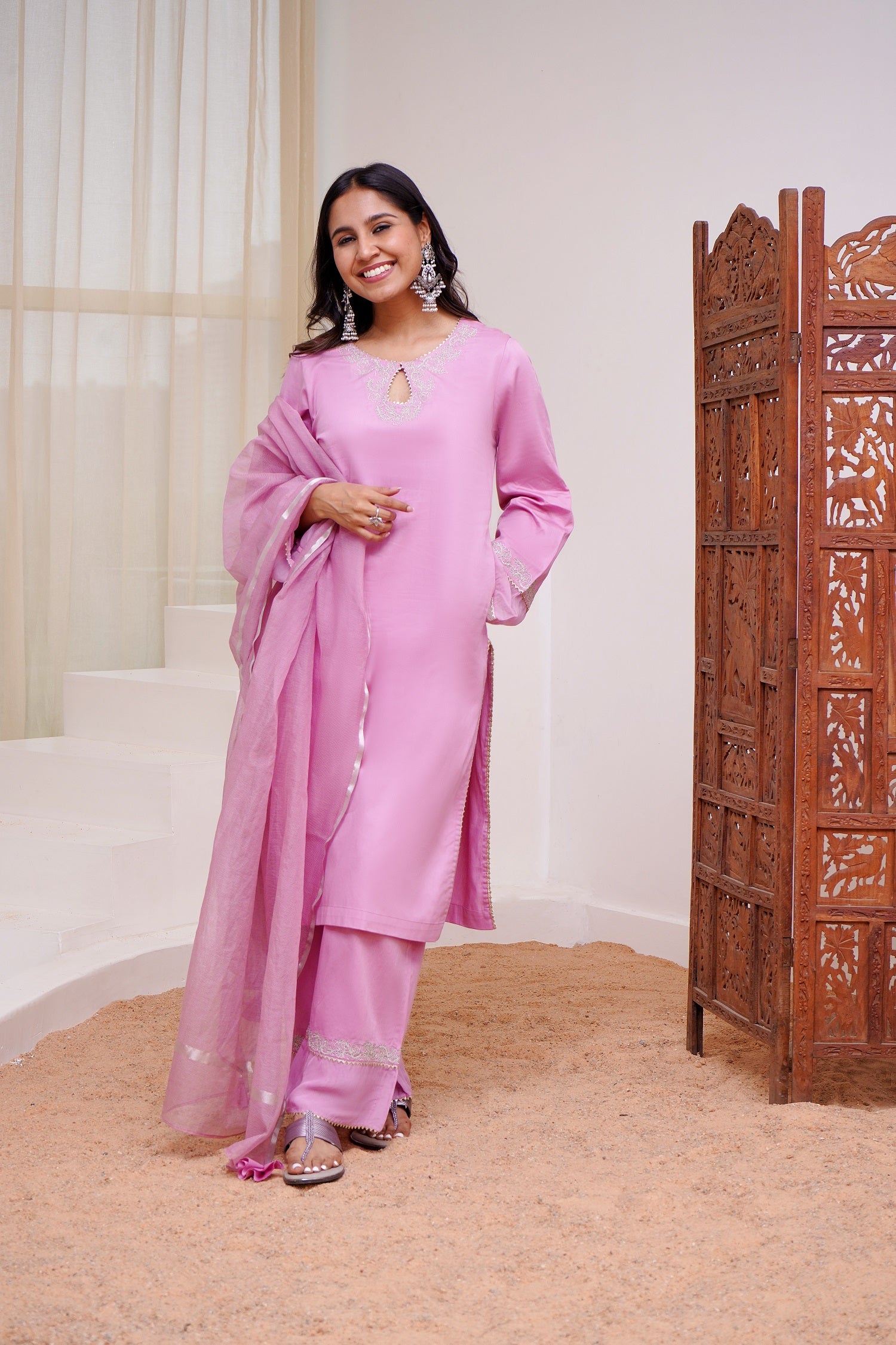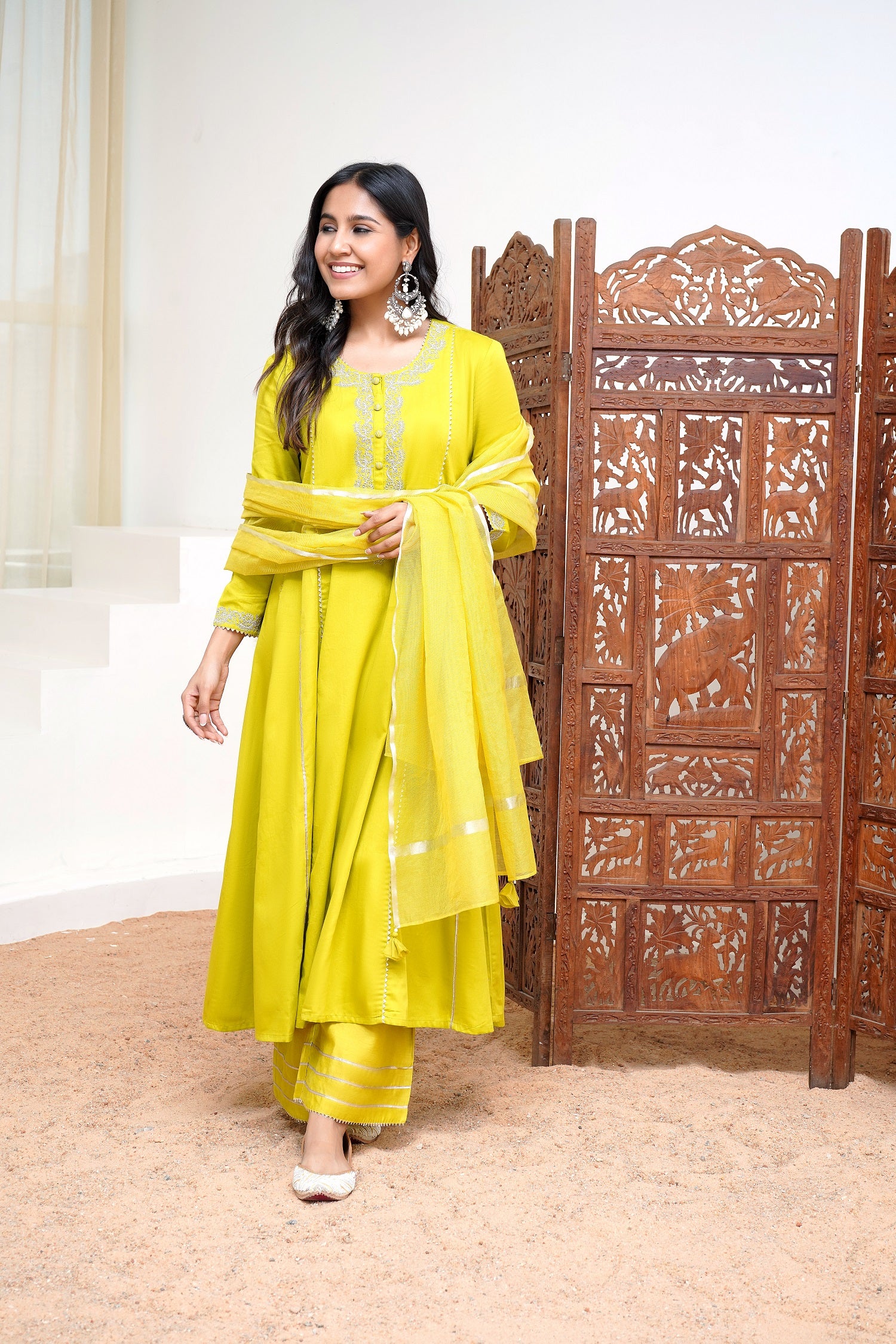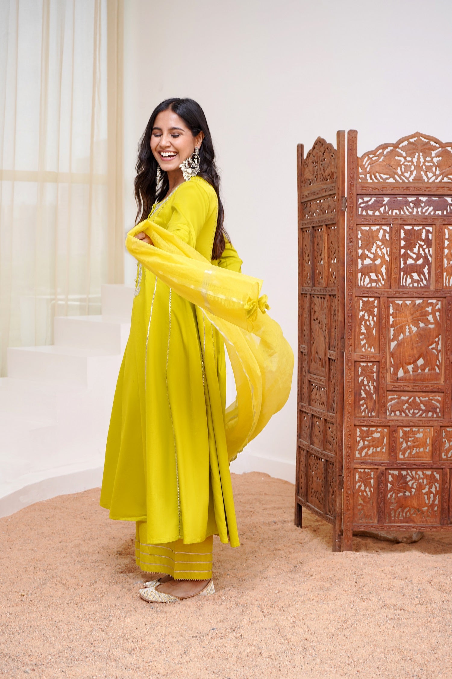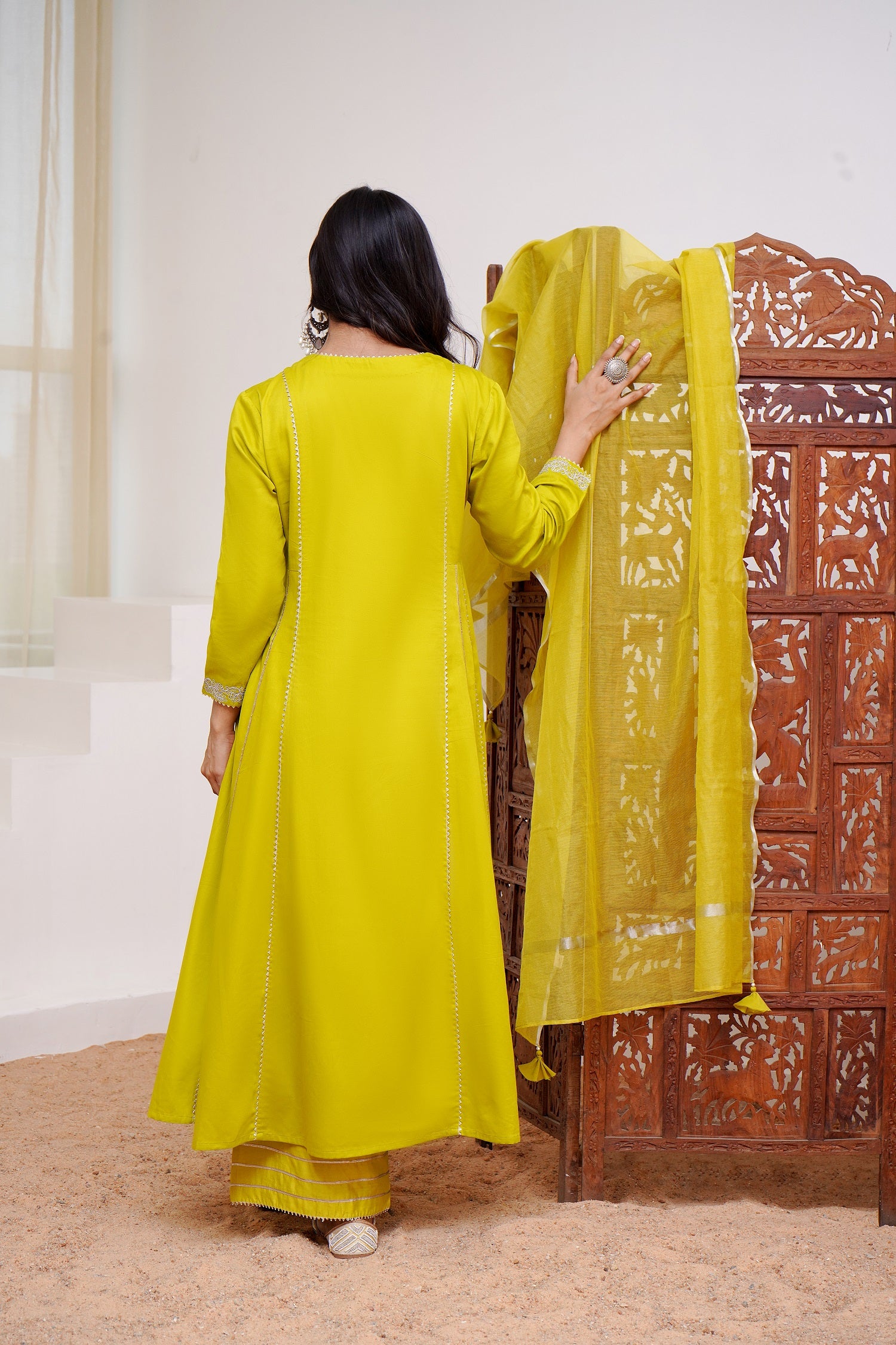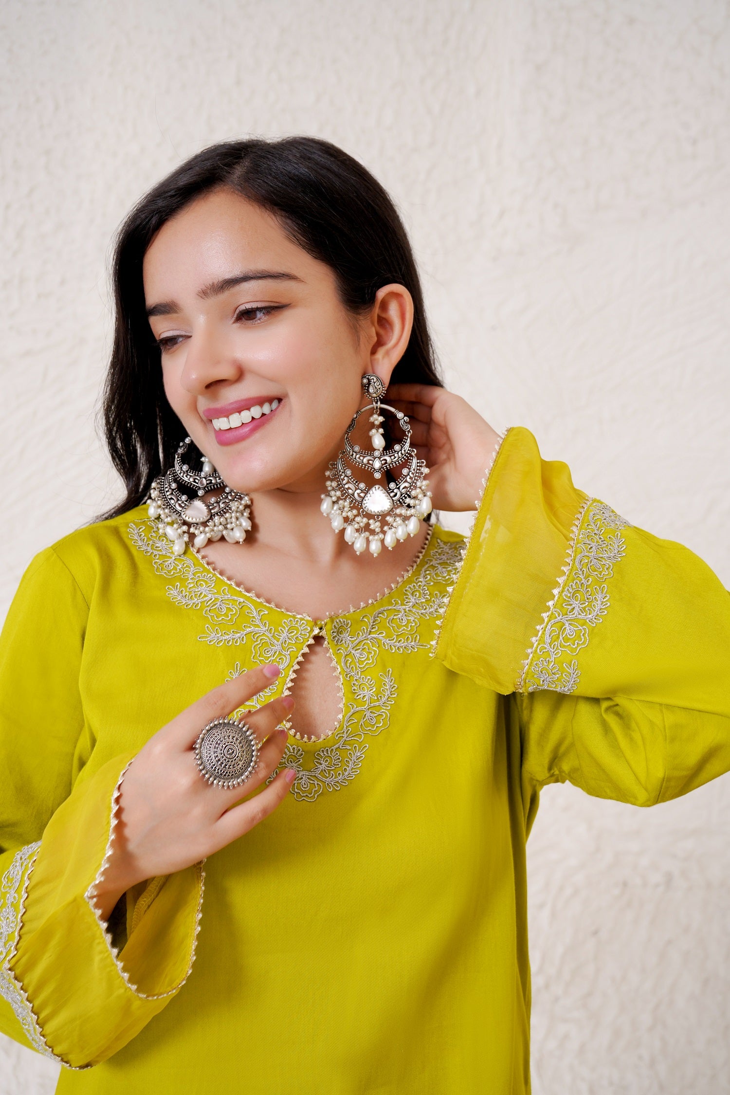 Olive lime cotton satin kurta & chanderi pant with dupatta