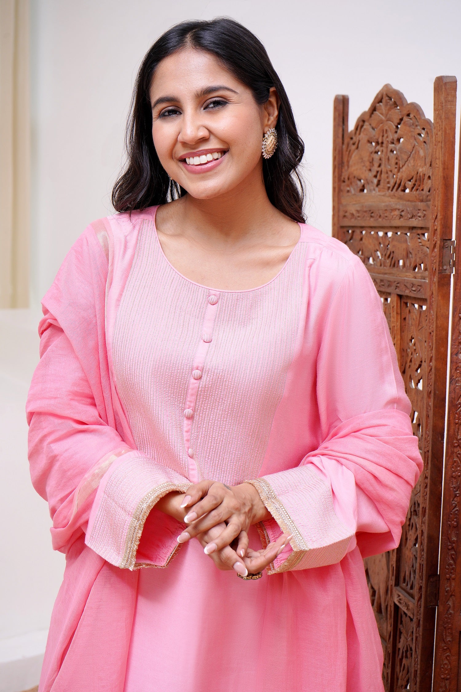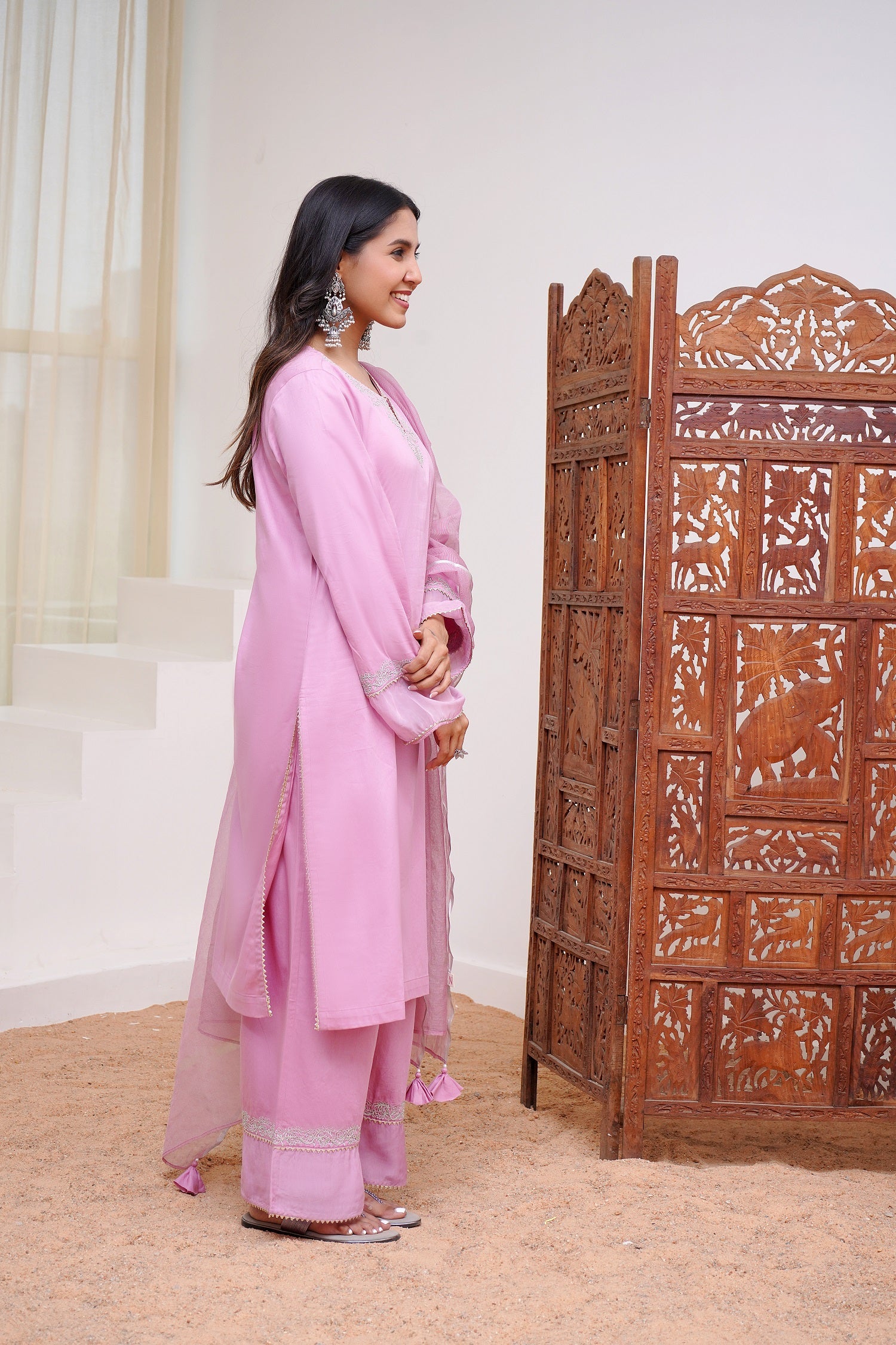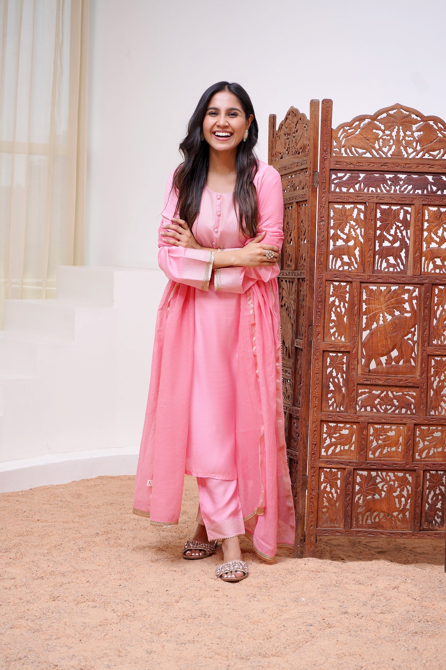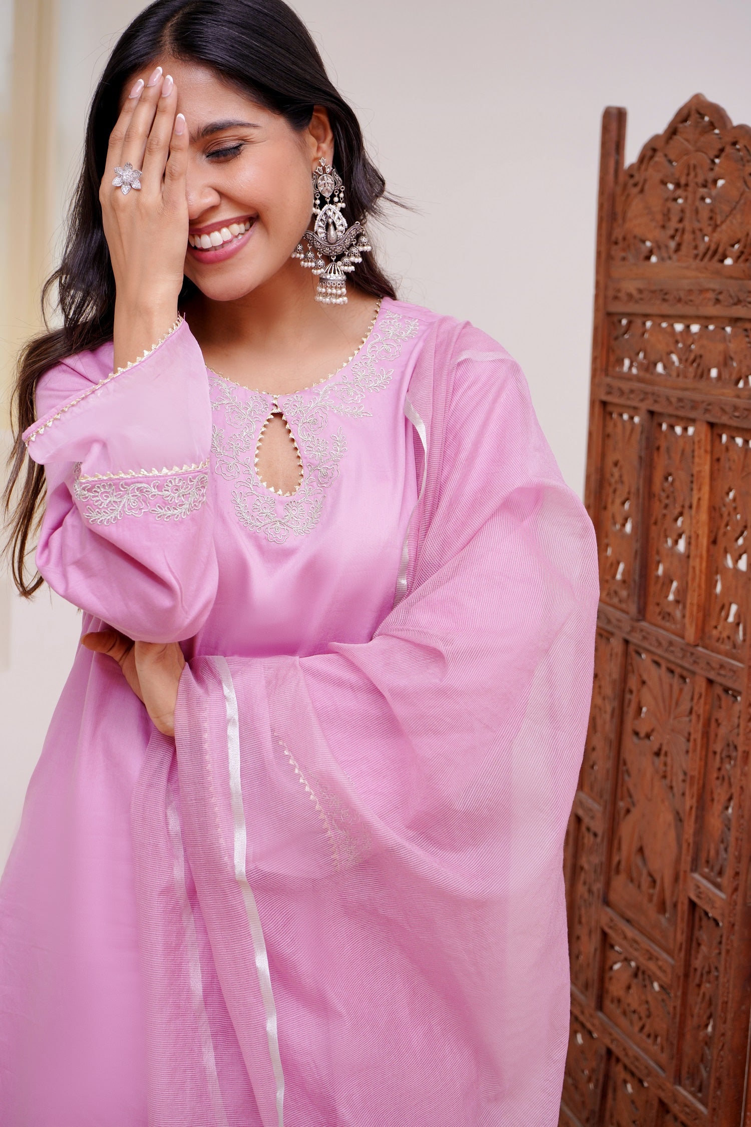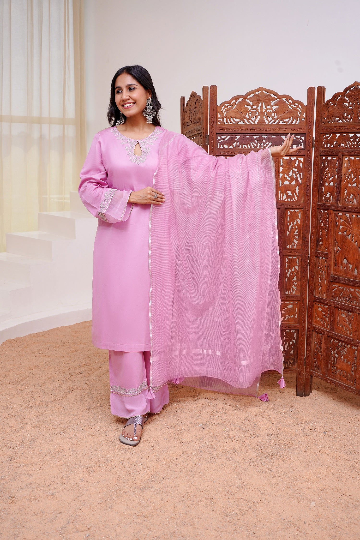 Olive lime cotton satin kurta & chanderi pant with dupatta
