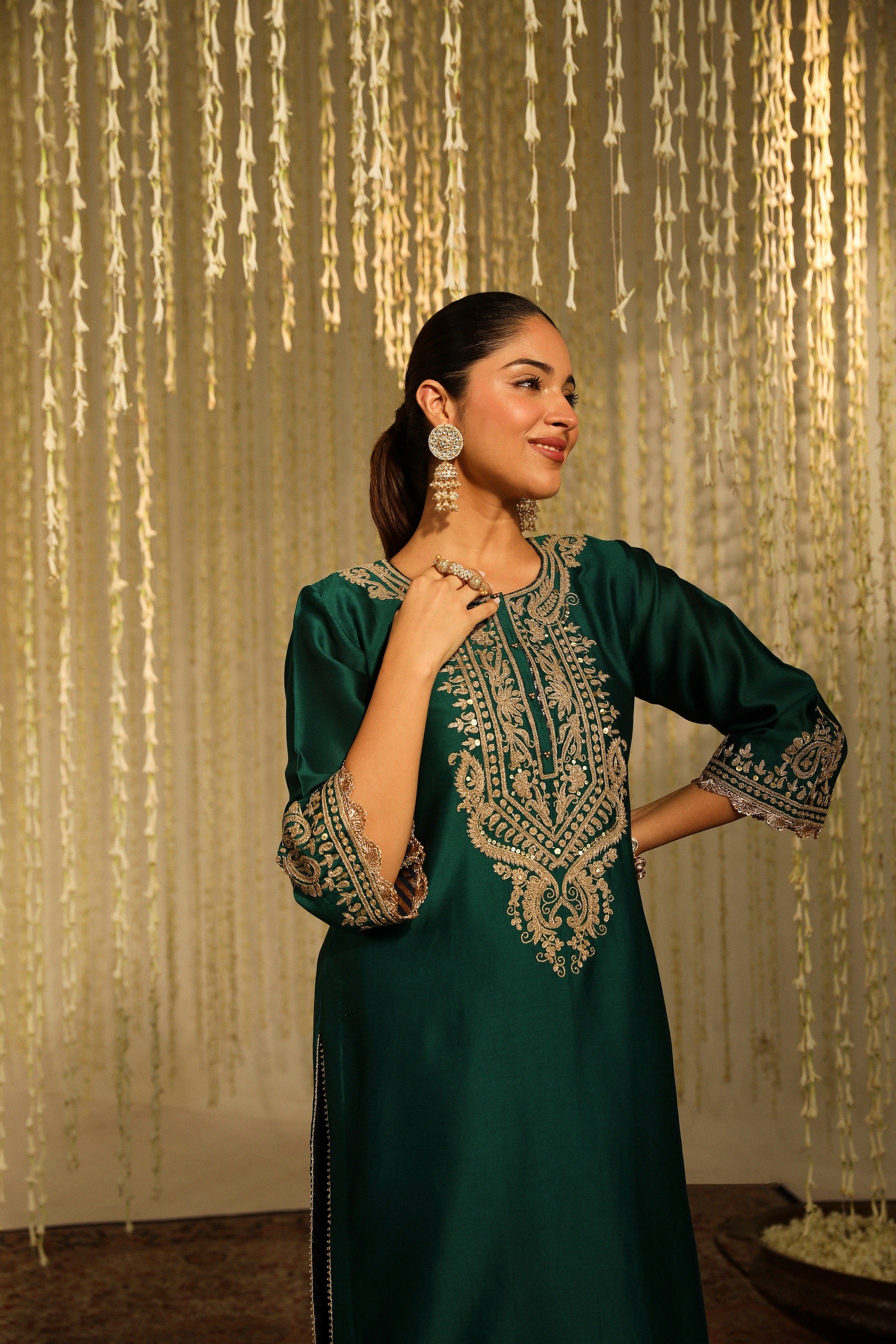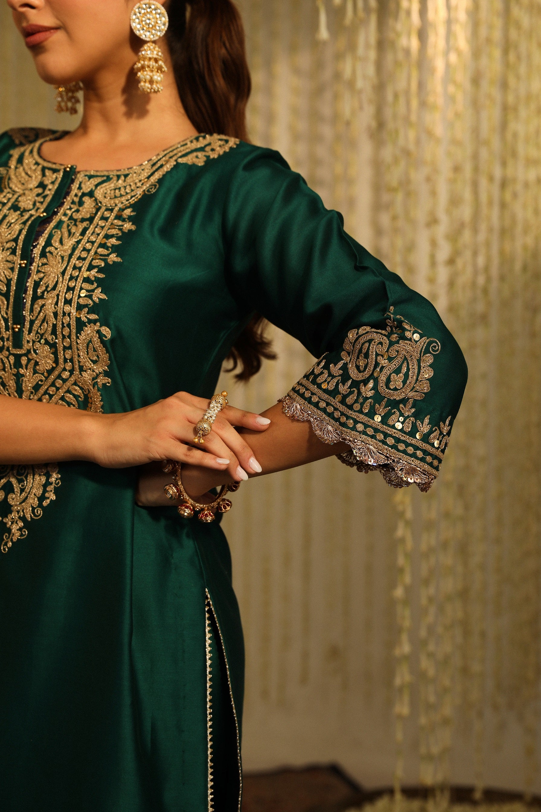 Amayra emerald green silk kurta set