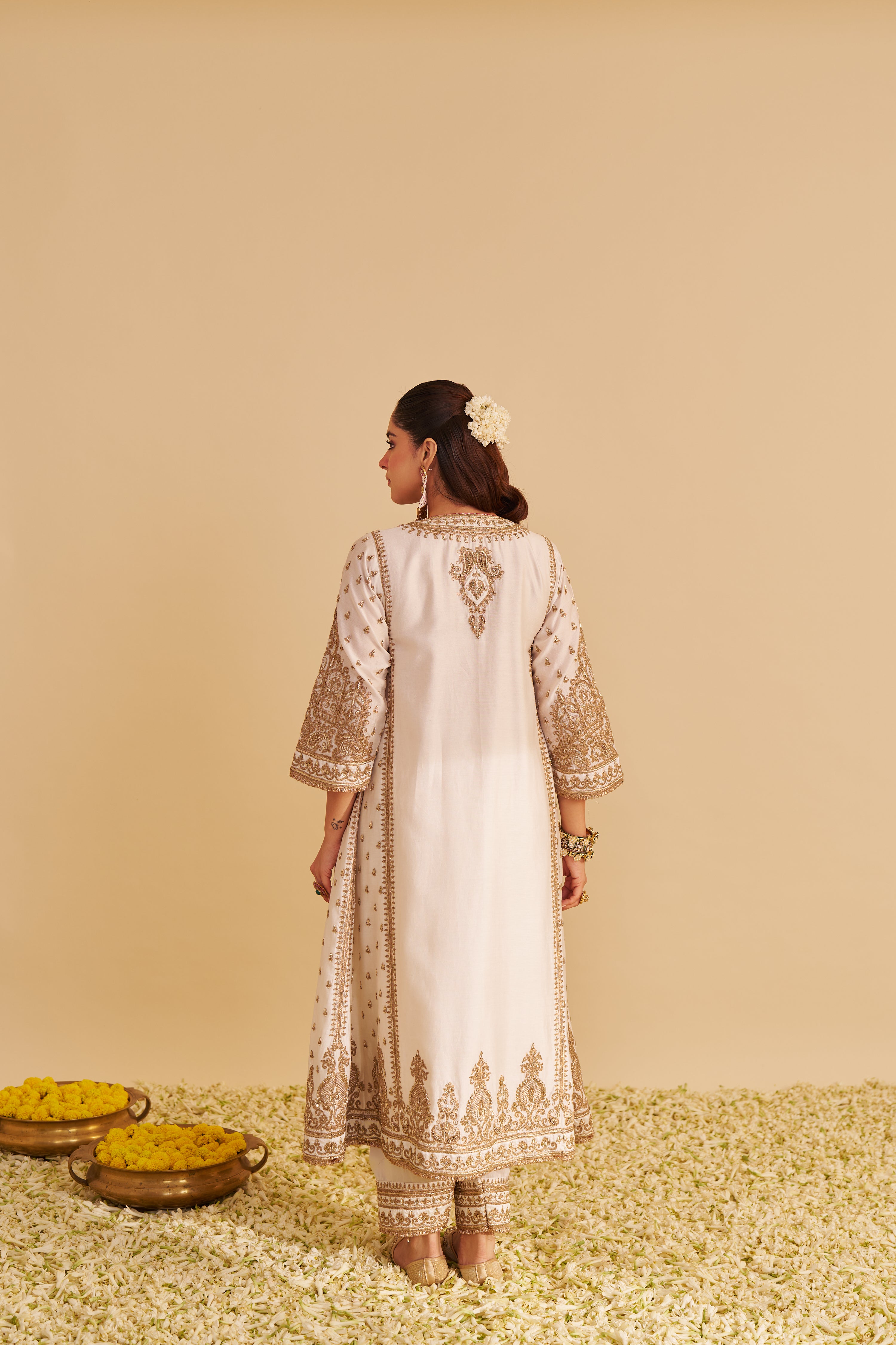 Zoya - dabka zardozi embroidered rich banarasi kalidaar daisy ivory long chauga set