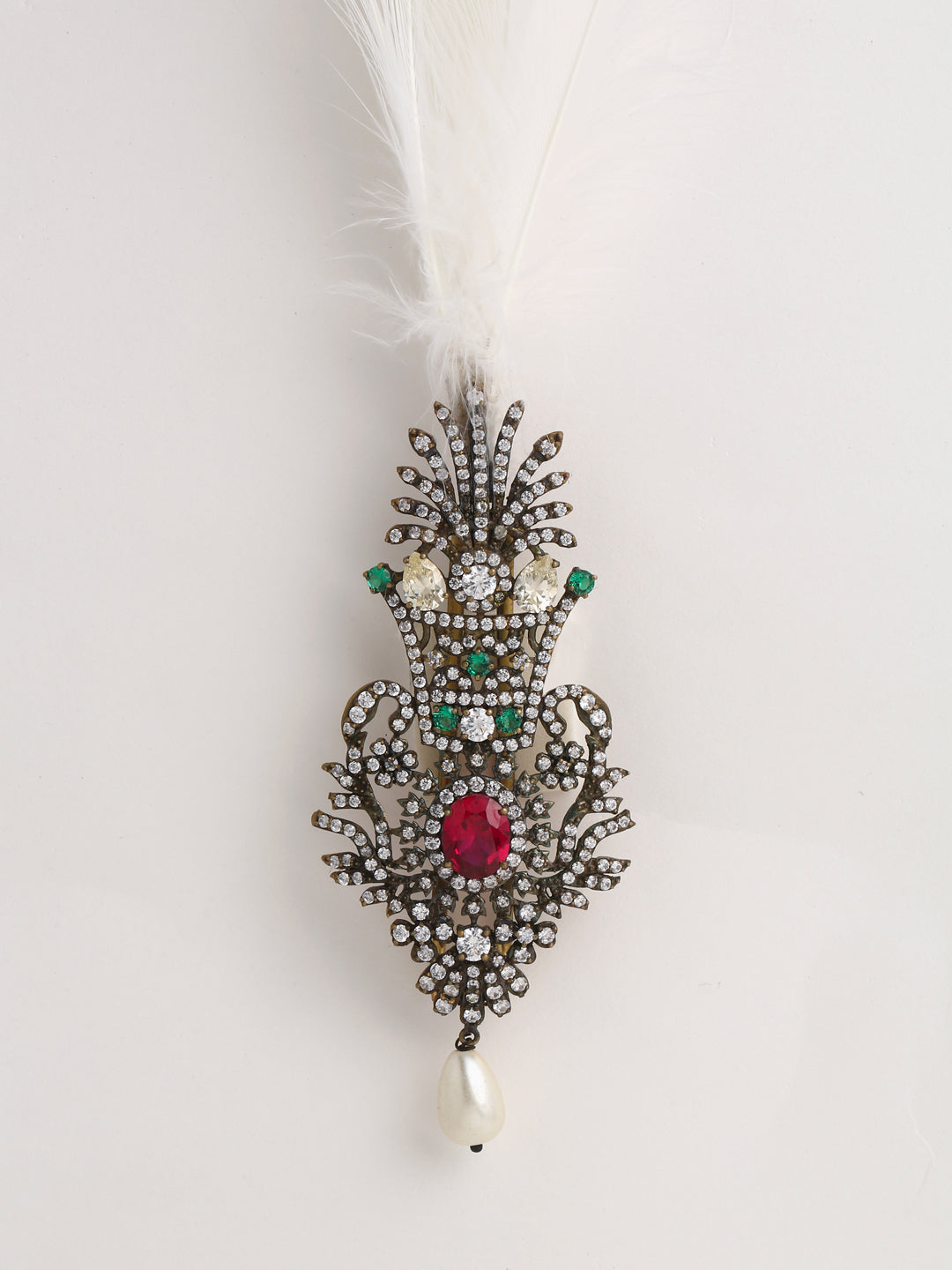 A significant item suited for a king: the Antique Silver-Toned Stone Studded Maharaja Kalangi. This magnificent kalangi adds a touch of majesty to any attire with its silver-tone finish and brilliant stones. It is a classic item that will spruce up any conventional outfit, making it ideal for weddings and celebrations.