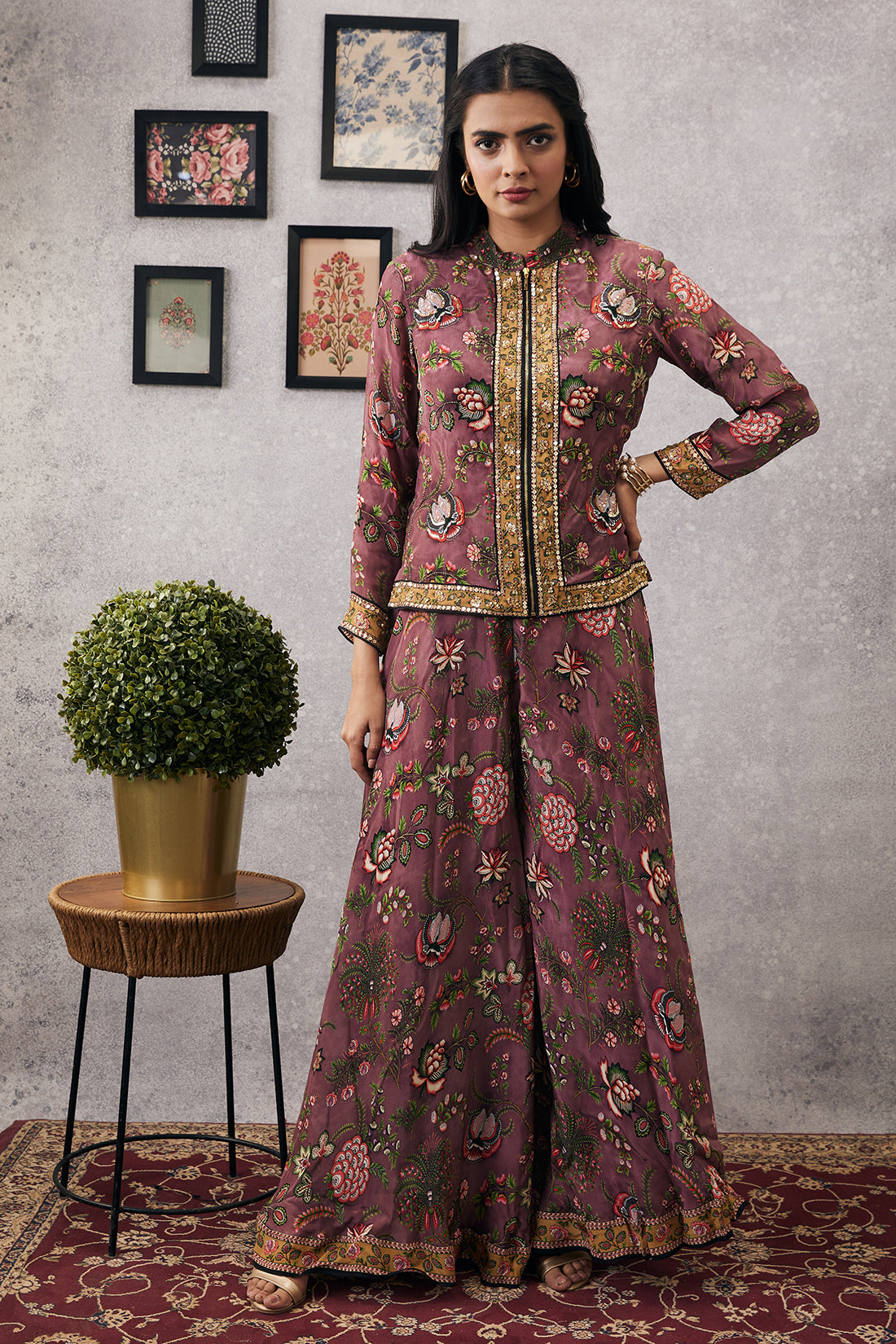 Elegant And Empowering, The Mehr Embroidered Jacket With Flared Pants Set In A Soft Pink Hue Is A Statement In Contemporary Tradition. Crafted From Rich Malaysian Silk And Flowing Crepe, The Ensemble Features A Finely Detailed Embroidered Jacket Paired With High-Waisted Flared Pants For A Flattering Silhouette. Ideal For Festive Celebrations, Intimate Gatherings, Or Formal Occasions, This Set Blends Timeless Craftsmanship With Modern Sophistication.