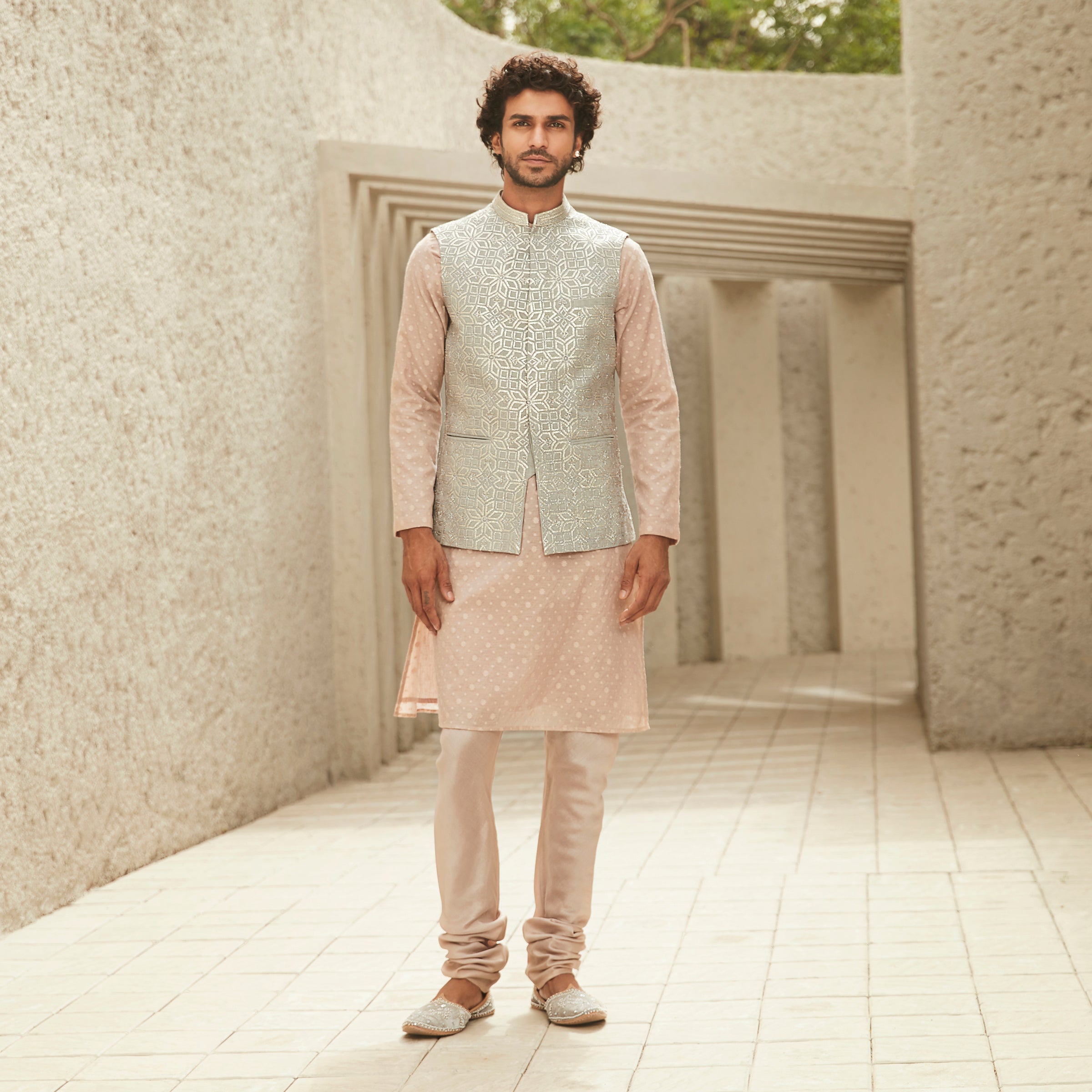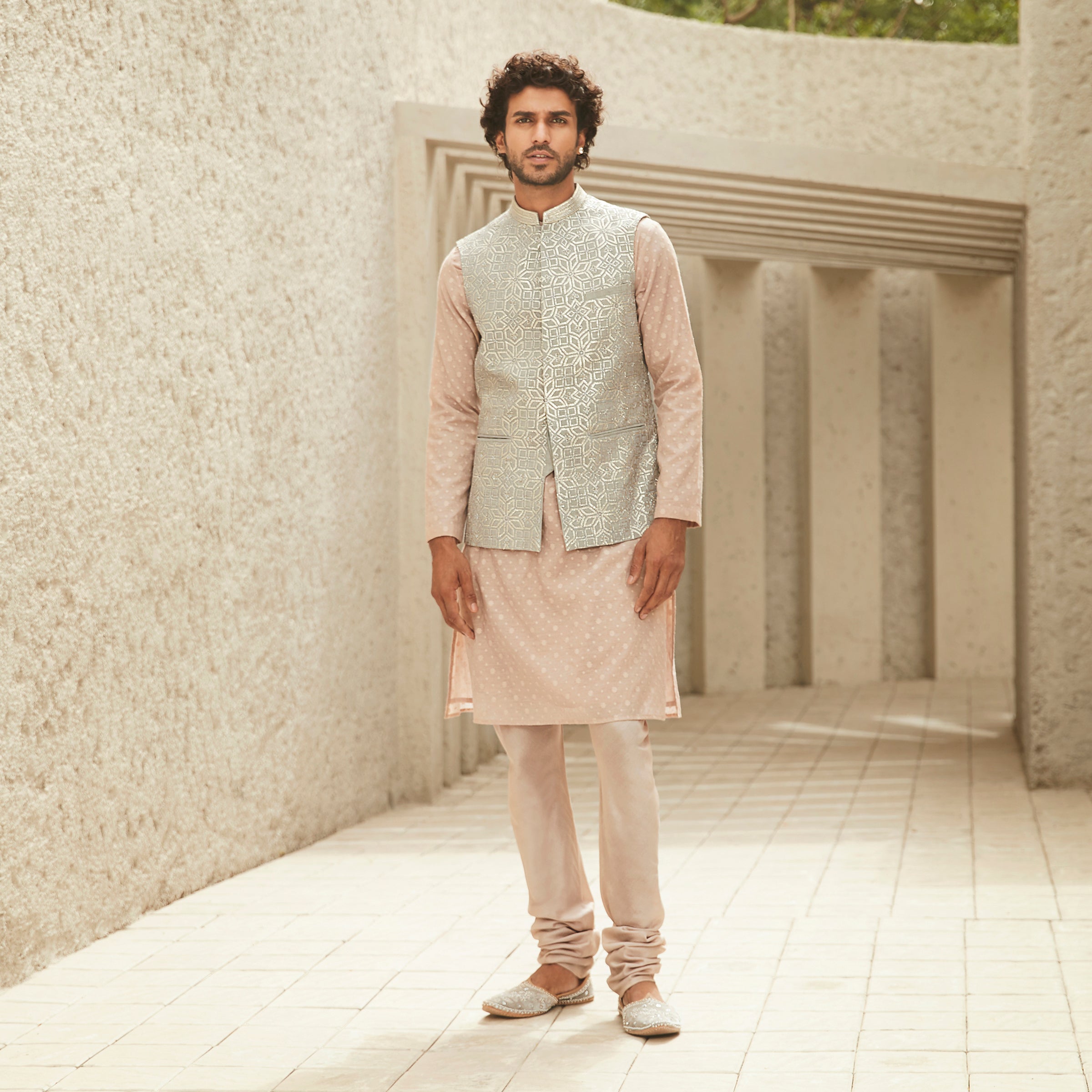 Minimalistic and subtly statement-making, this peach kurta set is meticulously crafted in pure chanderi fabric, boasts remarkable gota work, and has a soft sheen with an ageless appeal. Pair it with one of our embroidered jackets from Heritage Pret '23 for maximum impact.