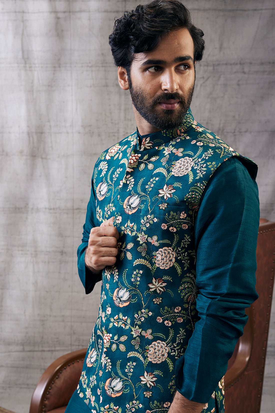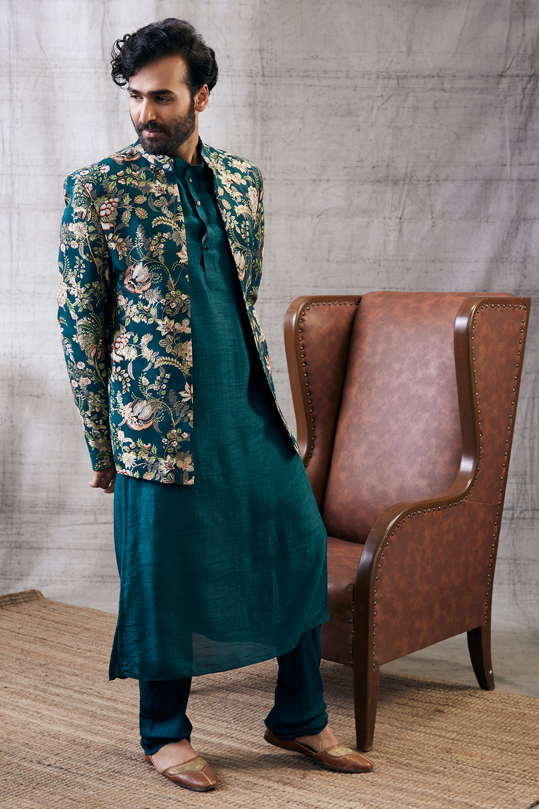 Zahra printed bandhgala set