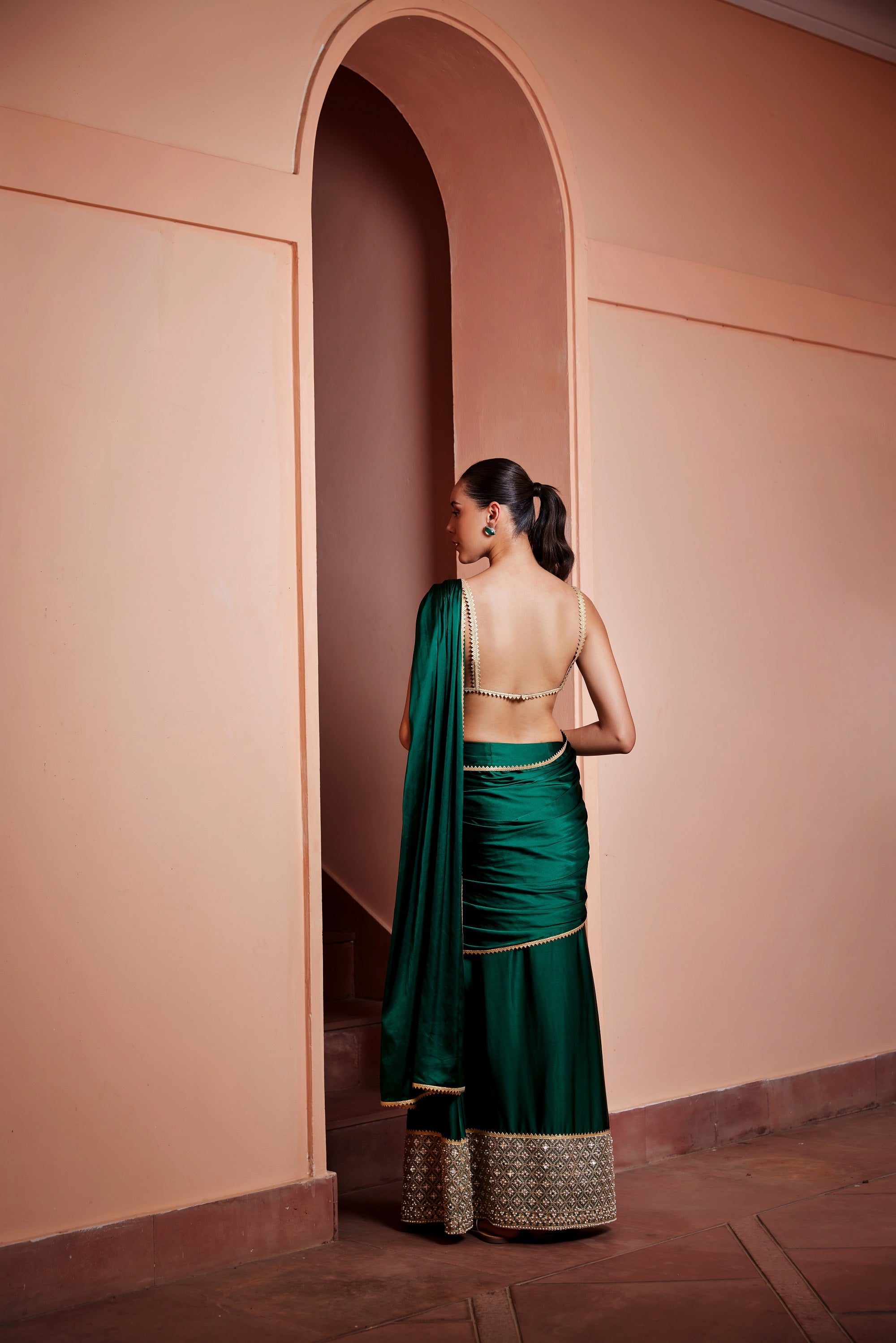 Chashni emerald green aira pre- draped sari
