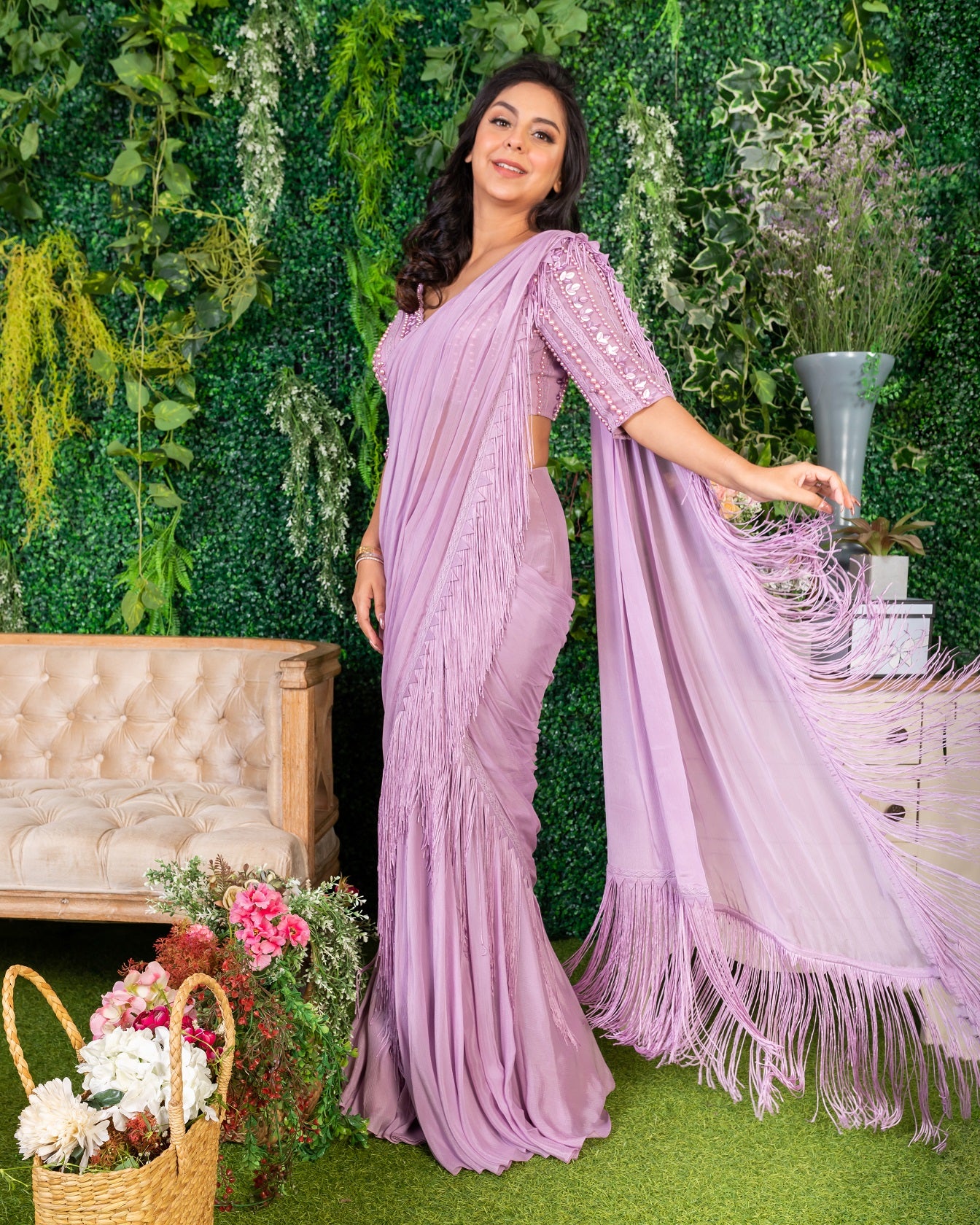 Grape fringe sari