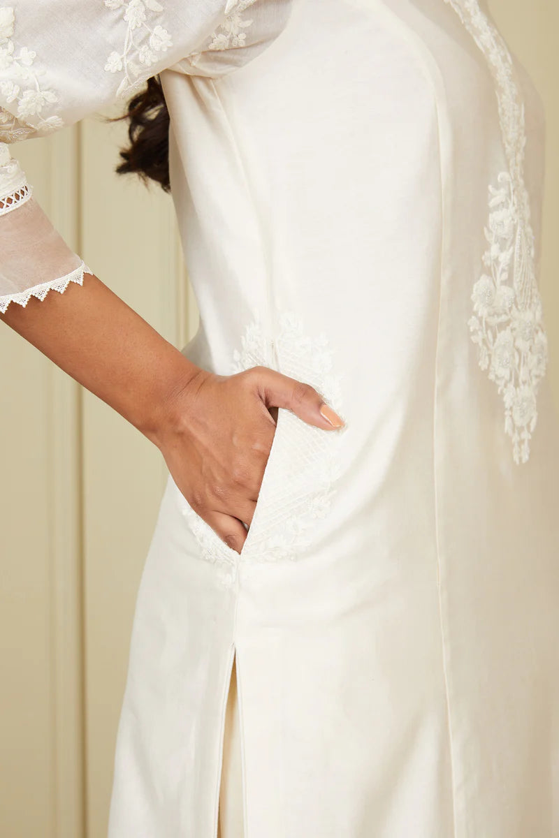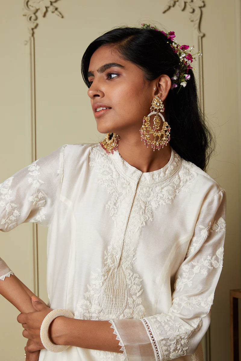 Banafsha daisy ivory long kurta with palazzo