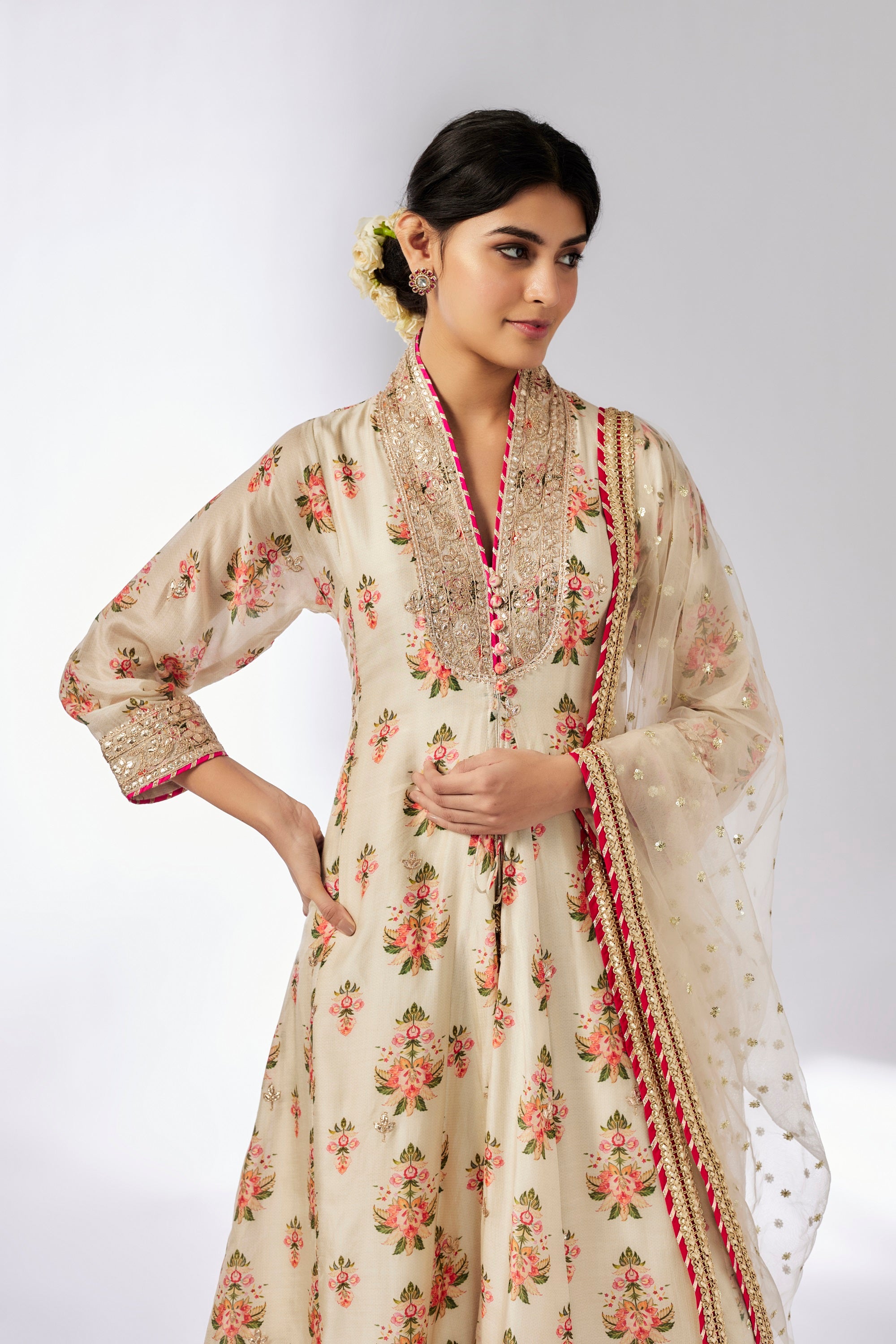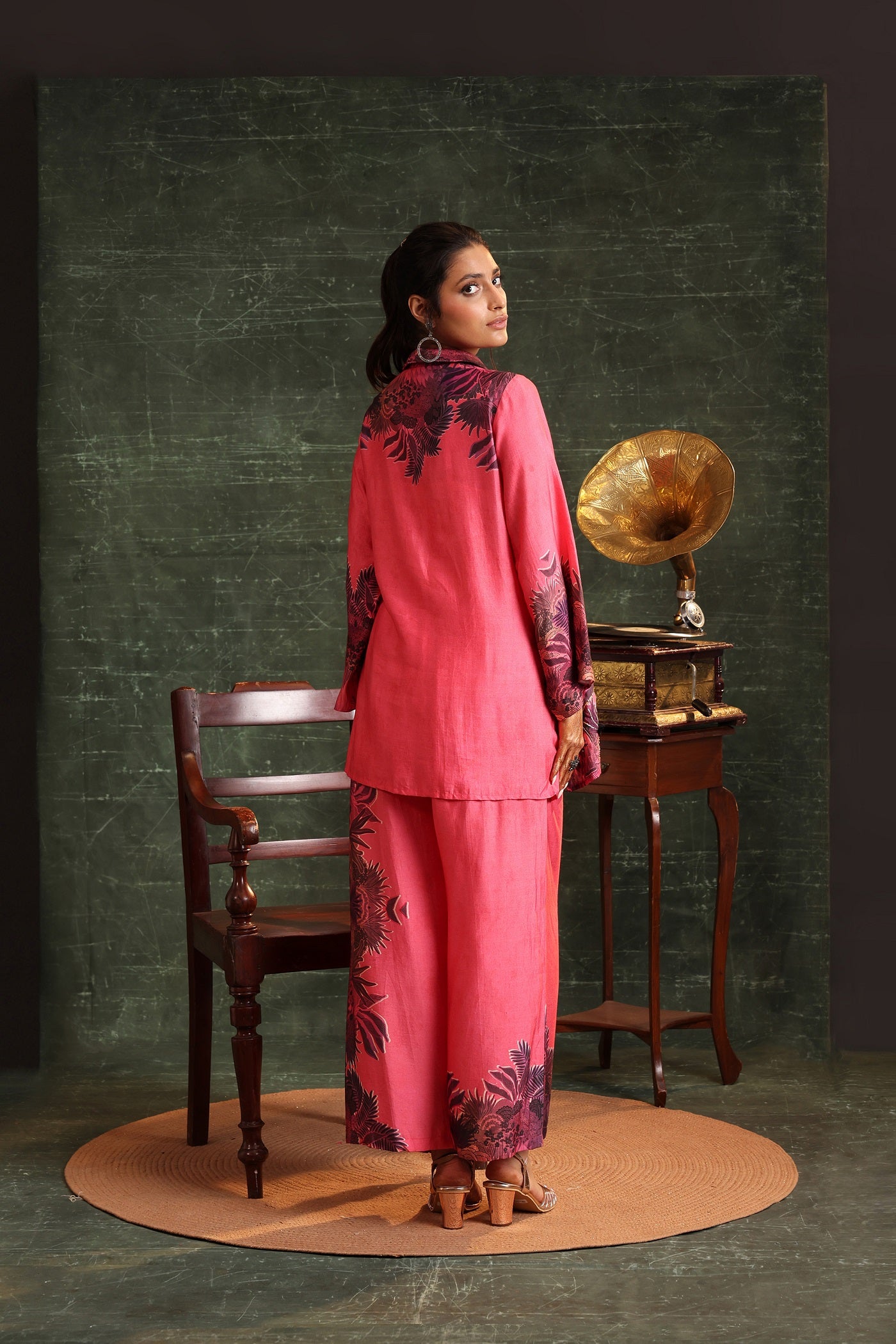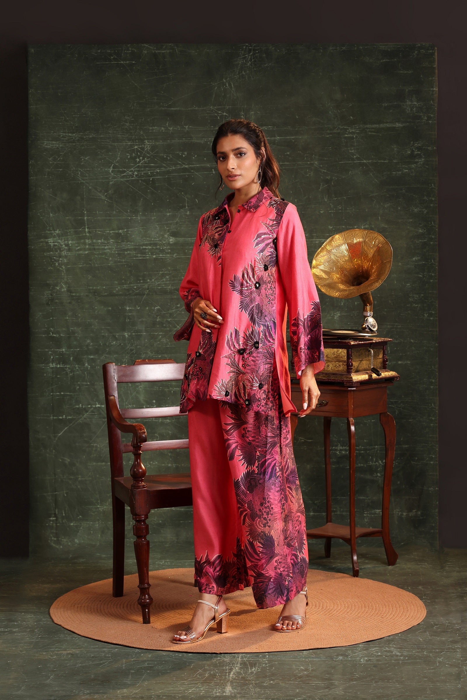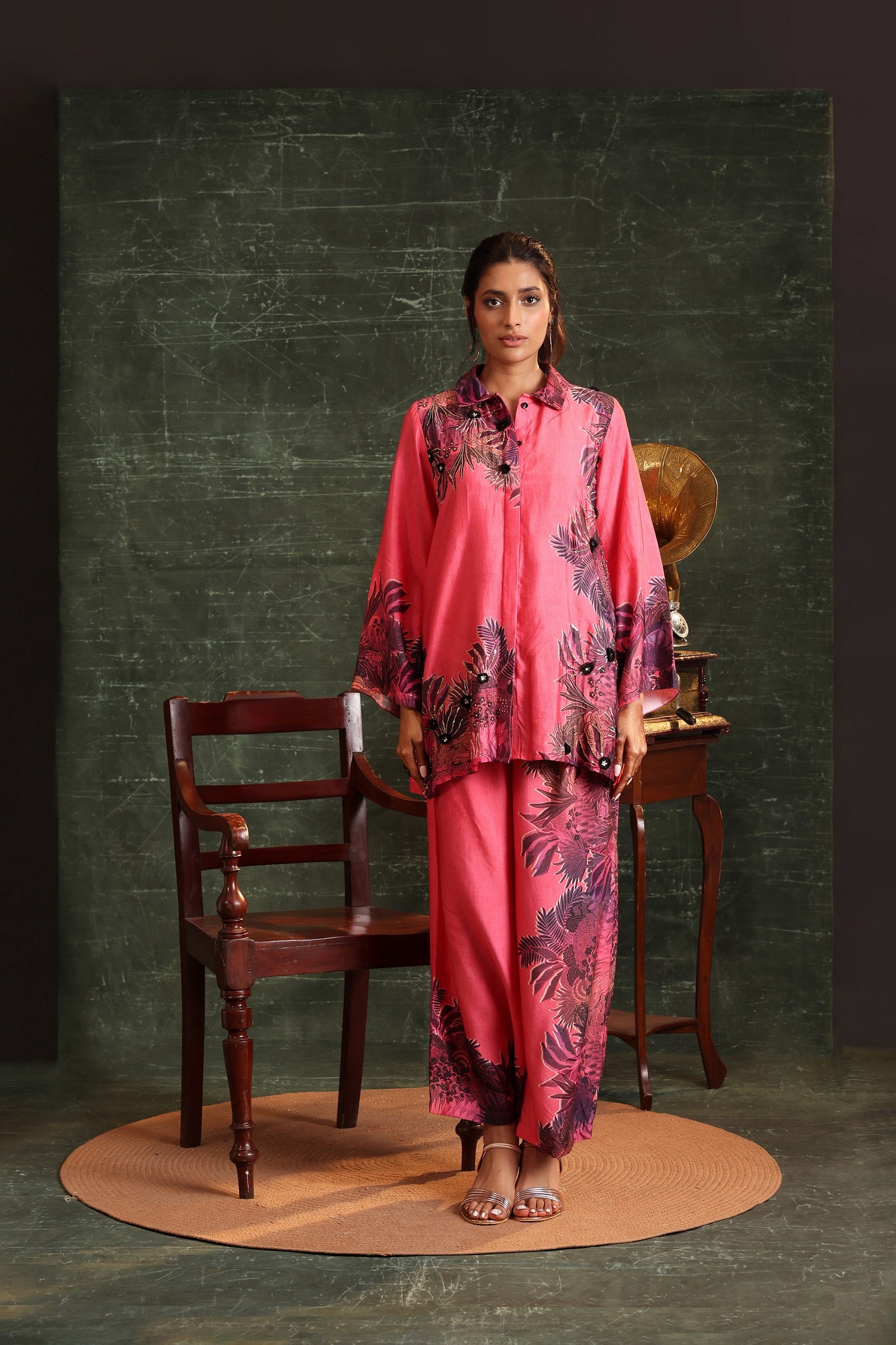 Short shirt and pallazo pants in tissue with striped banarsi dupatta