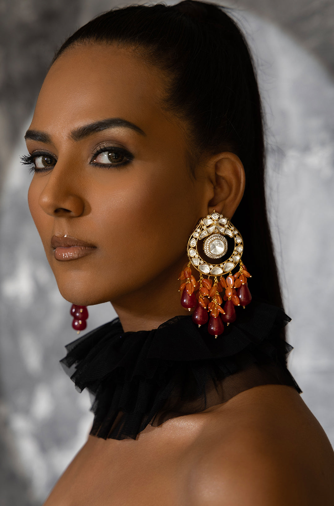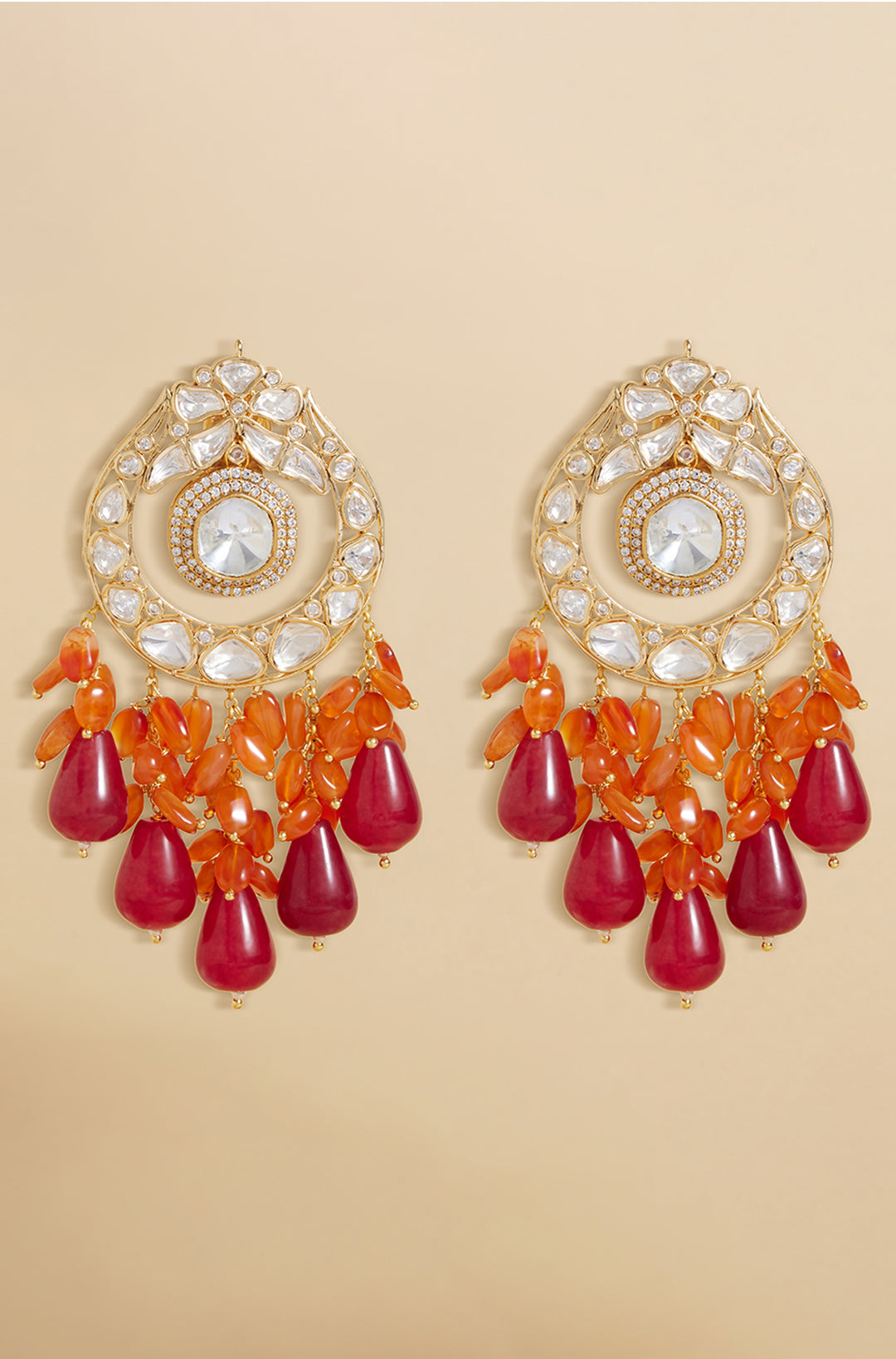 Polki and red stone drop earrings