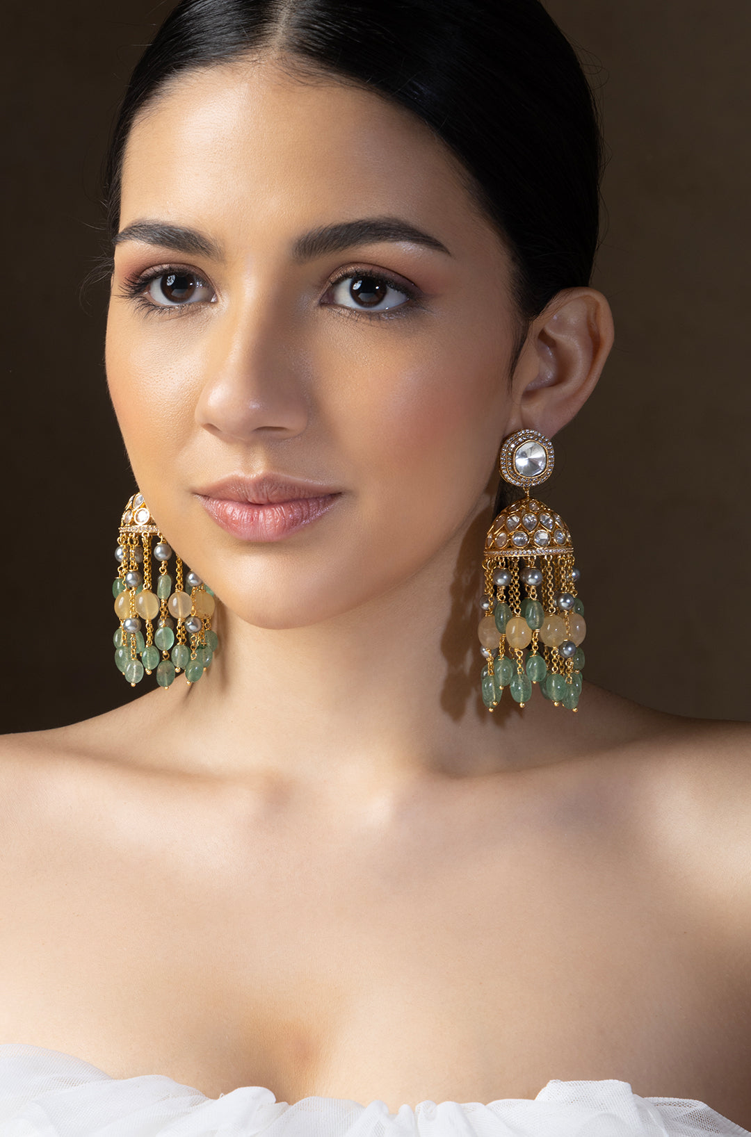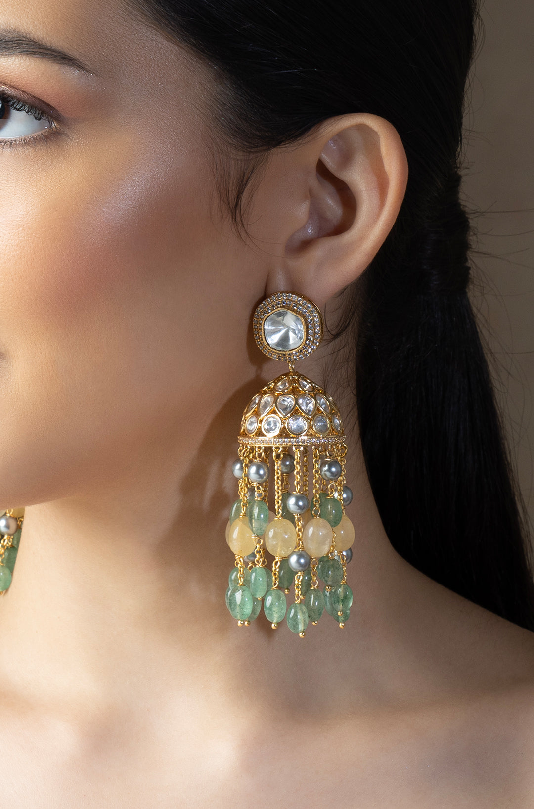Played polki beaded jhumka earrings