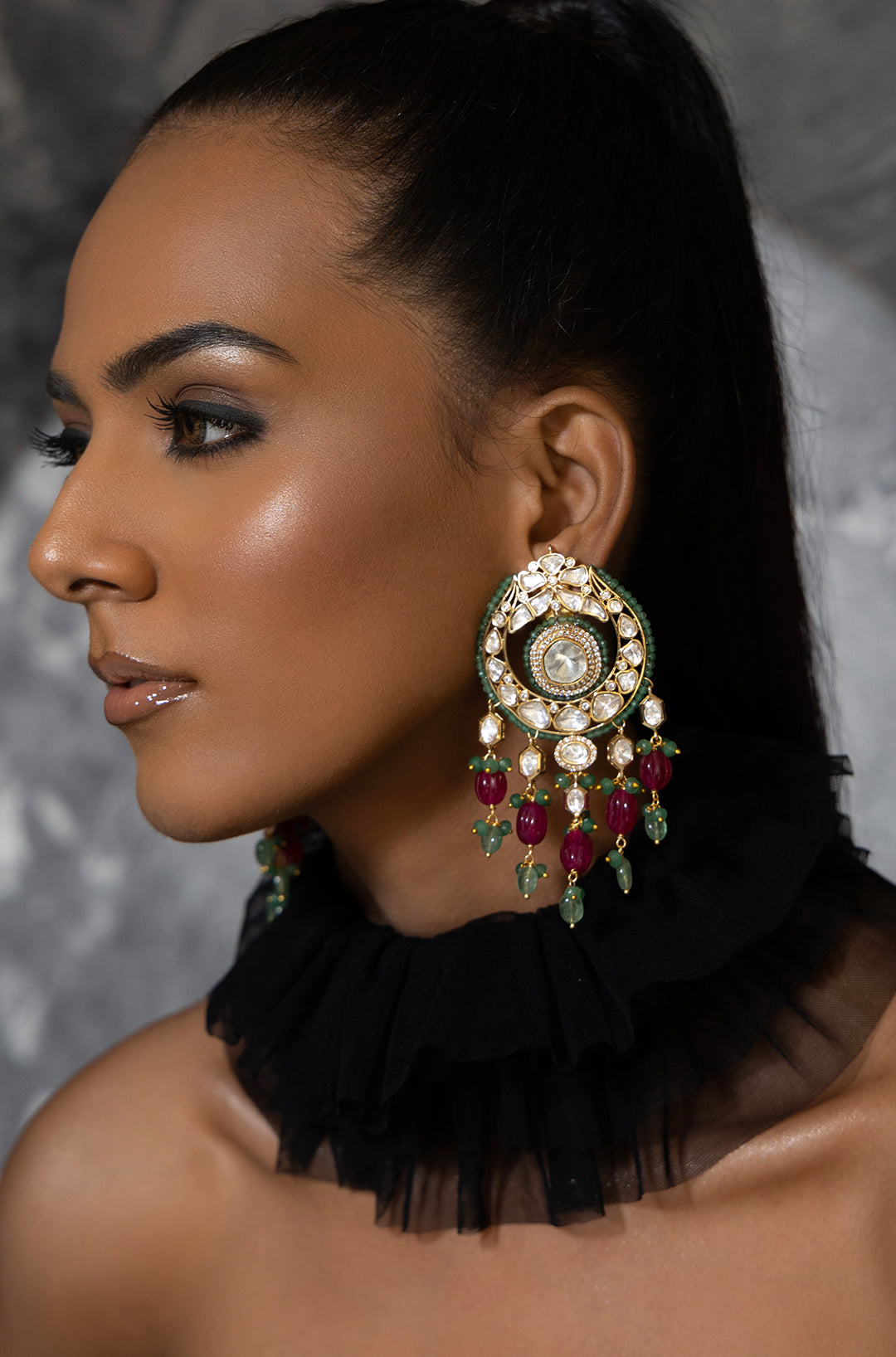 Royal kundan polki chand baali earring
