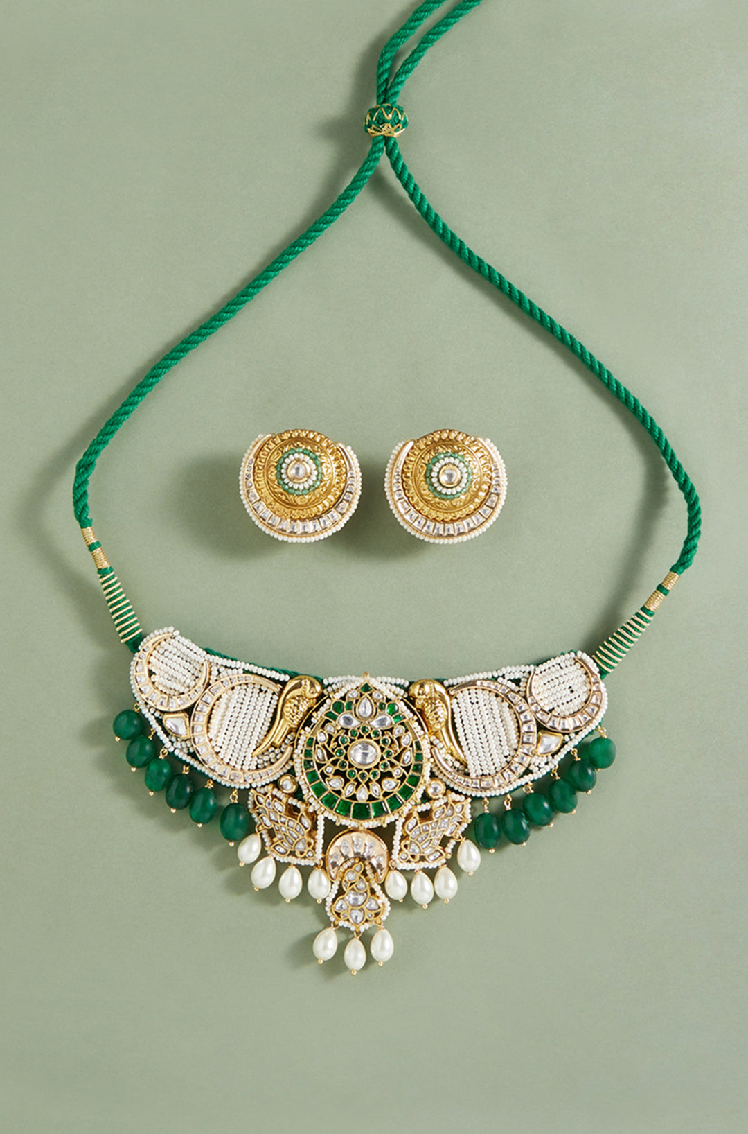 Bridal necklace set with jades & pearl drops