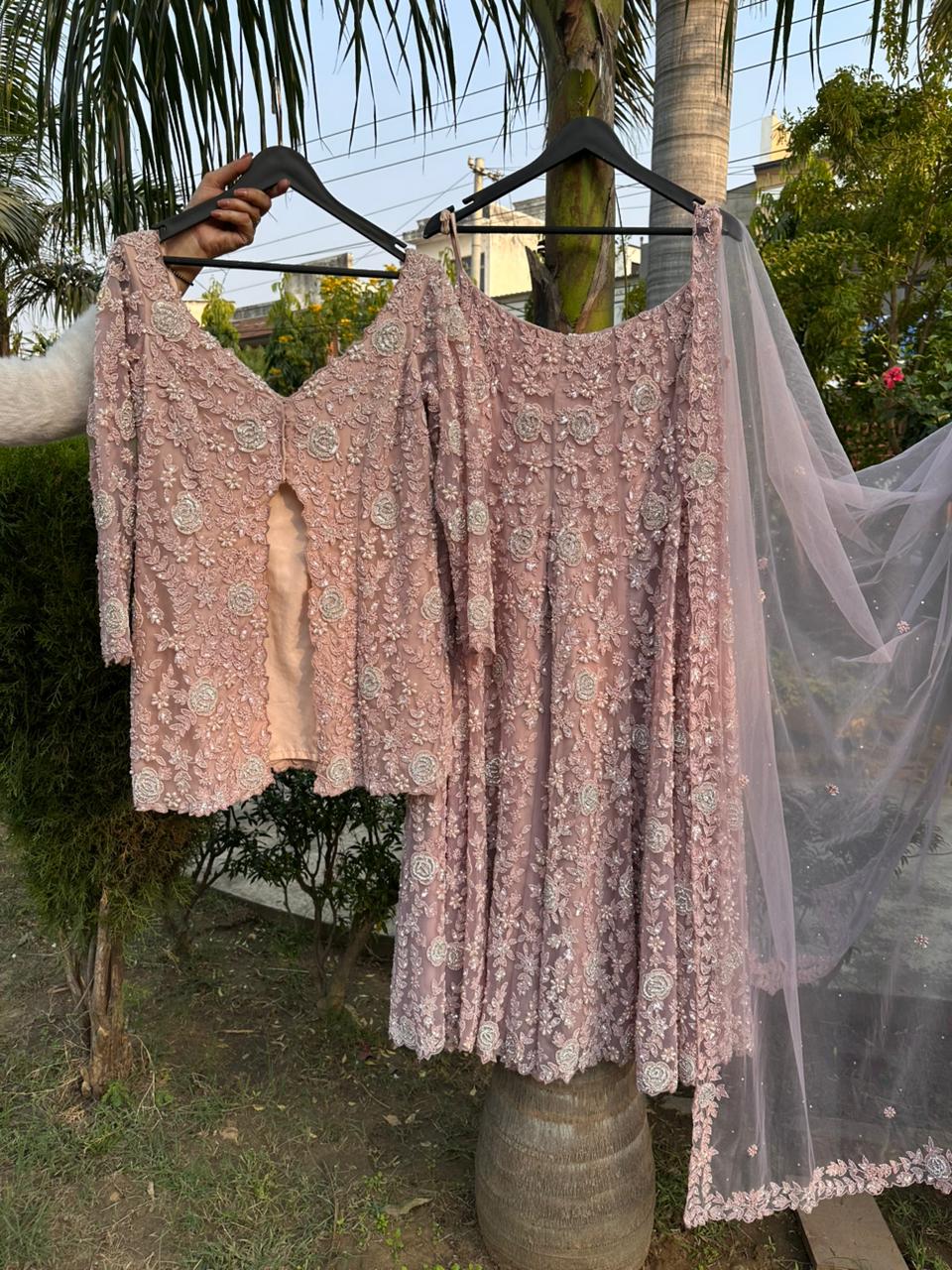 Dusty rose embroidered net suit set