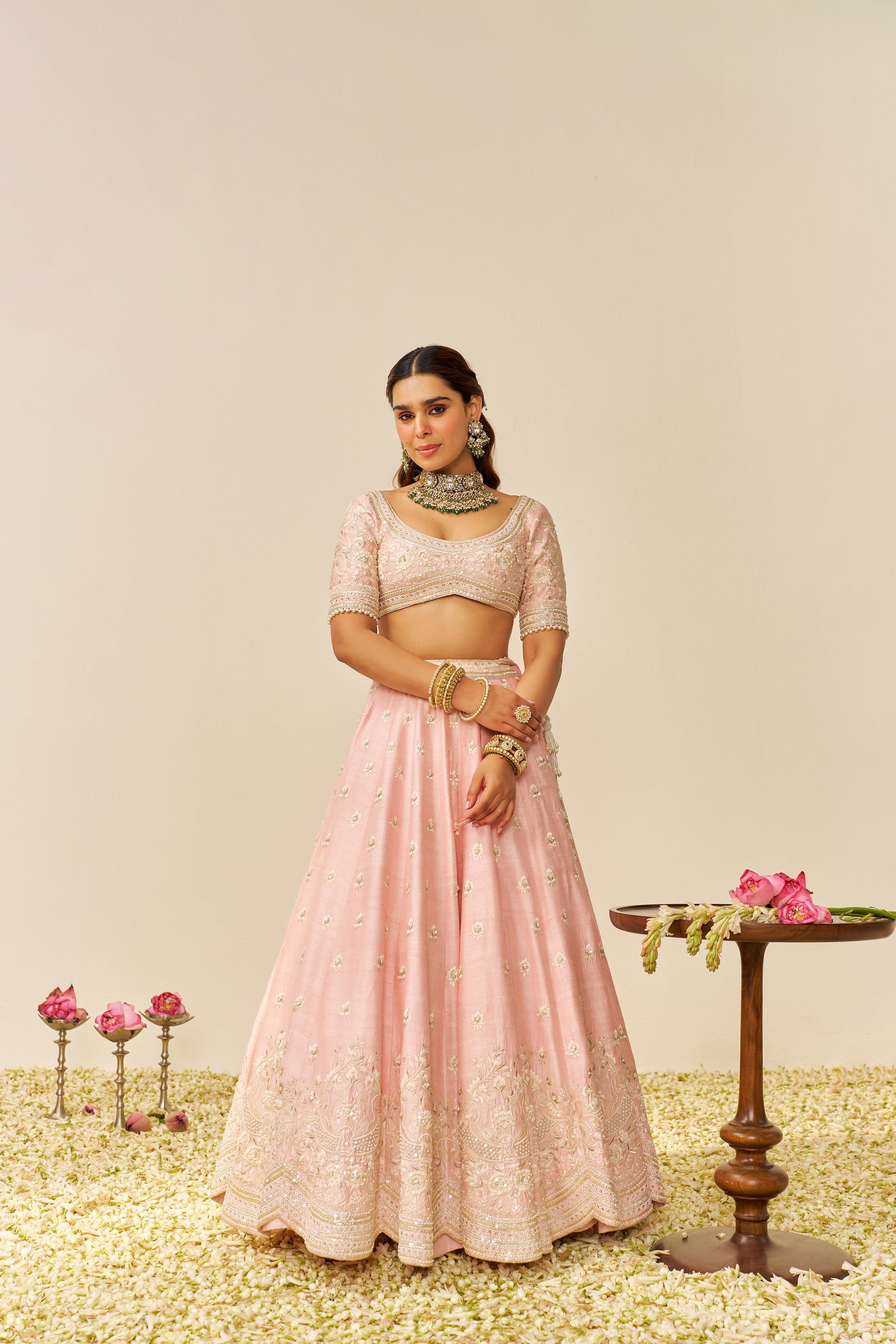The Bahaaar-E-Gul Fida Blush Pink - Lehenga With Blouse And Dupatta Is A Captivating Ensemble, Combining Delicate Blush Pink Tones With Intricate Detailing To Create A Perfect Balance Of Elegance And Allure For Any Special Occasion.