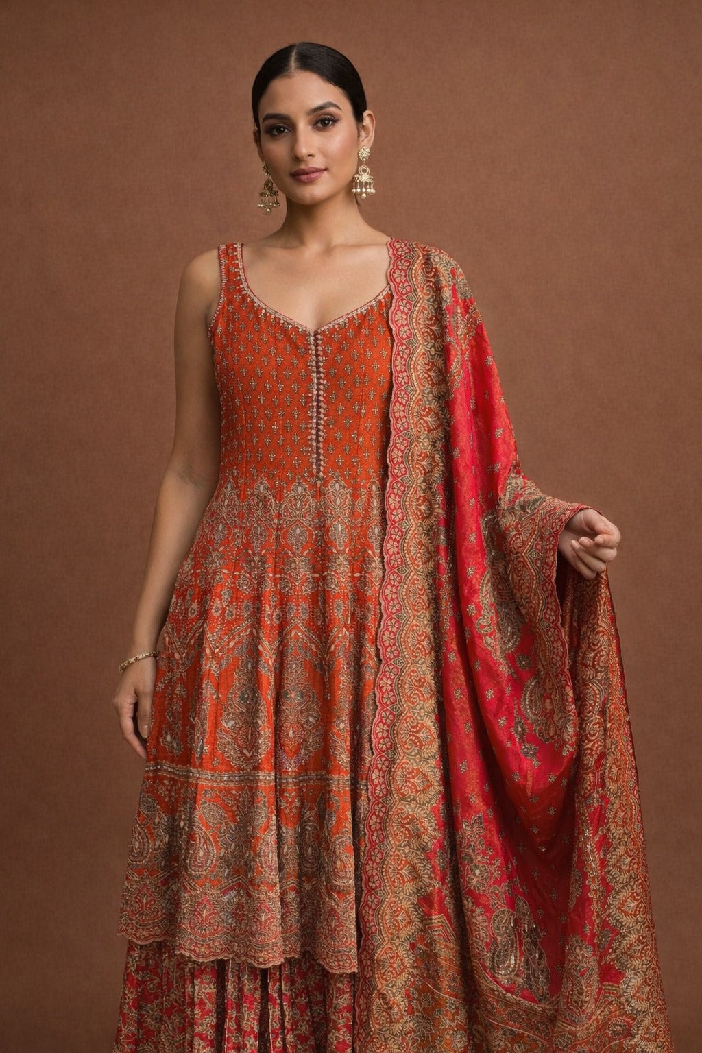 Premium pure raw silk anarkali set