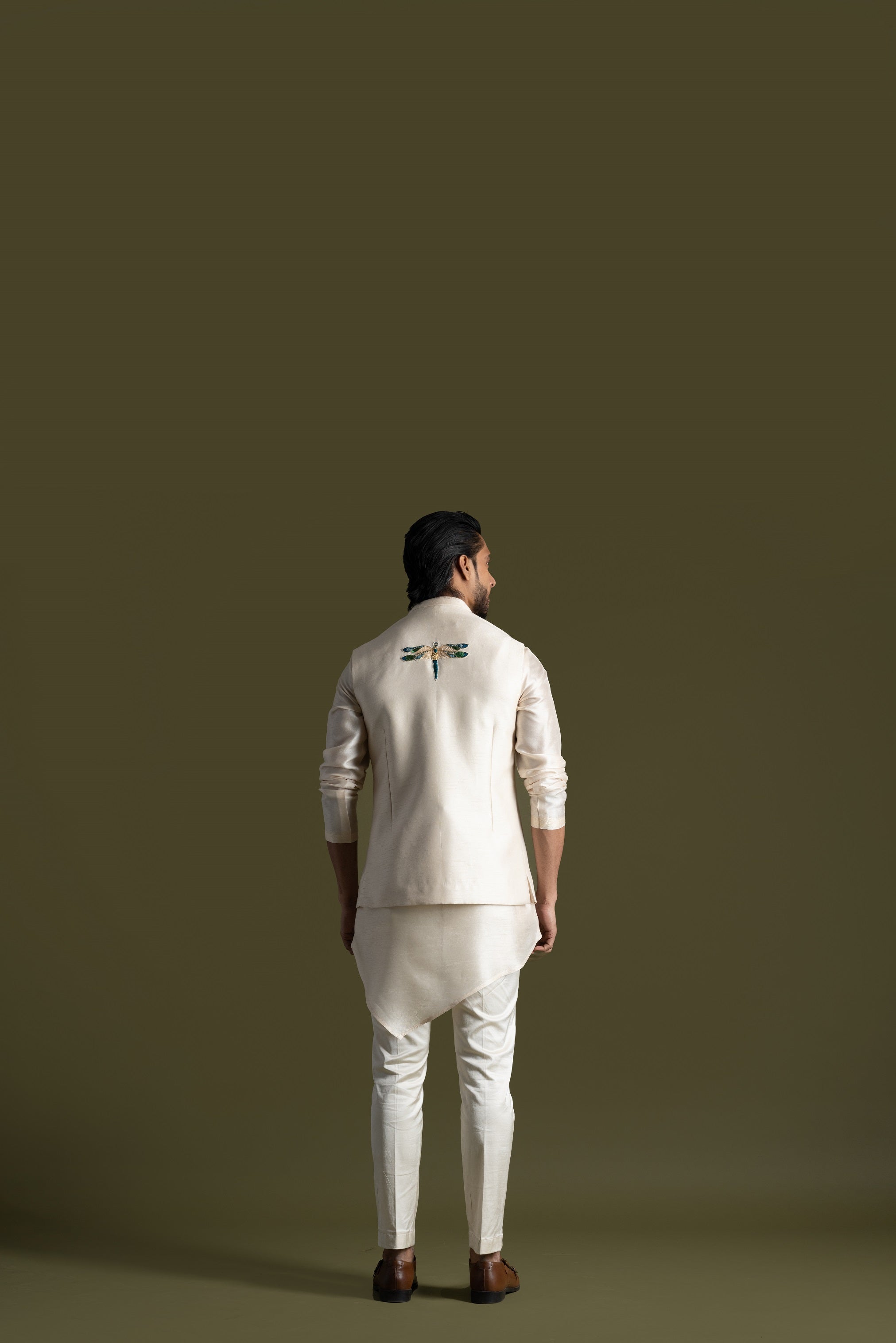 Cream open nehru jacket set