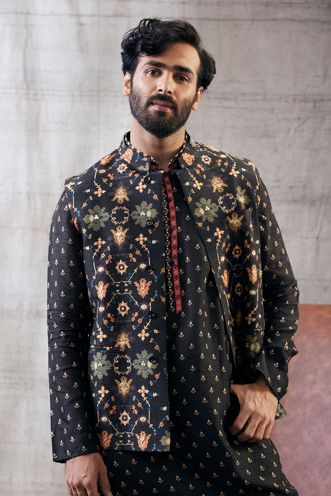 Sarouk printed bundi with kurta set