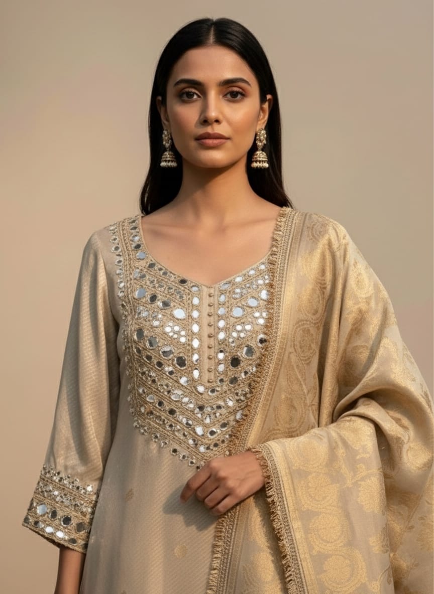 Pure raw silk lehenga set with rich texture & elegant embroidery